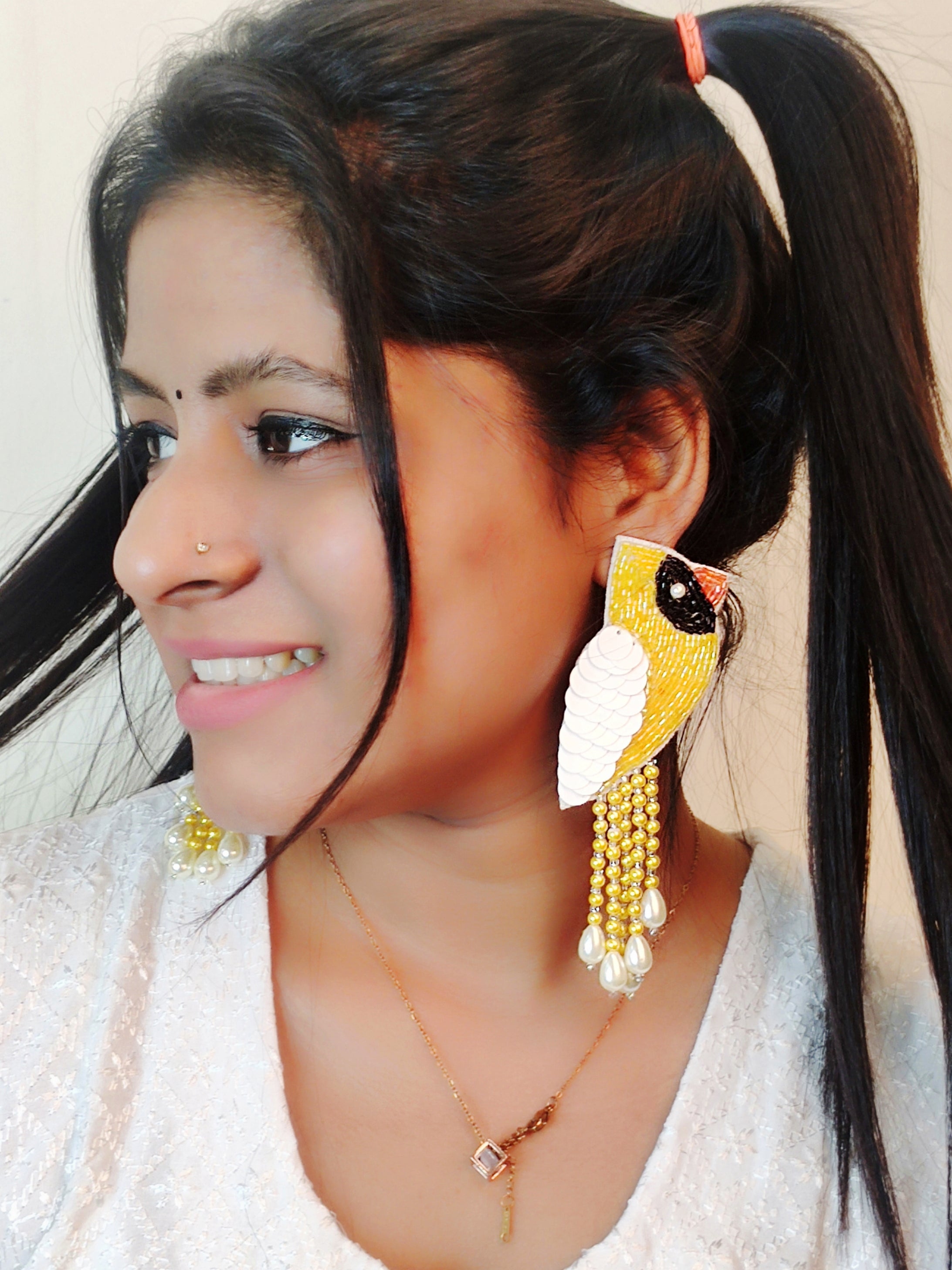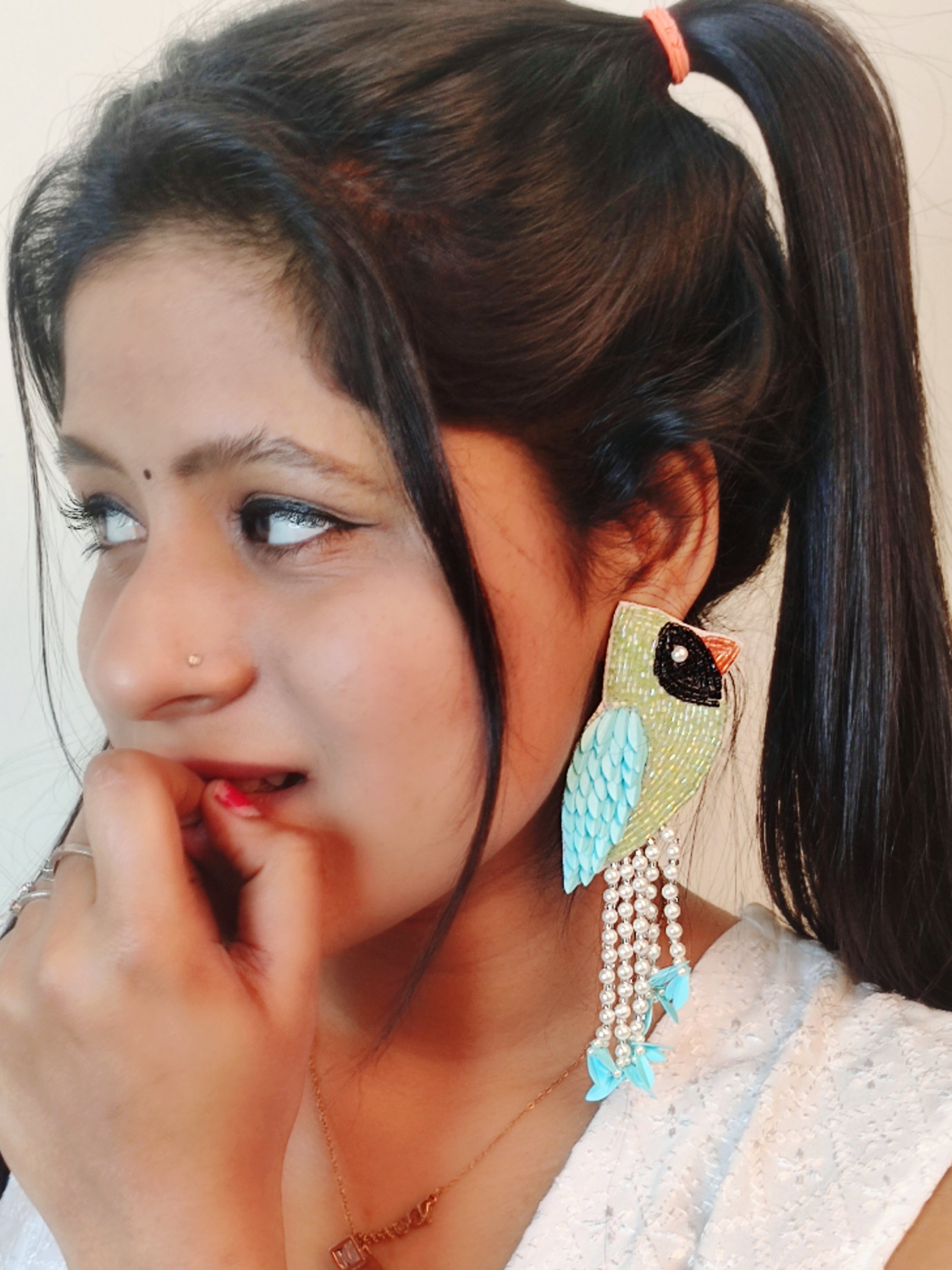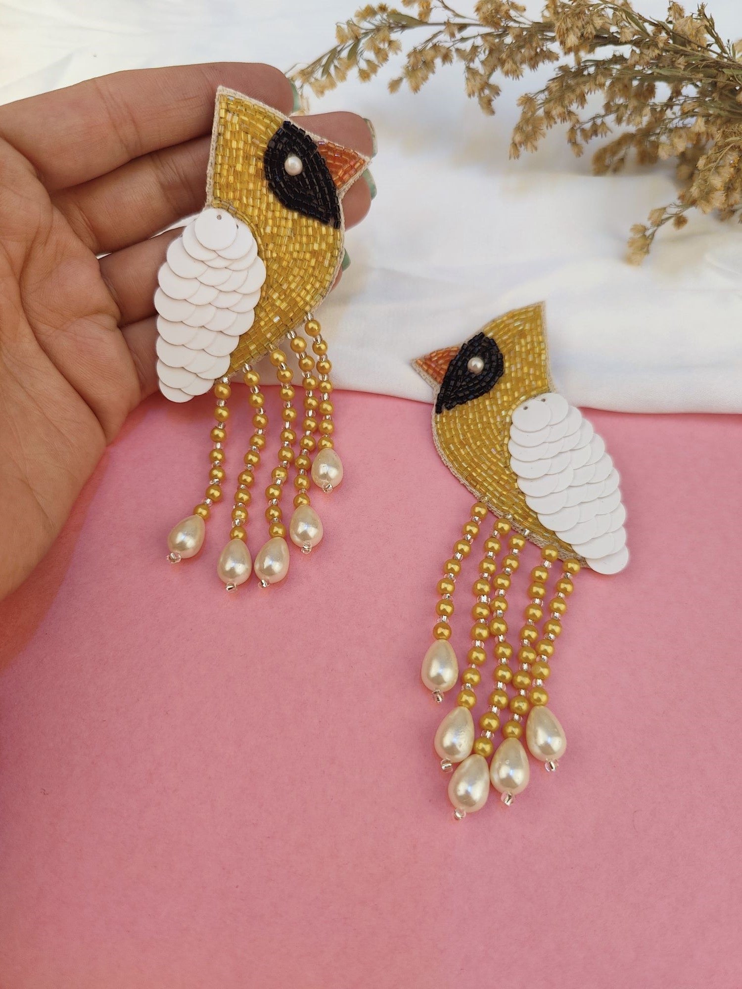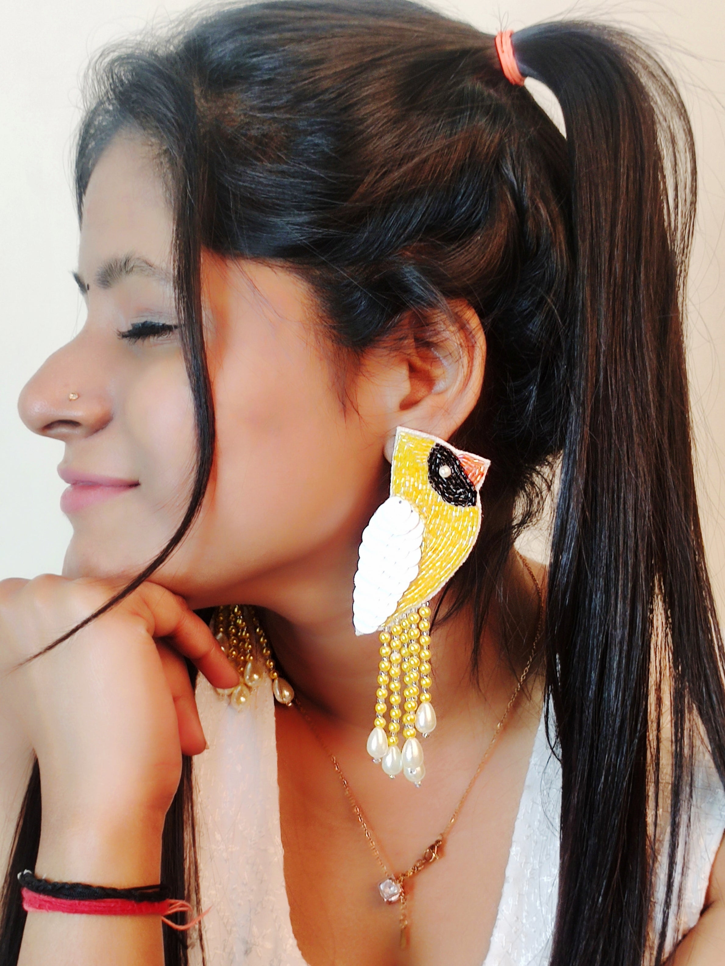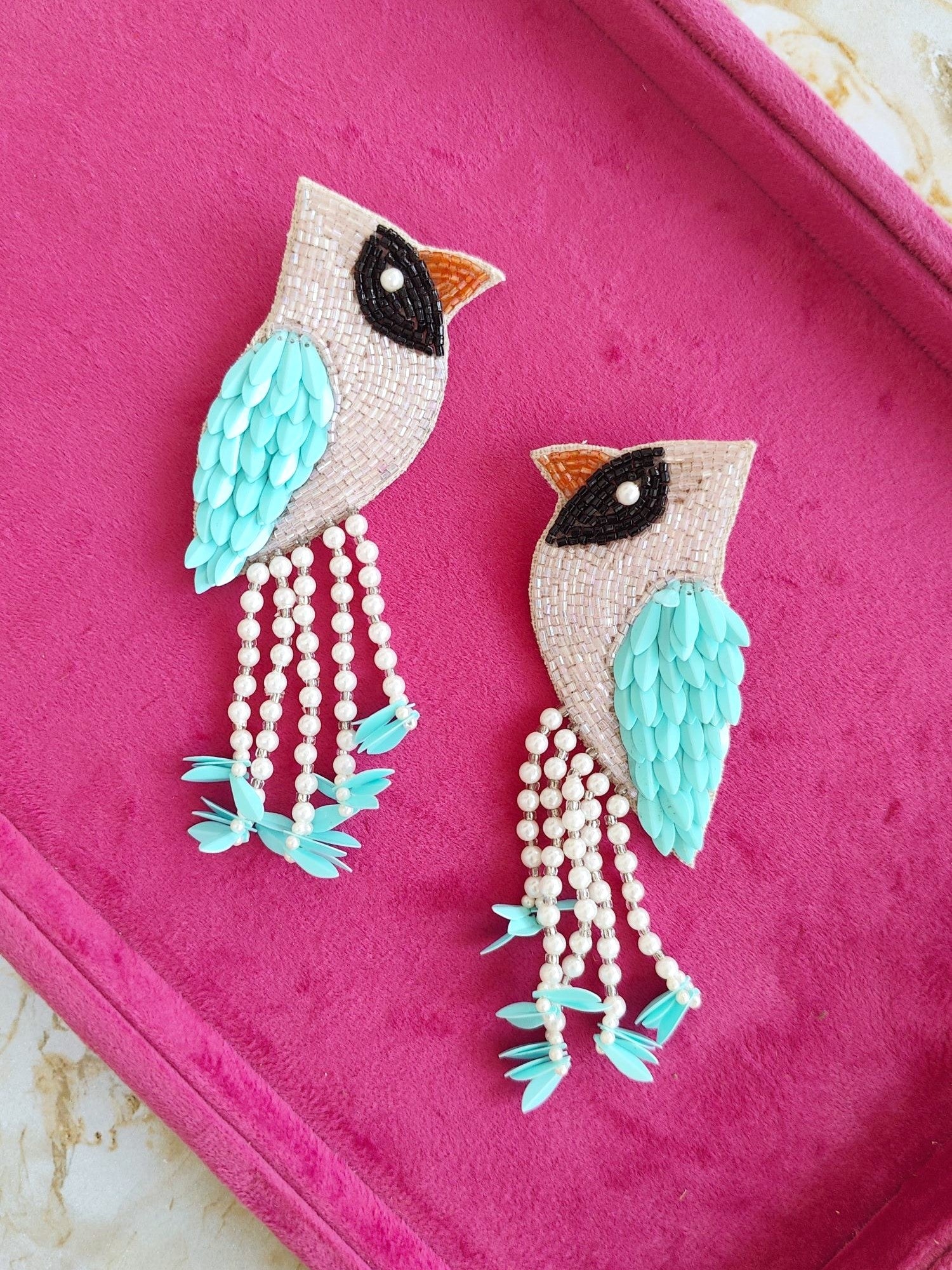 - Bird Danglers- Quirky Handmade Beaded Dangler Earrings