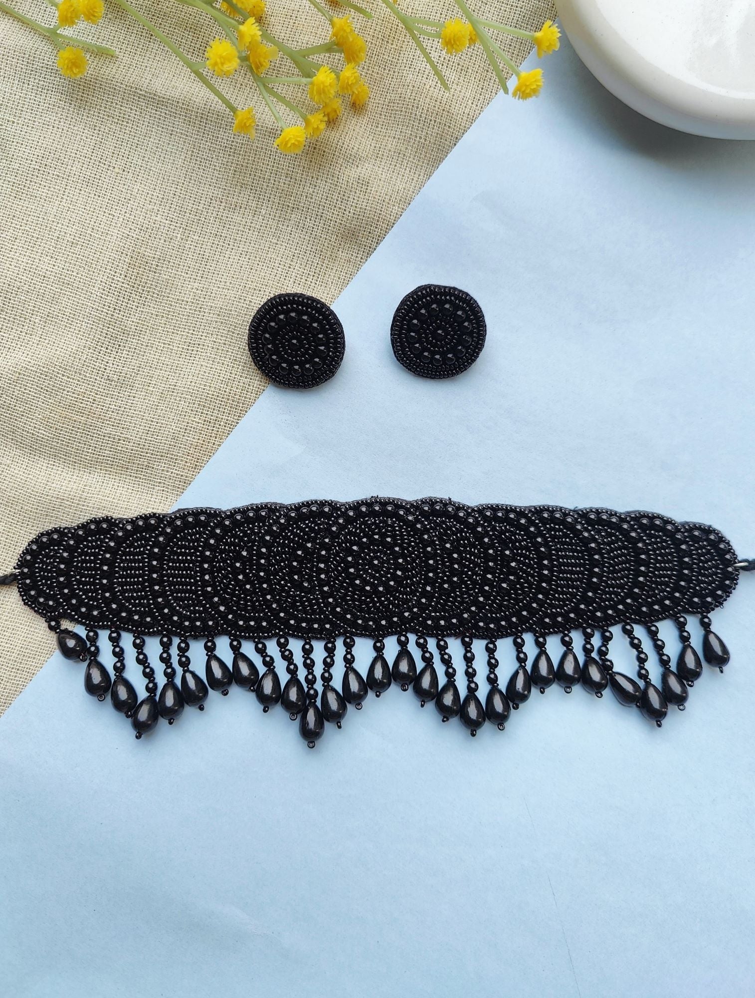 Elegant Black Beaded Artisanal Jewellery Set for Chic Occasions