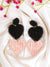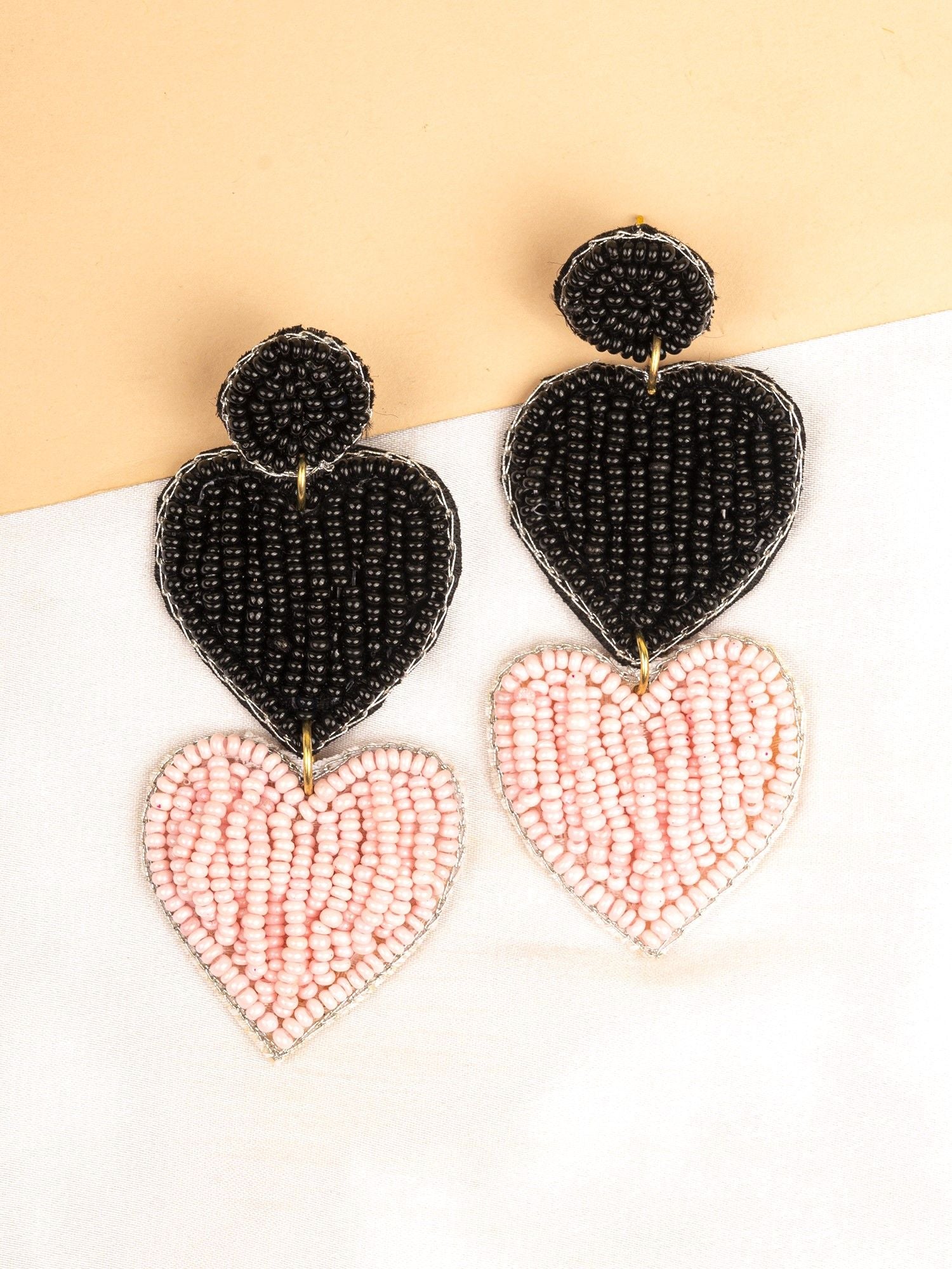 Quirky Black & Pink Beaded Heart Earrings: Handmade Summer Party Statement