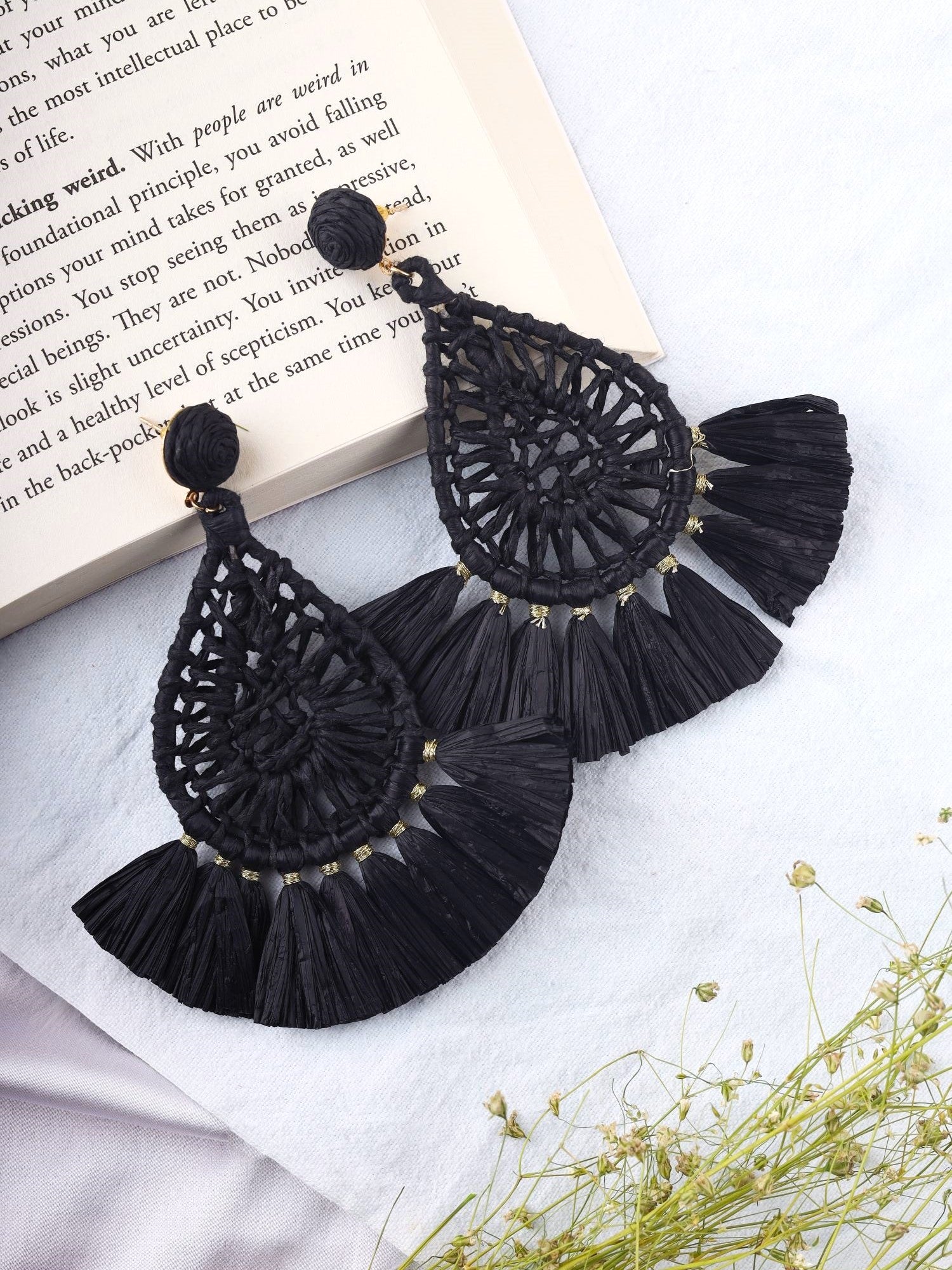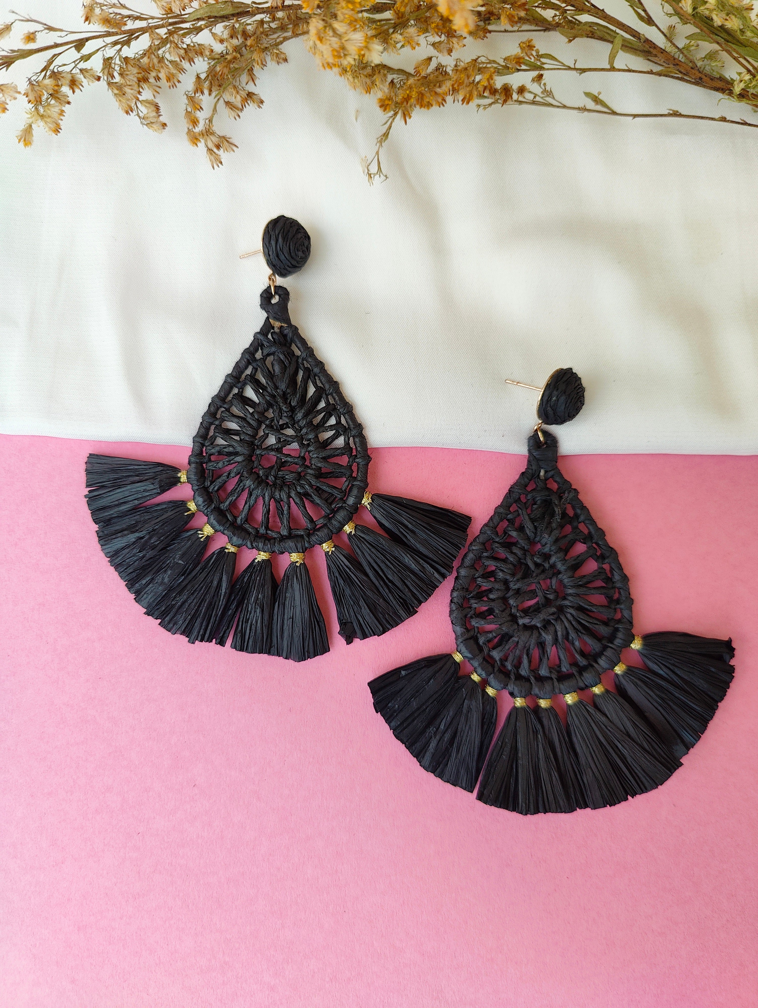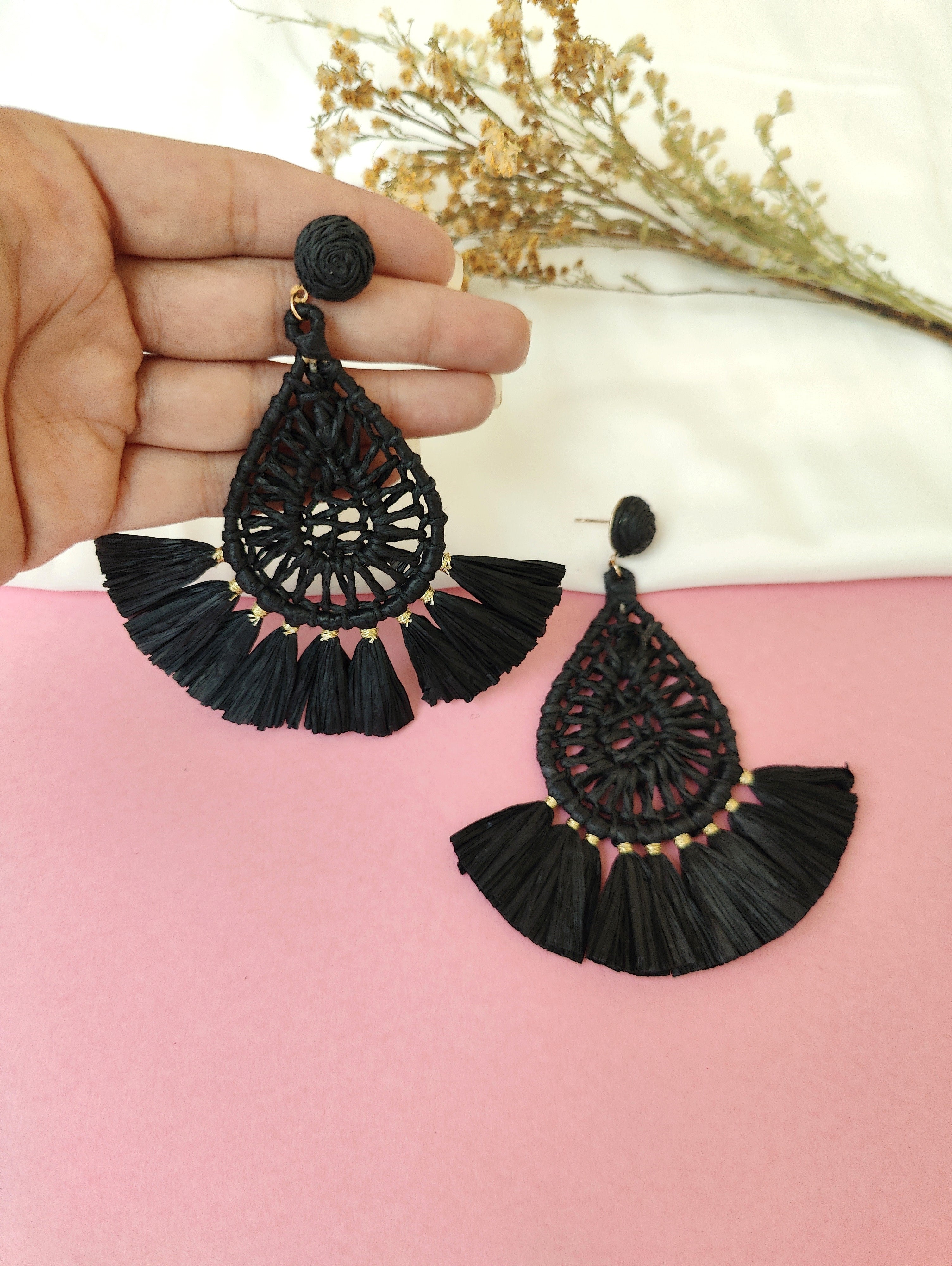 - Black Dangler Earrings- Bohemian Black Handmade RAFIYA Party Wear Earrings