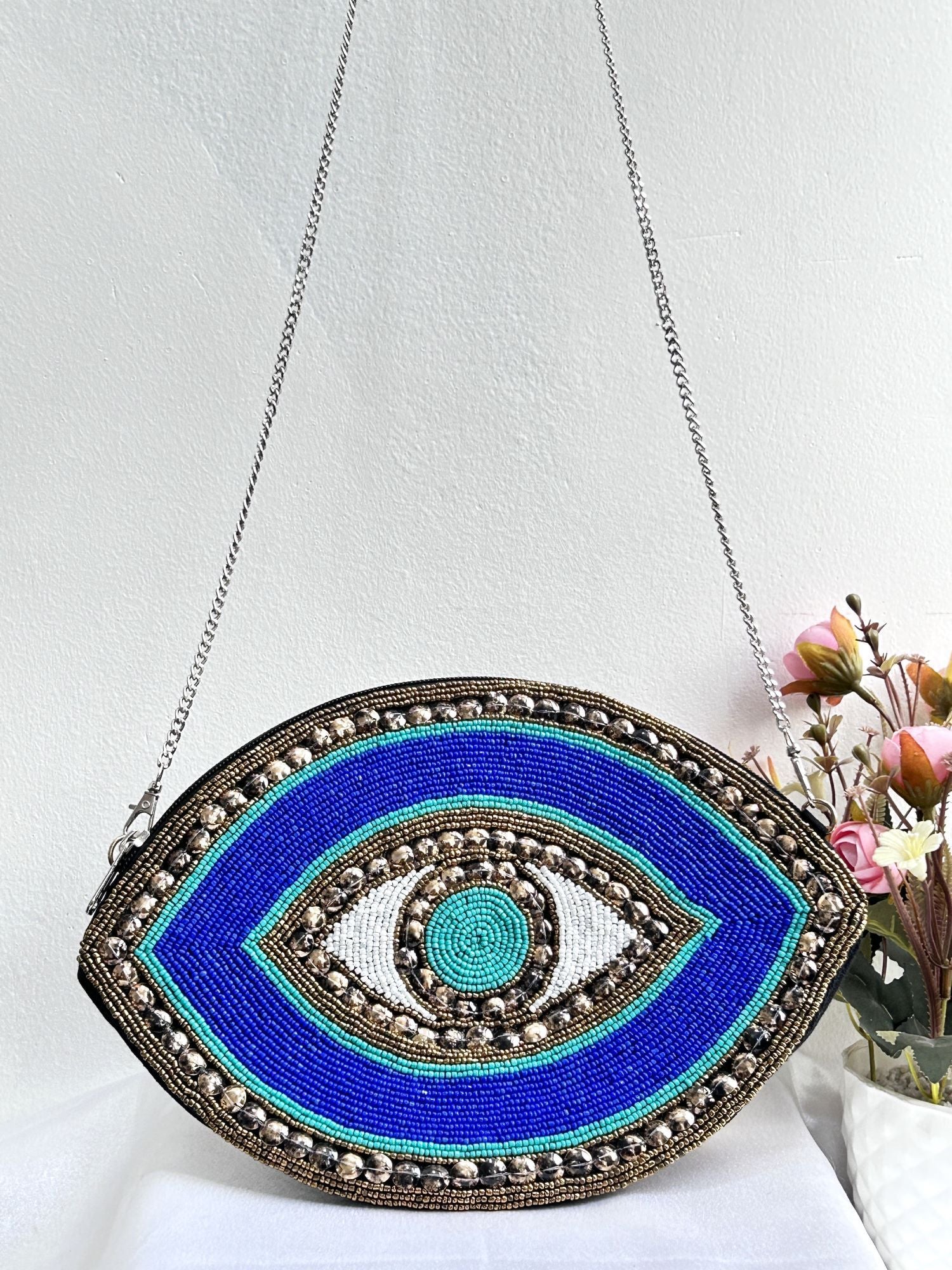 Blue Evil Eye Boho Beaded Handbags for Women & Girls