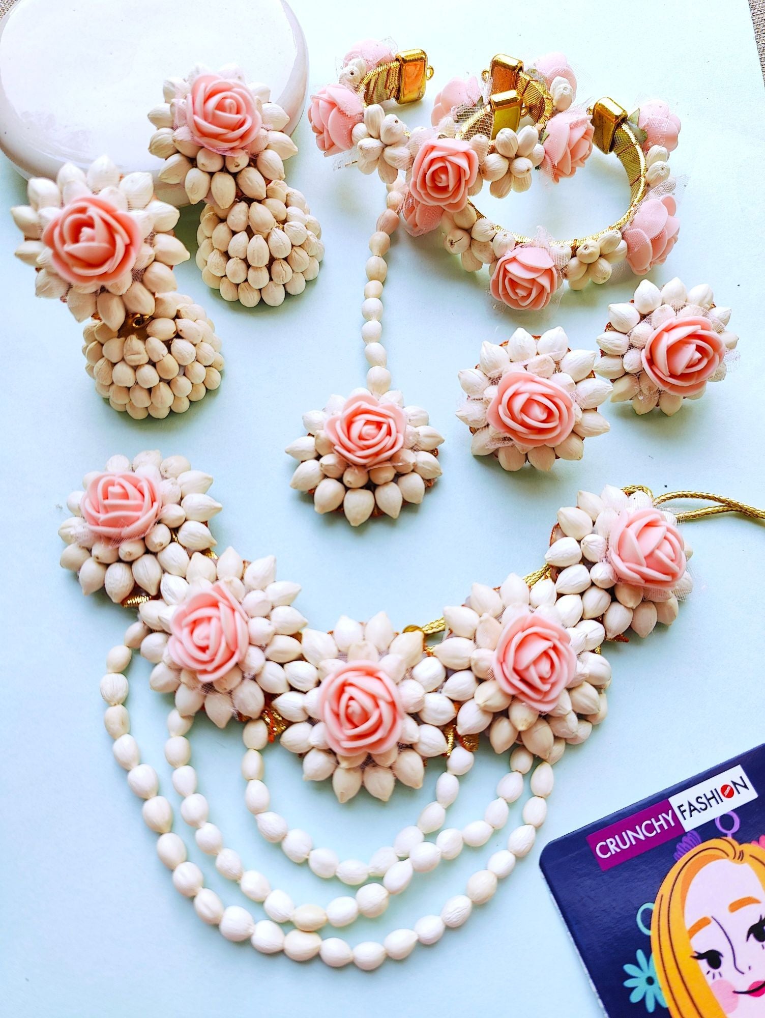 Blush Pink FLoral Mogra Jewelry for Haldi, Mehndi, Baby Shower