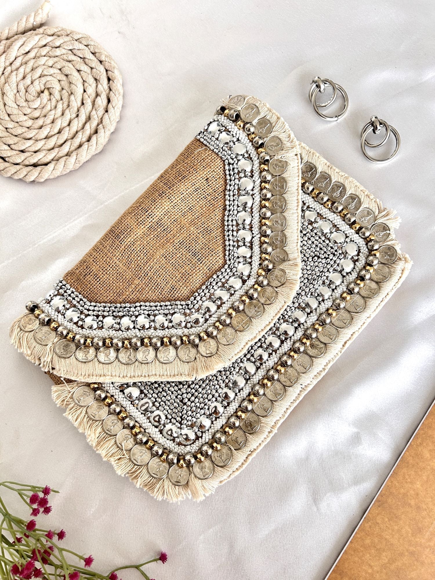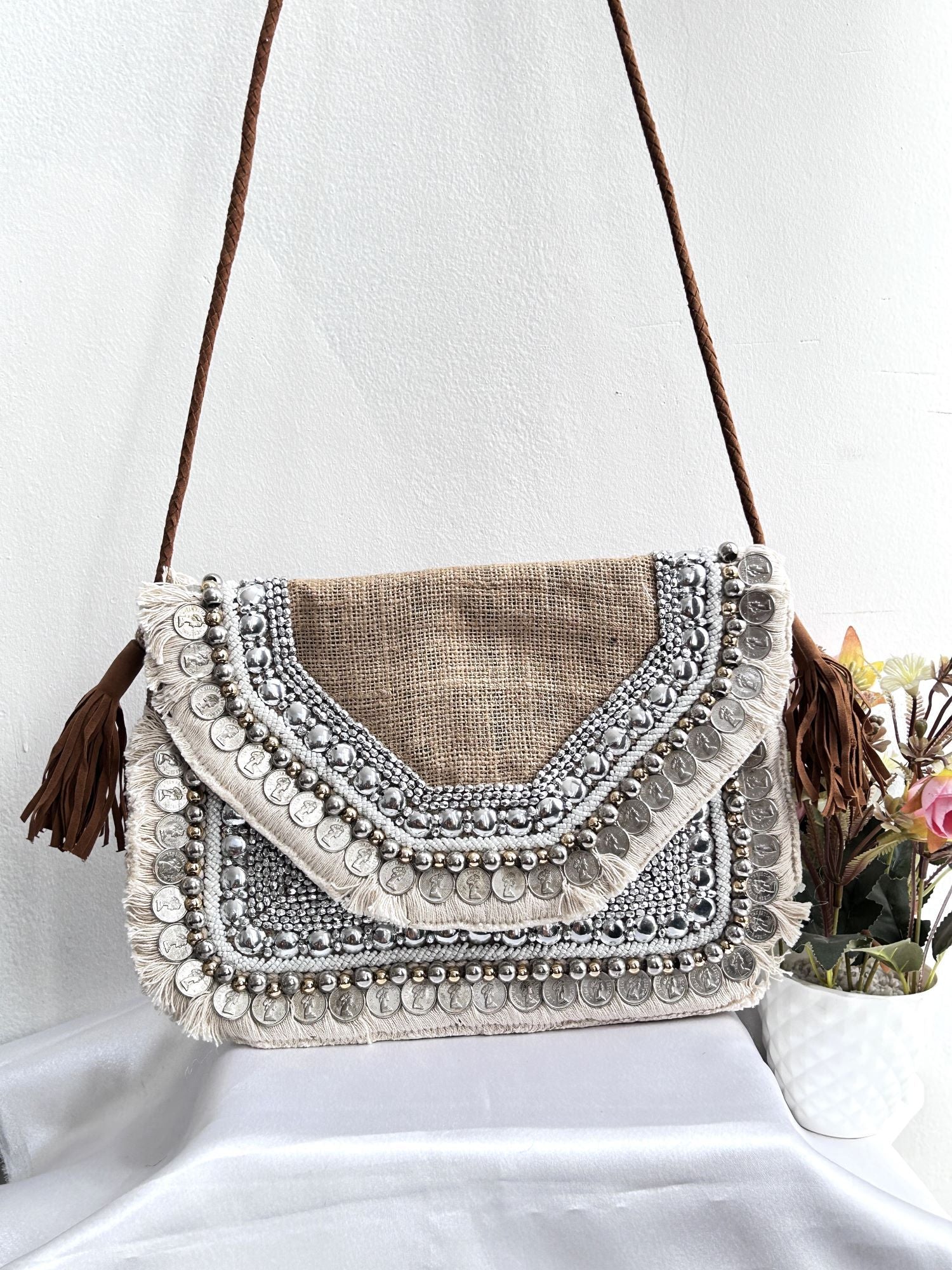 Boho Beaded Beige Bag for Everyday Women & Girls