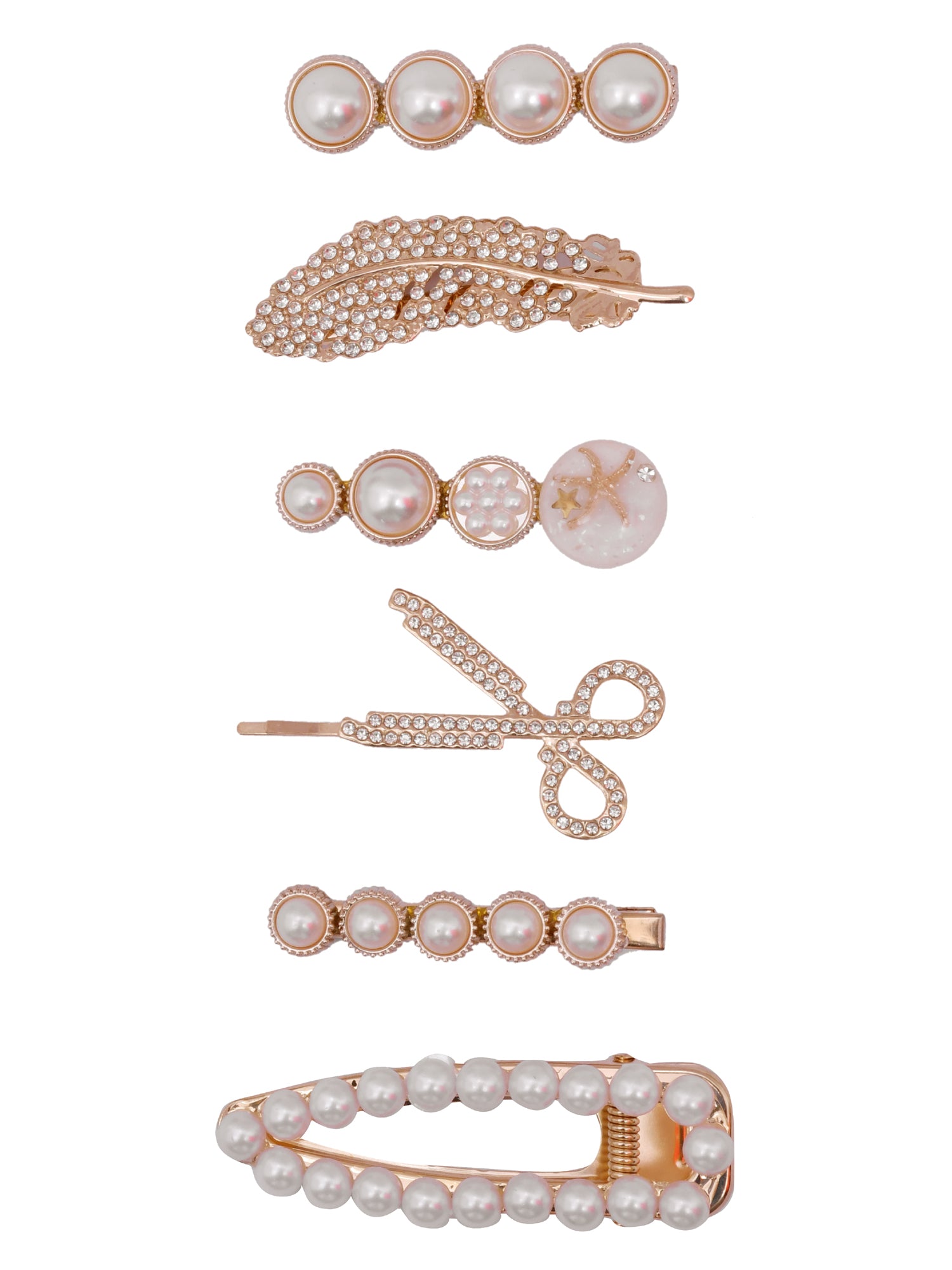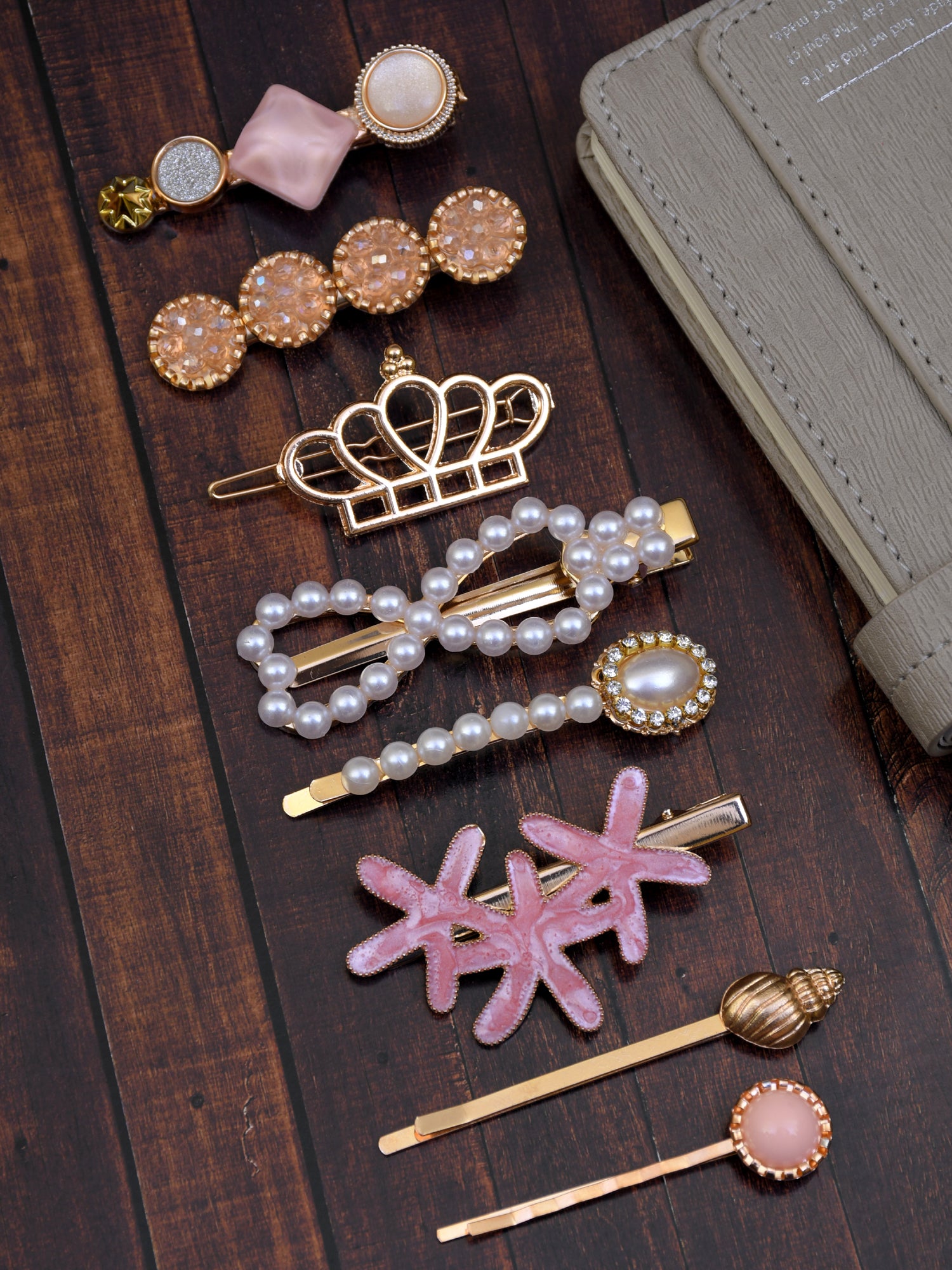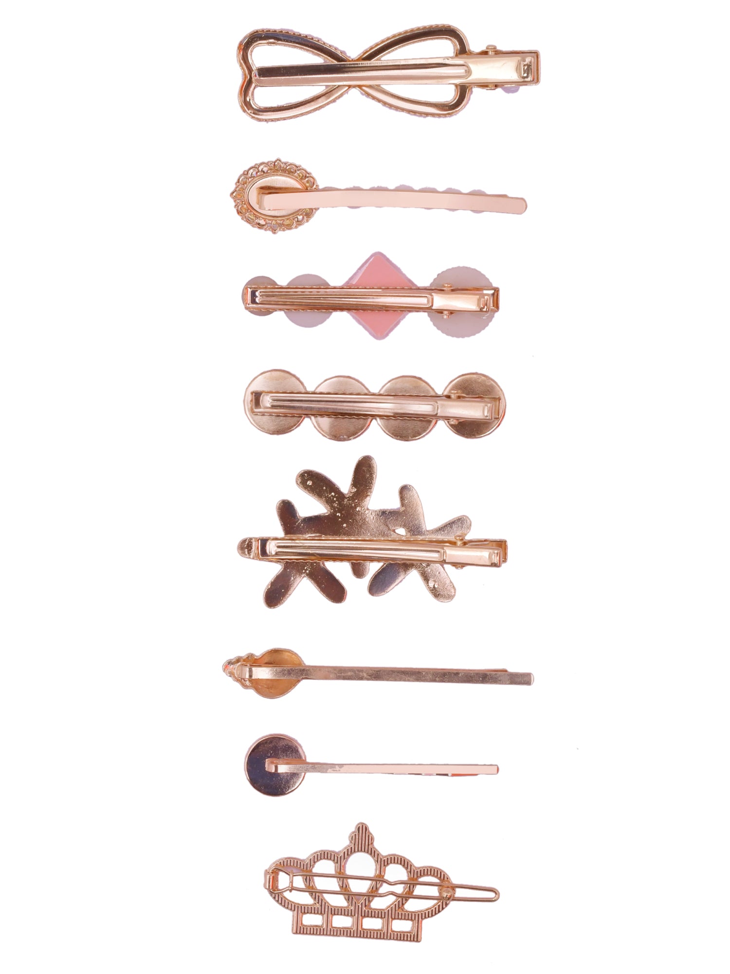 Stylish Pink-Off White Hair Pin Combo for Girls- Pack of 8
