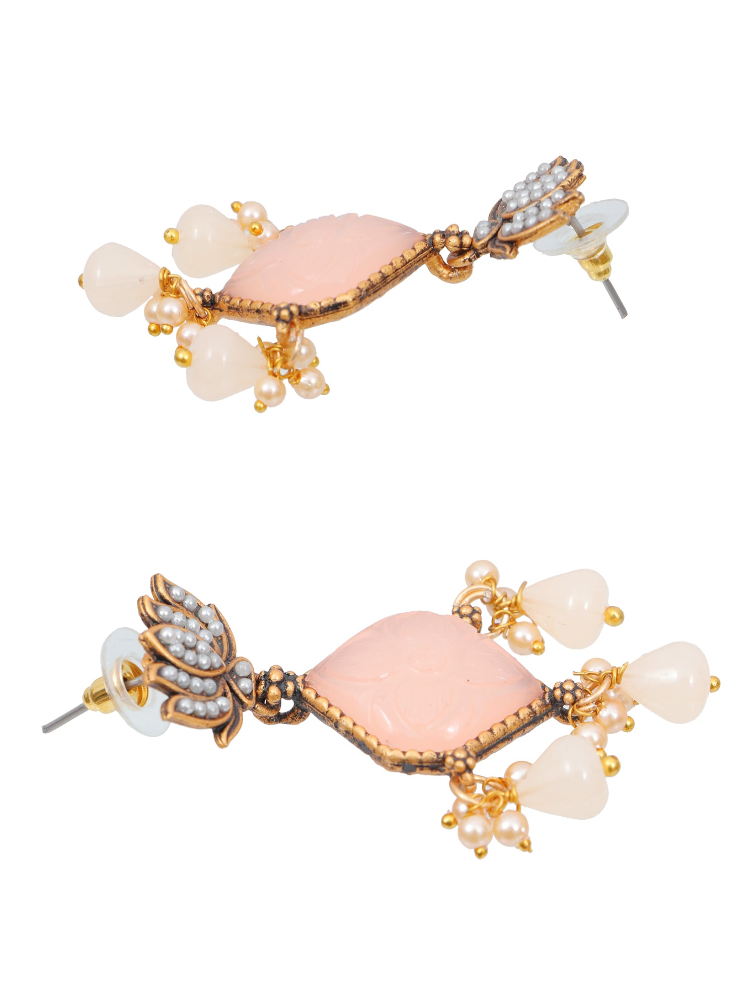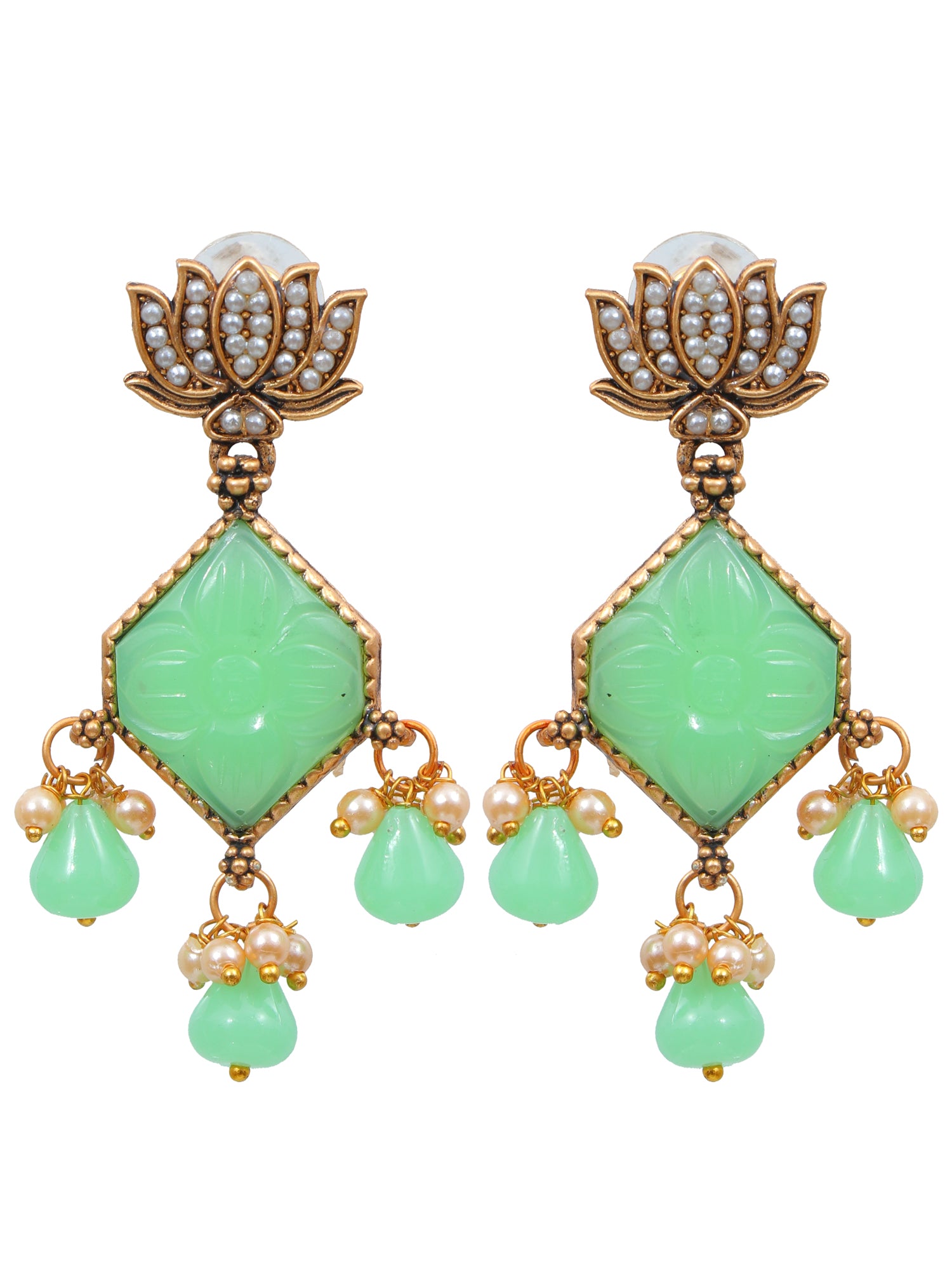 Elegant Lotus Stud Flower Engraving Dangler Earrings for Women and Girls