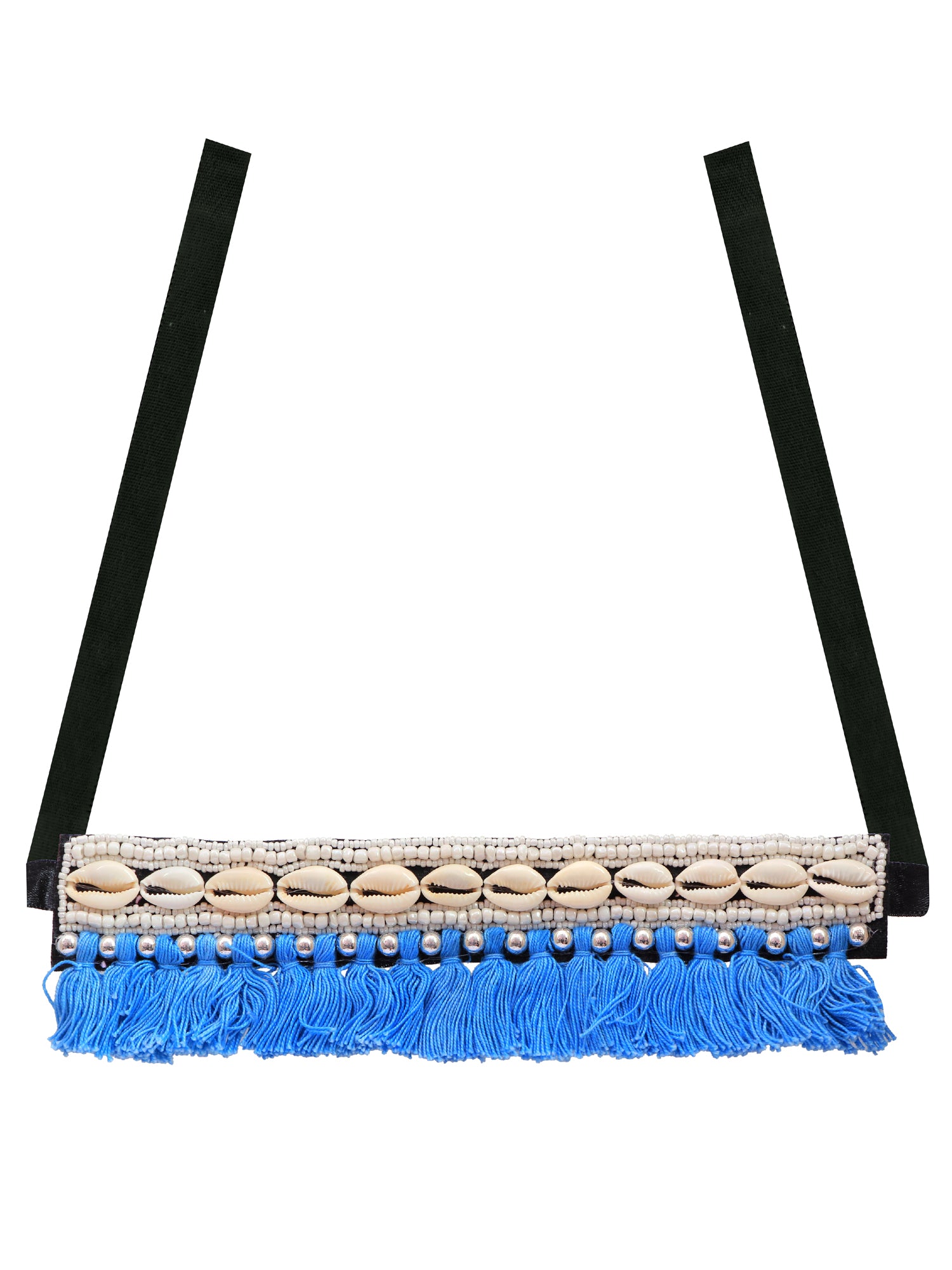 - Crunchy Fashion Handcrafted White & Blue Boho Studded Beaded Jewellery Set CFN0905