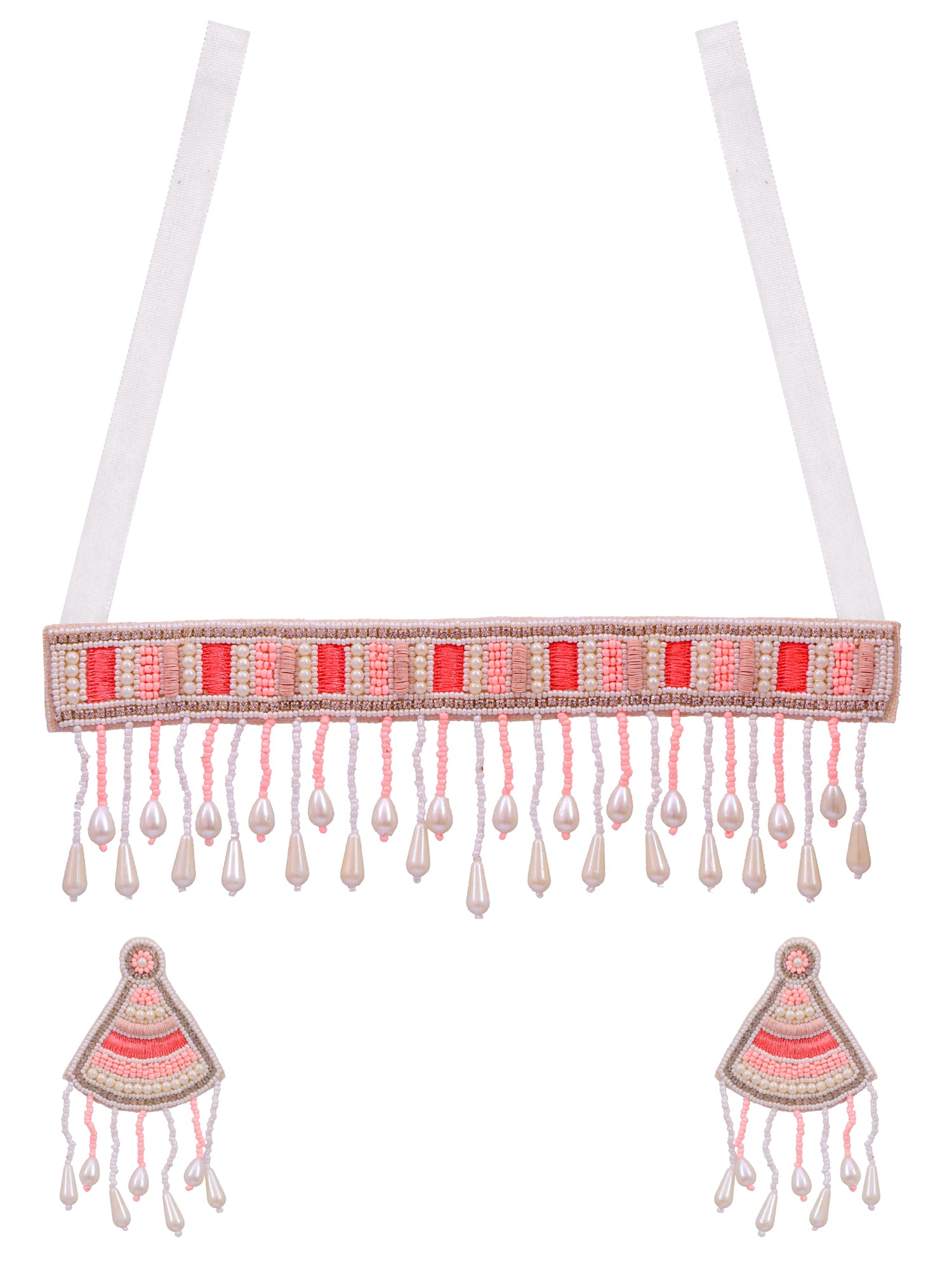 Gulizar Choker Necklace Set - Pink Handmade Beaded Necklace and Earrings Jewellery Set