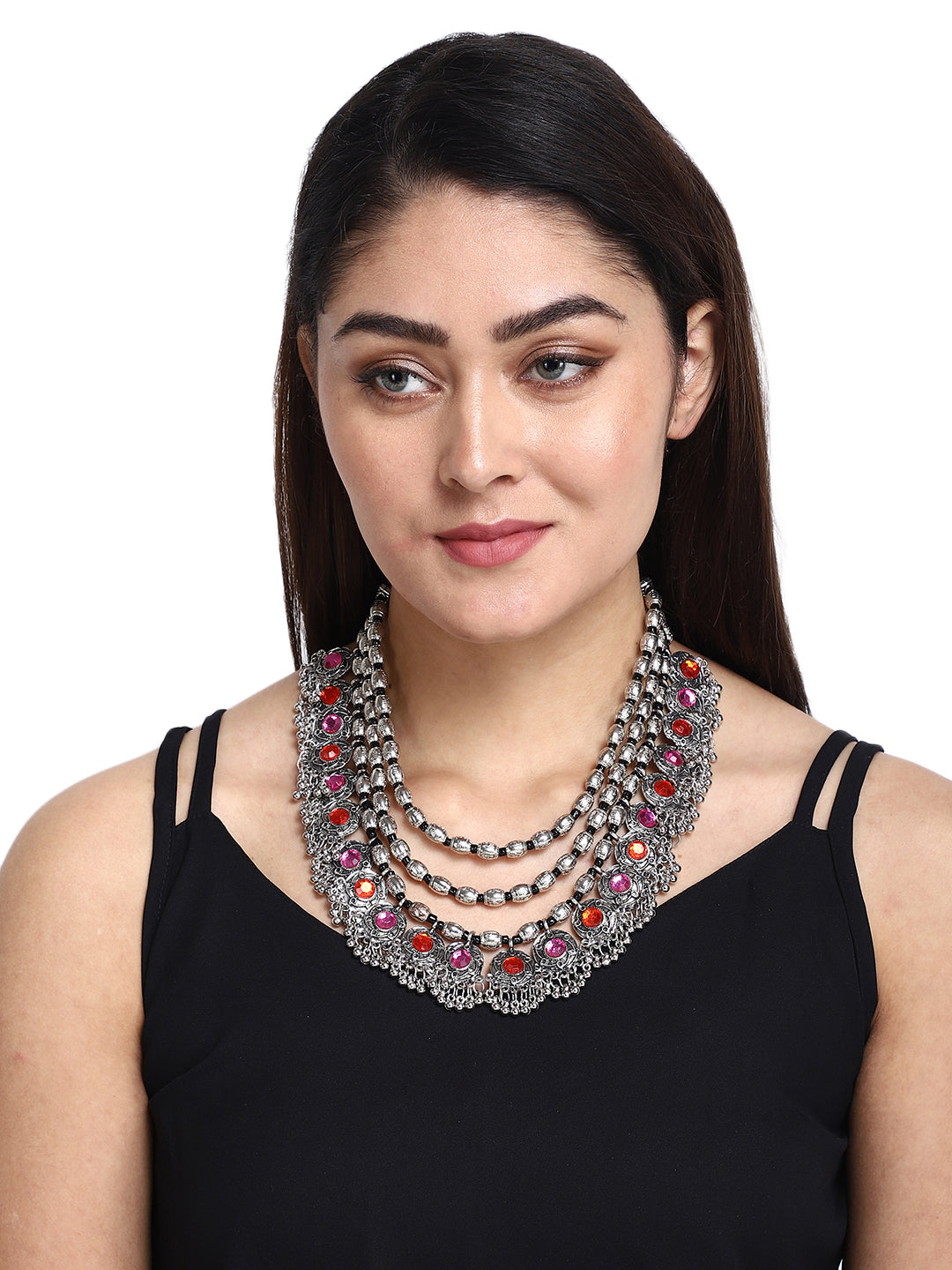 Oxidised Silver Glamour: Multilayer Statement Necklace & Earring Set for Modern Fashion