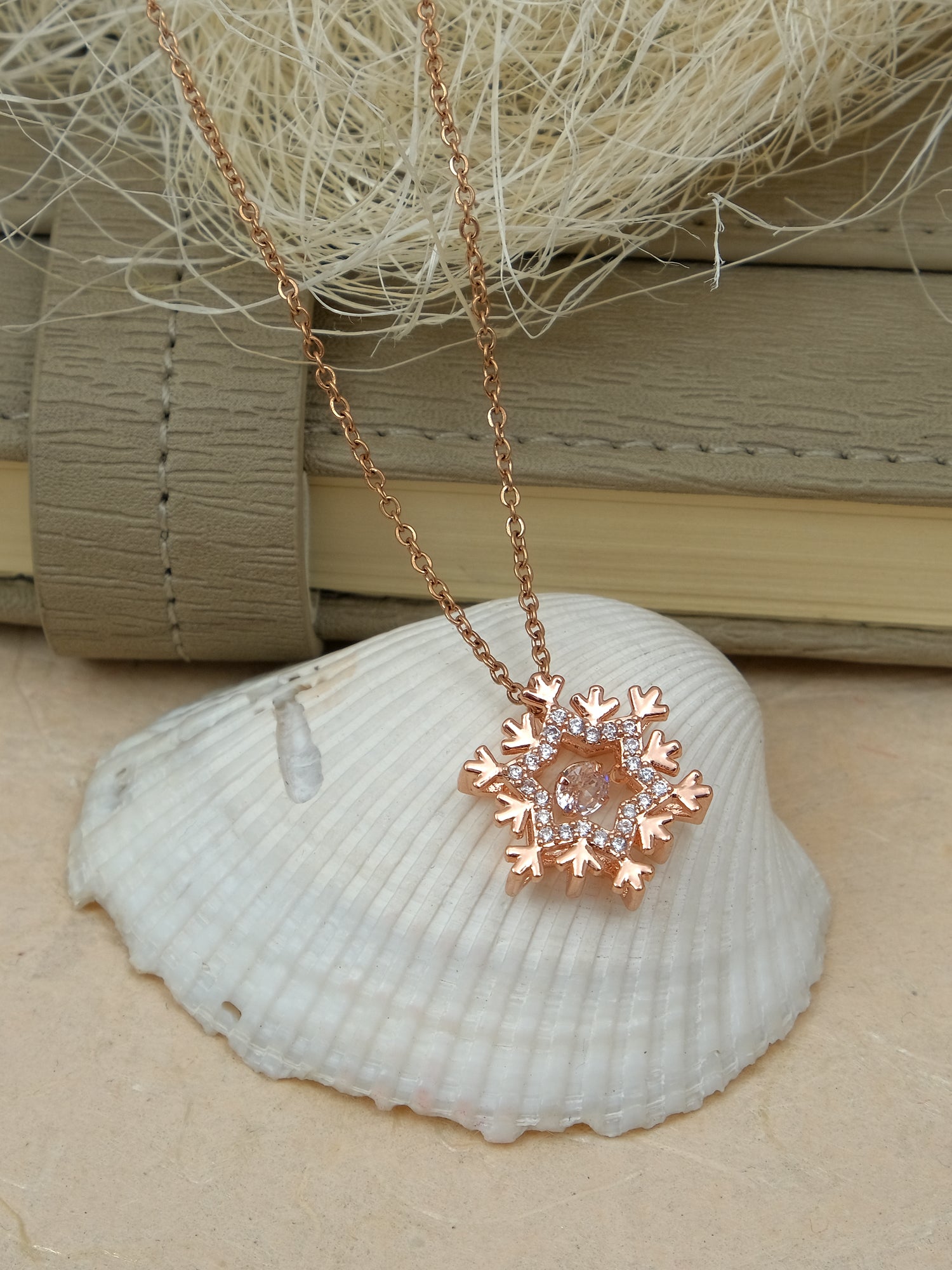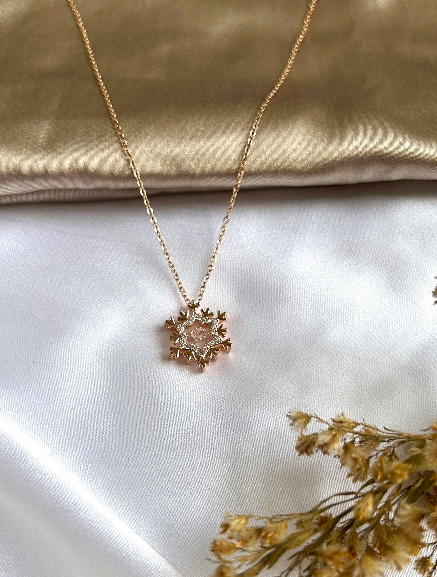 Crystal Studded Stainless Steel Snow Flakes Tarnish Free Pendant Necklace