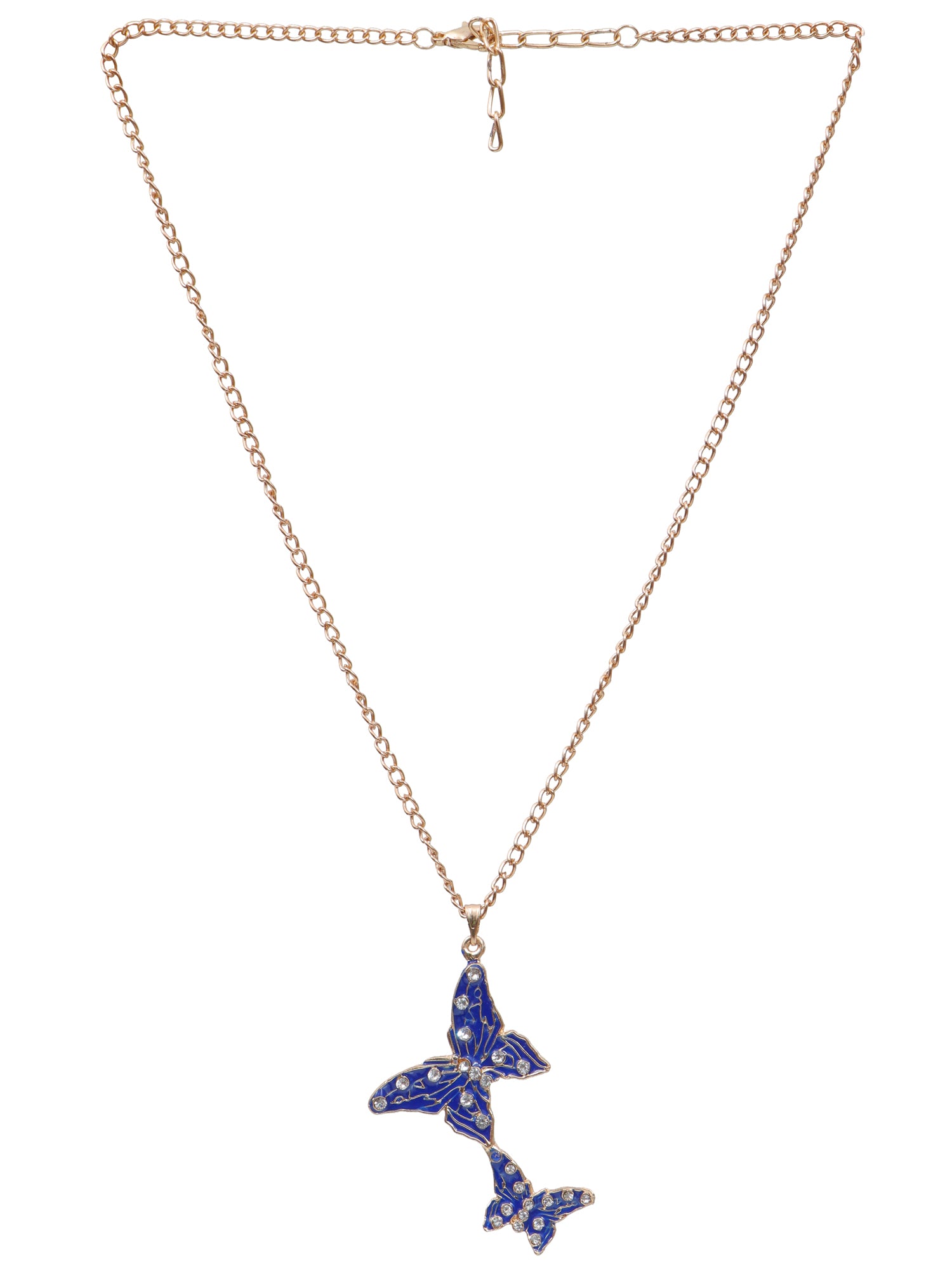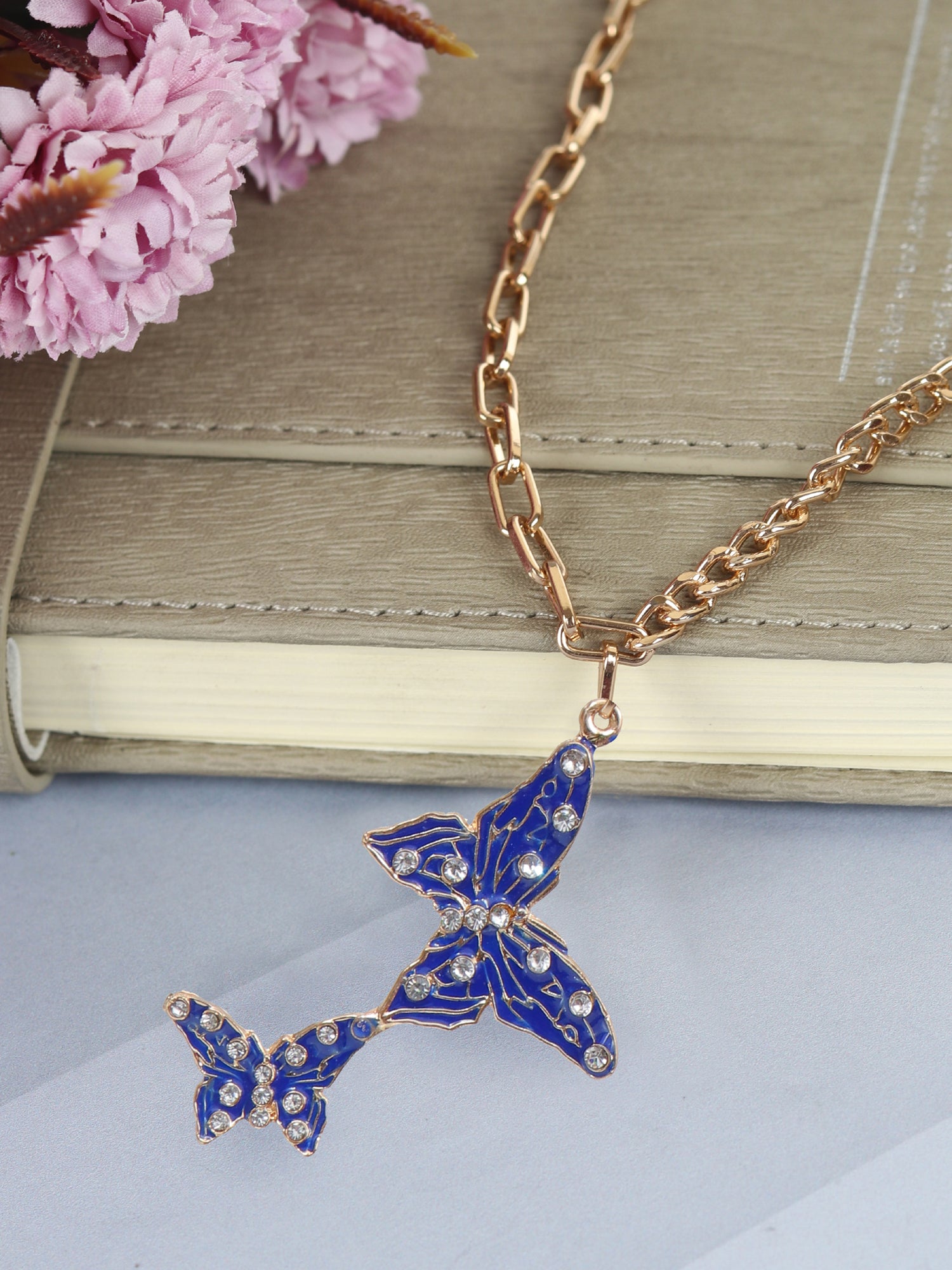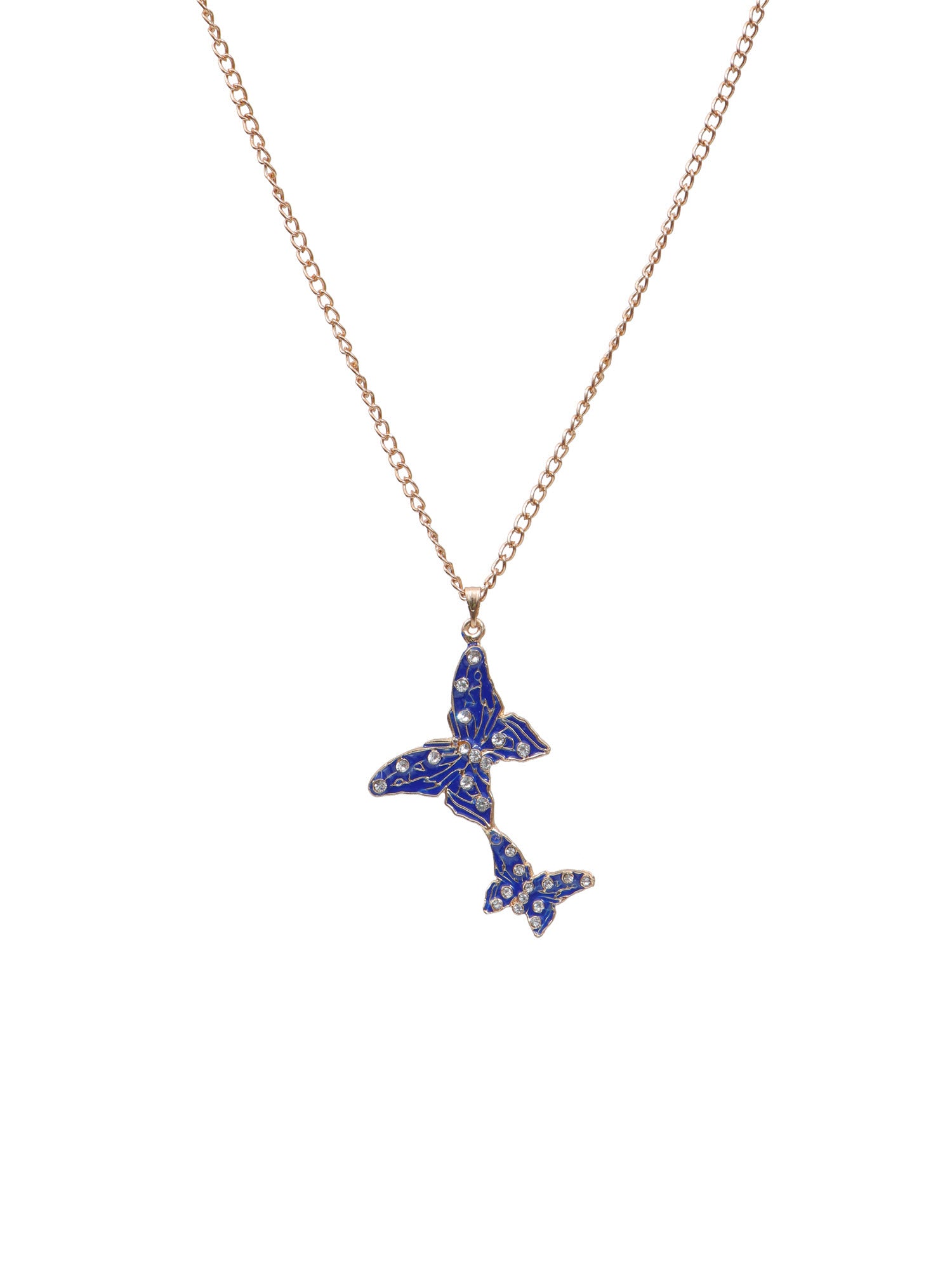 Introducing our beautiful Crystal Studded Pink Enameled Butterfly Pendant Necklace, the perfect statement piece for any occasion. This necklace features a delicate butterfly pendant, crafted from high-quality metal and coated with a layer of pink enamel for a smooth, glossy finish. The butterfly is adorned with sparkling crystals that add an extra touch of elegance and shine. The pendant is suspended from a delicate silver-plated chain that adds a touch of elegance to the piece. The chain is adjustable to fit any neck size, making it a great fit for anyone. The combination of the pink enamel, crystals, and the butterfly shape give it a unique and elegant appeal that will never go out of style. This necklace is perfect for adding a touch of luxury to your everyday look or as a special gift for loved ones. It's lightweight and comfortable to wear, making it a perfect addition to your jewelry collection.