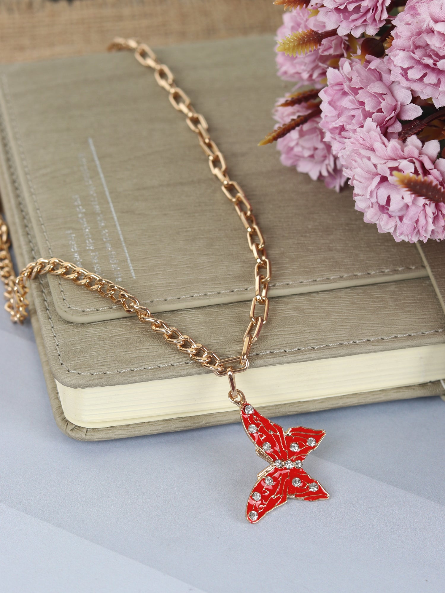 Crystal Studded Enamel Butterfly Pendant Necklace