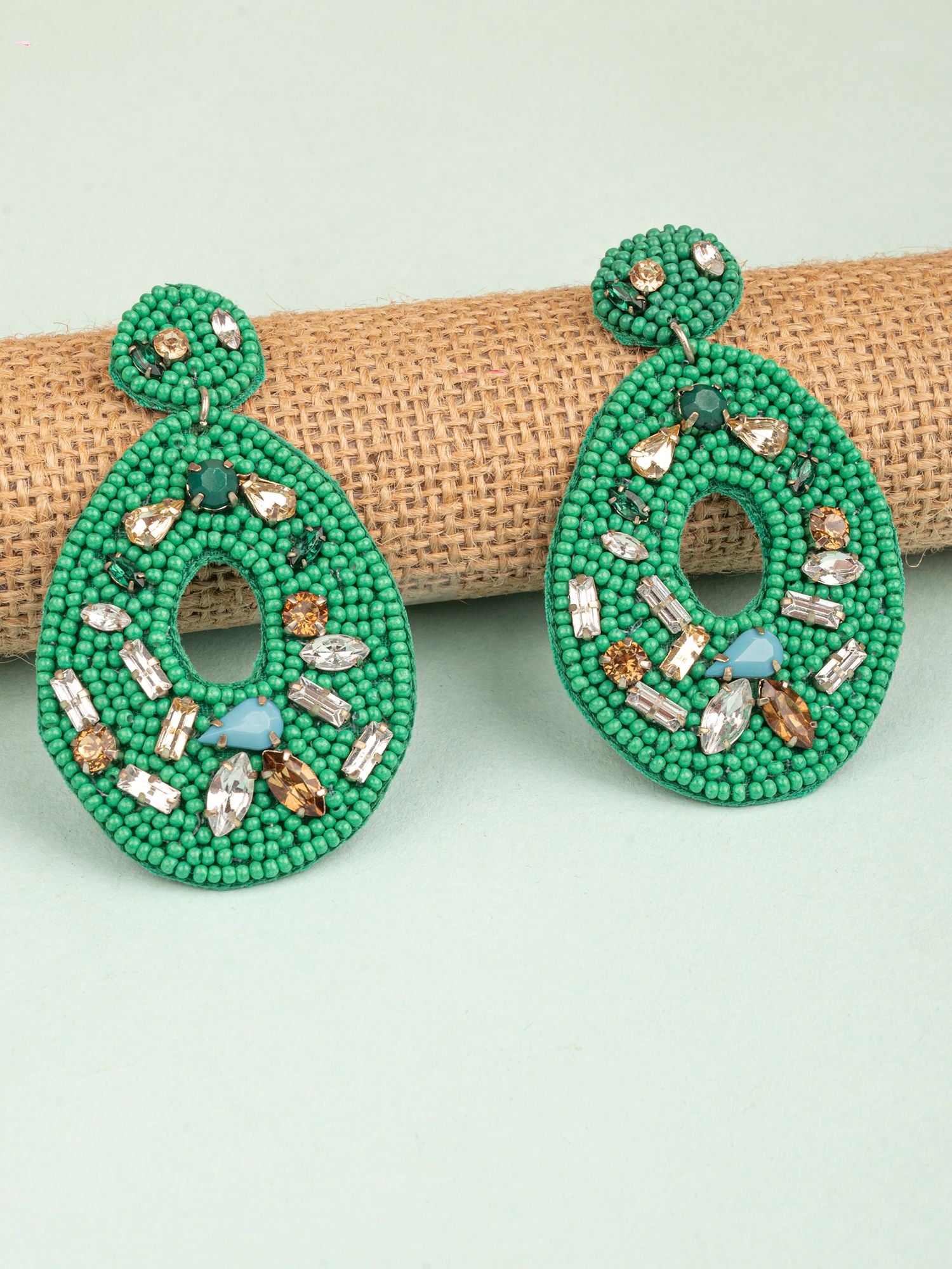 Zircon Radiance: Handmade Green Beaded Drop Earrings - Sparkling Ethnic Accessory