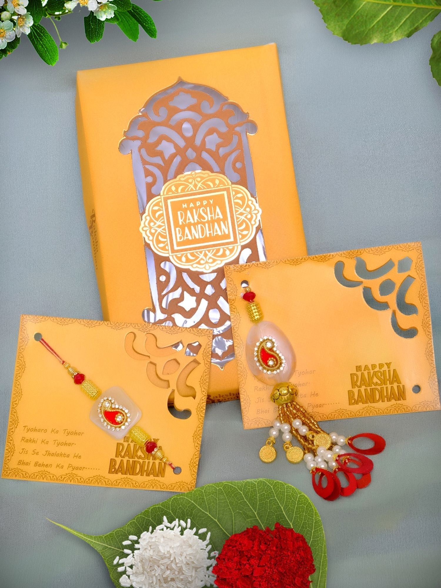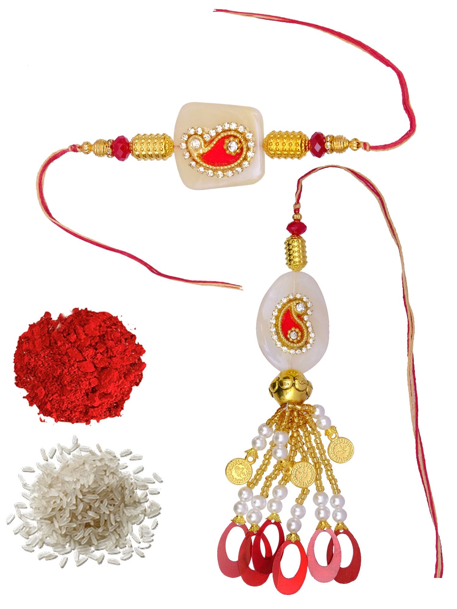 Designer Bhaiya-Bhabhi Kundan-Lumba Rakhi Combo Sets-Pack of 2