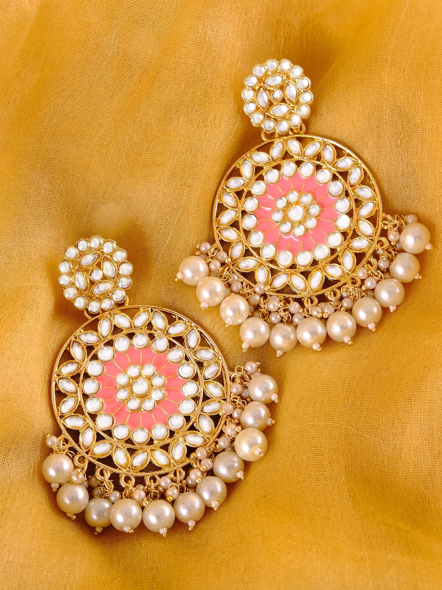 Fashionista's Pink Pearl Gold Plated Drop & Dangler Earrings