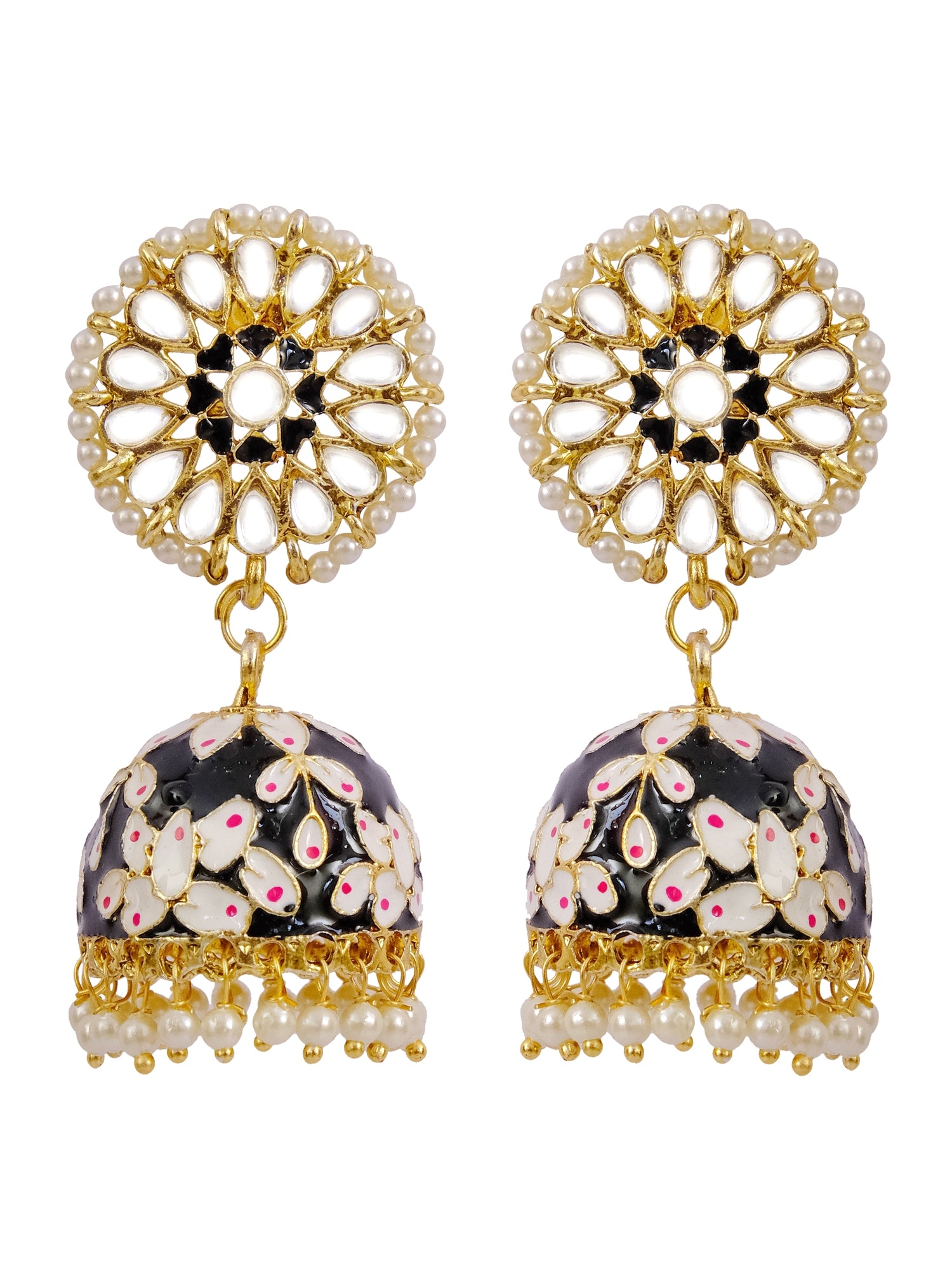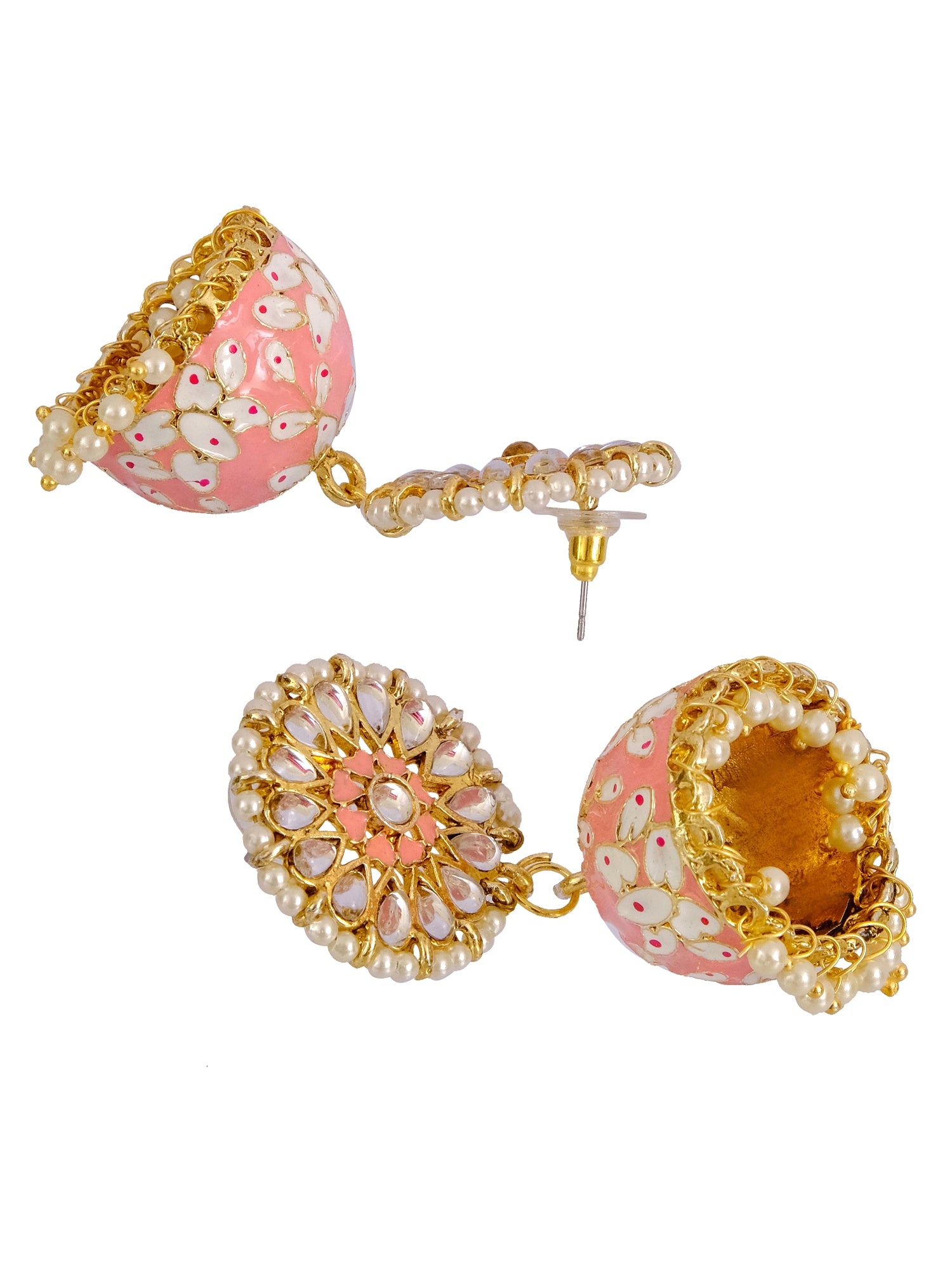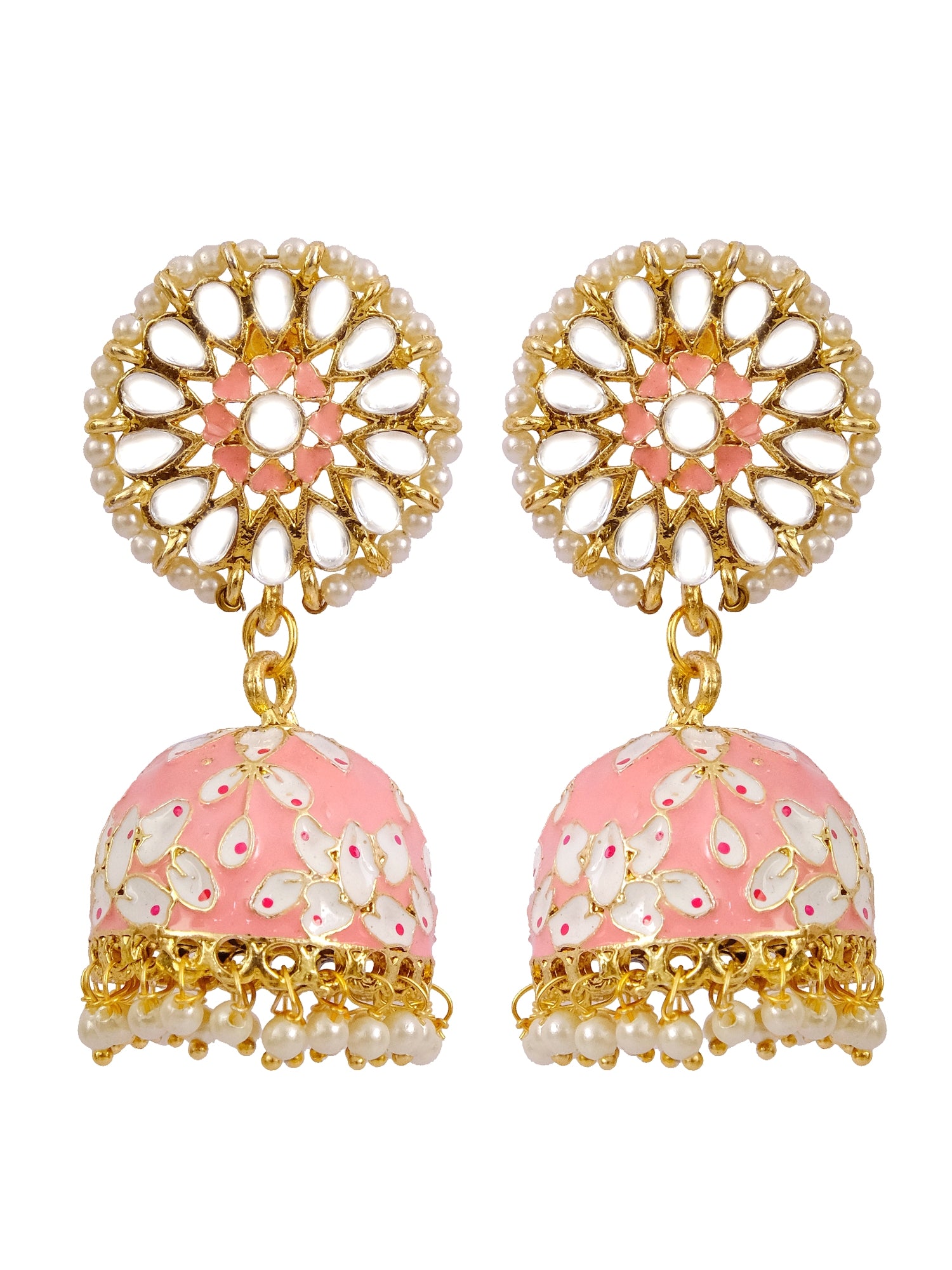 - Red Meenakari Jhumka Earrings for Women – Gold Plated & Stone-Studded