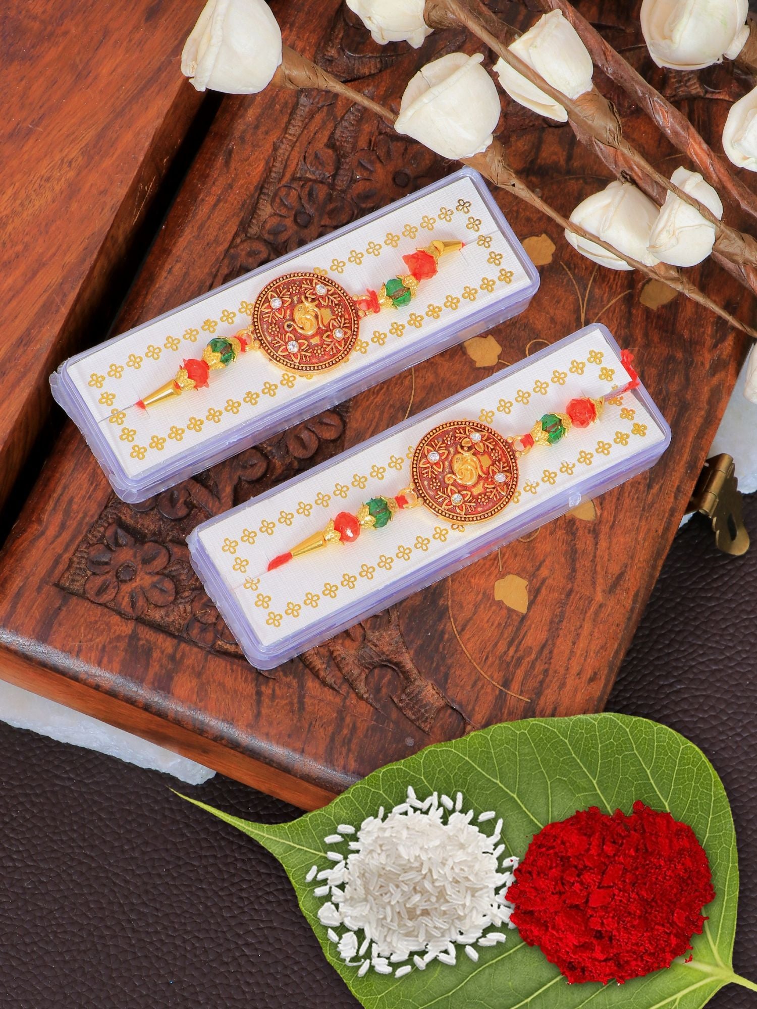 Dazzling Duo: Oxidized Gold Multi-Color Rakhi - Festive