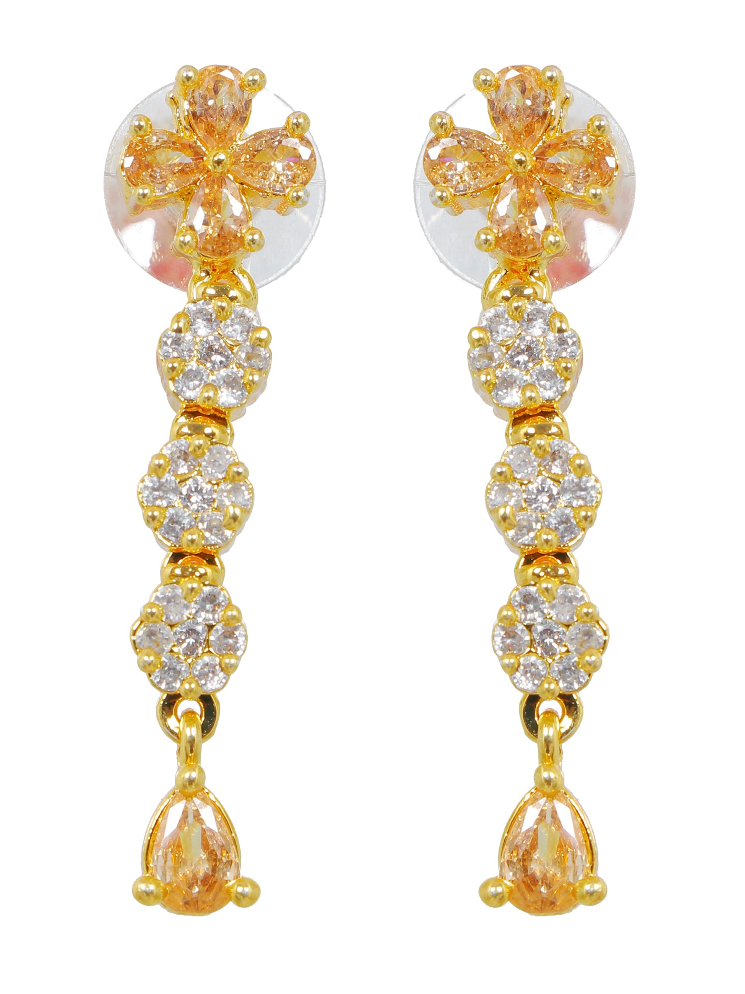 Add a touch of glamour to your look with the AD studded rose gold statement lariat jewellery set. This beautiful set features a stunning lariat necklace and matching earrings, each studded with an array of shimmering AD crystals. The eye-catching design is sure to turn heads and make you the center of attention, while the high-quality materials and luxurious rose gold finish ensure that this set is both durable and stylish. Perfect for any occasion, whether you're dressing up for a night out or simply adding a touch of elegance to your everyday look, this lariat jewellery set is sure to make you feel confident and beautiful. Don't miss out on this statement piece - add the AD studded rose gold lariat jewellery set to your collection today.