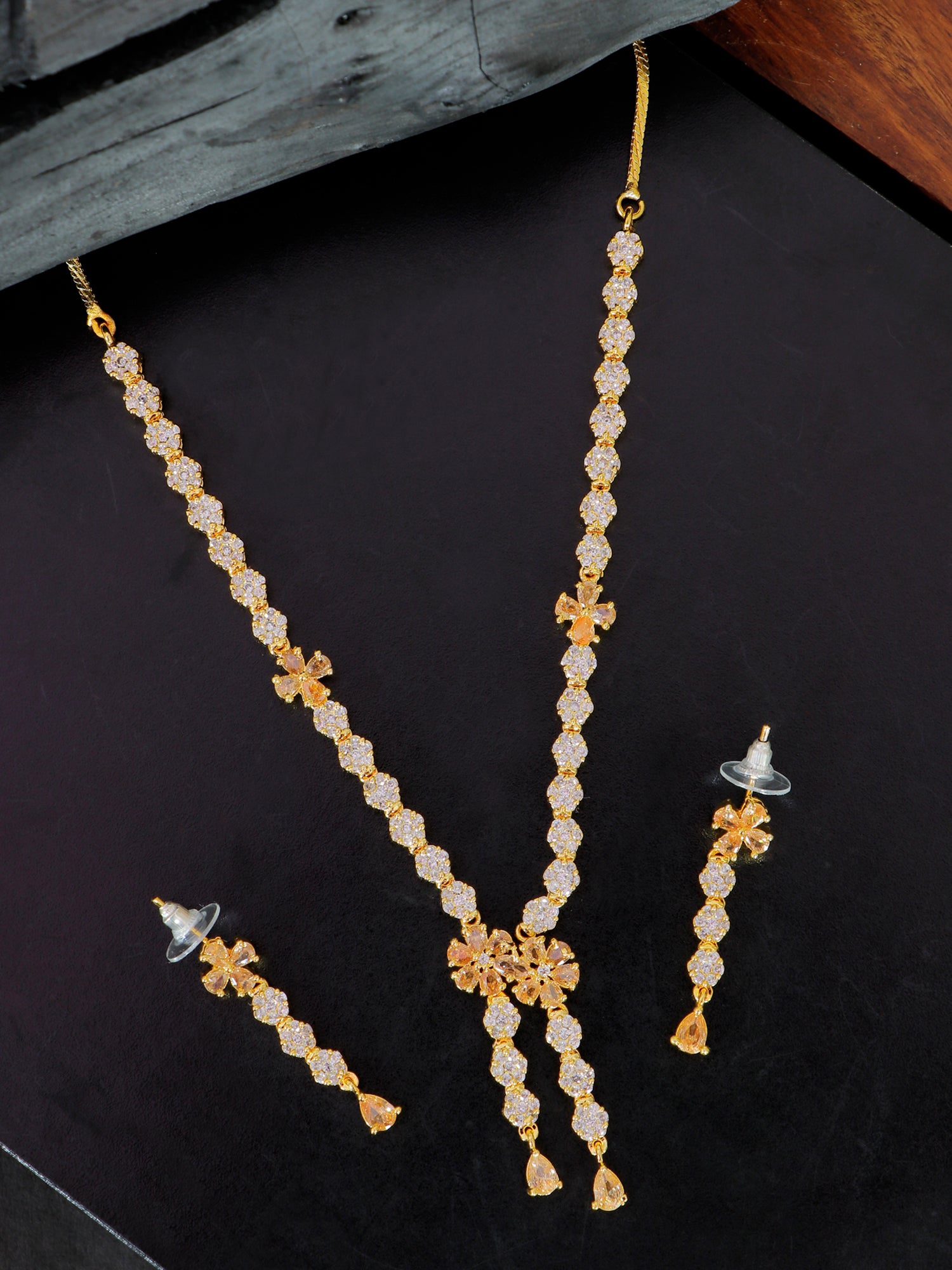 Diana Rose Gold AD Studded Lariat Jewellery Set