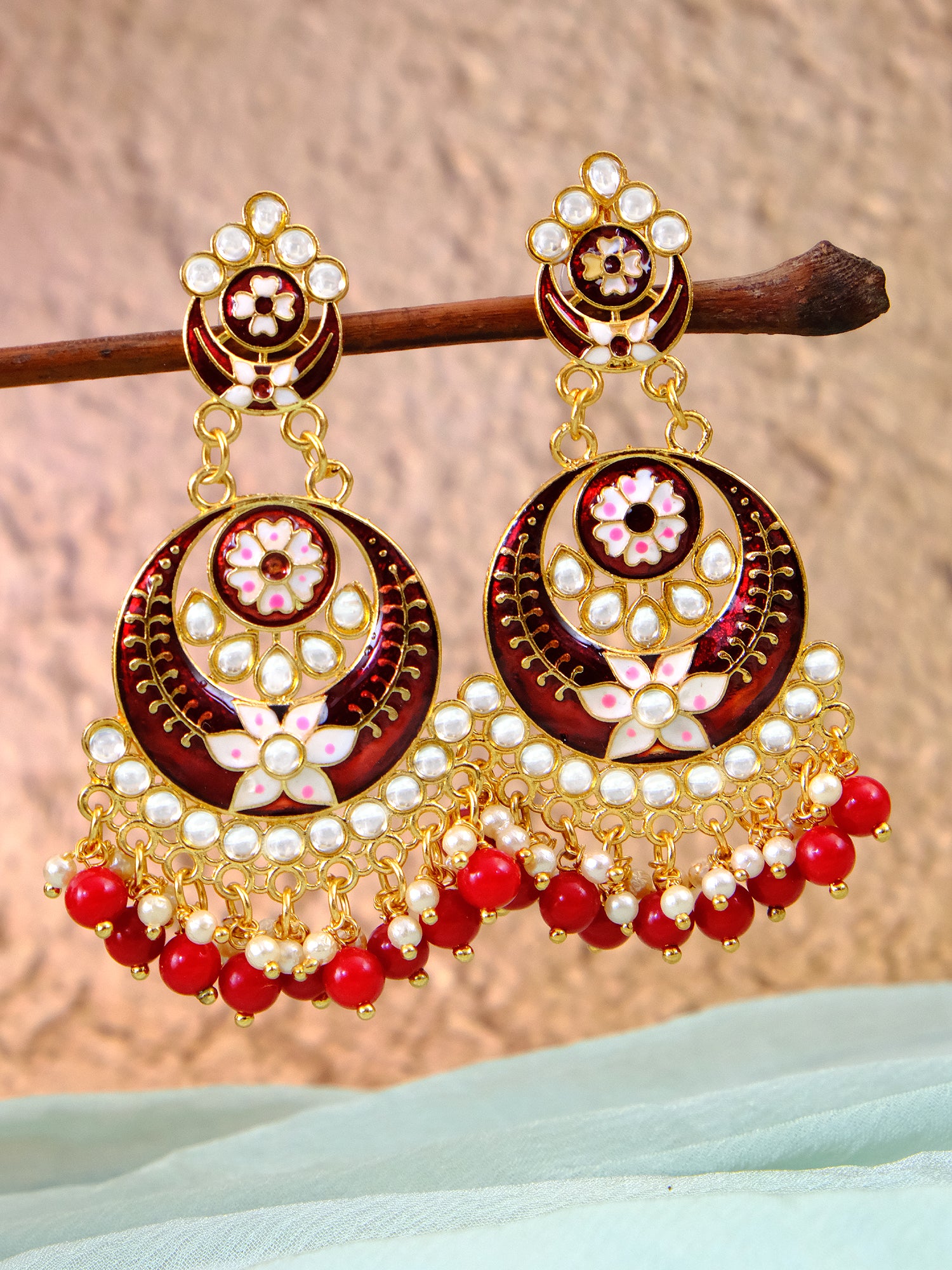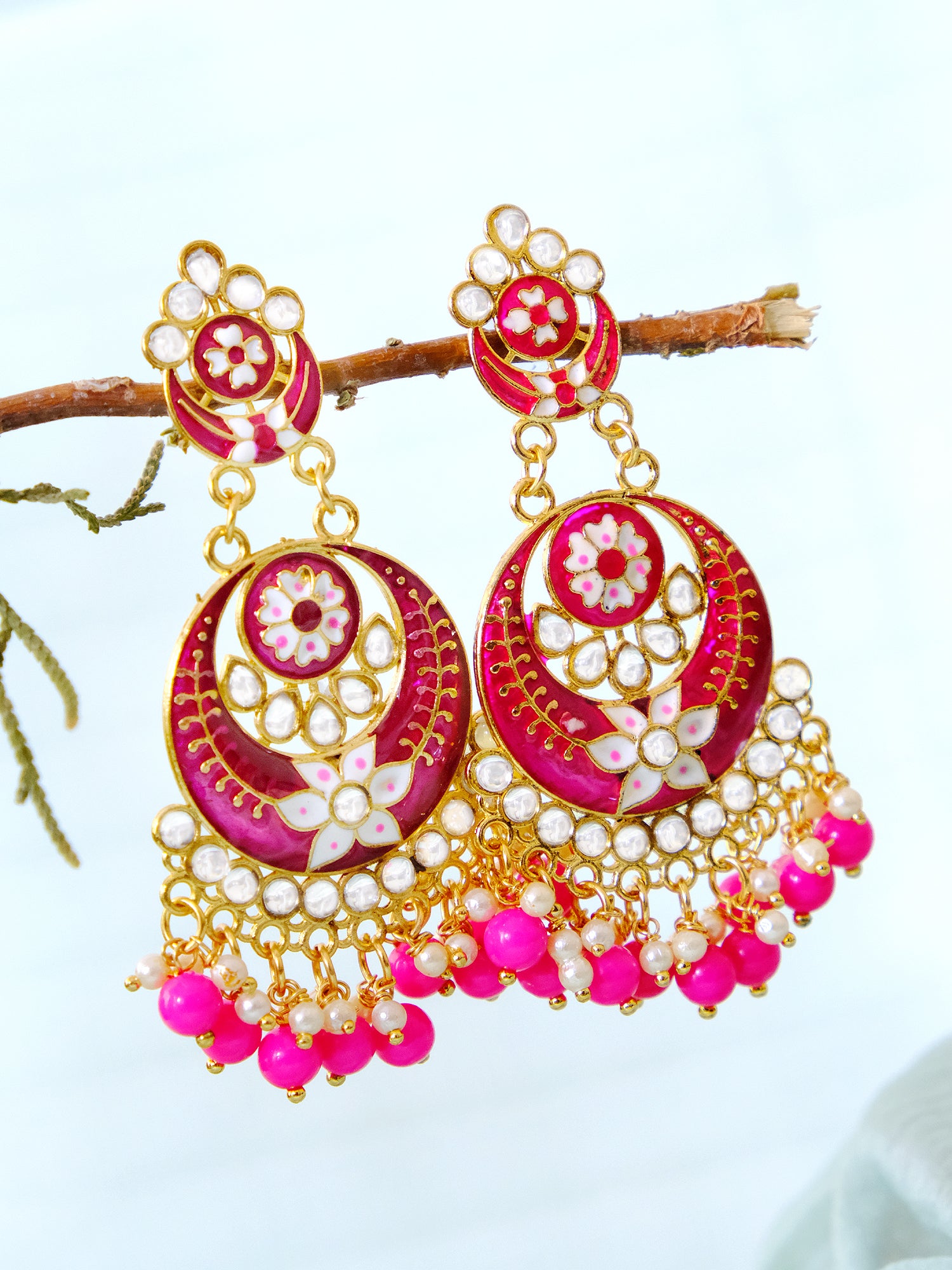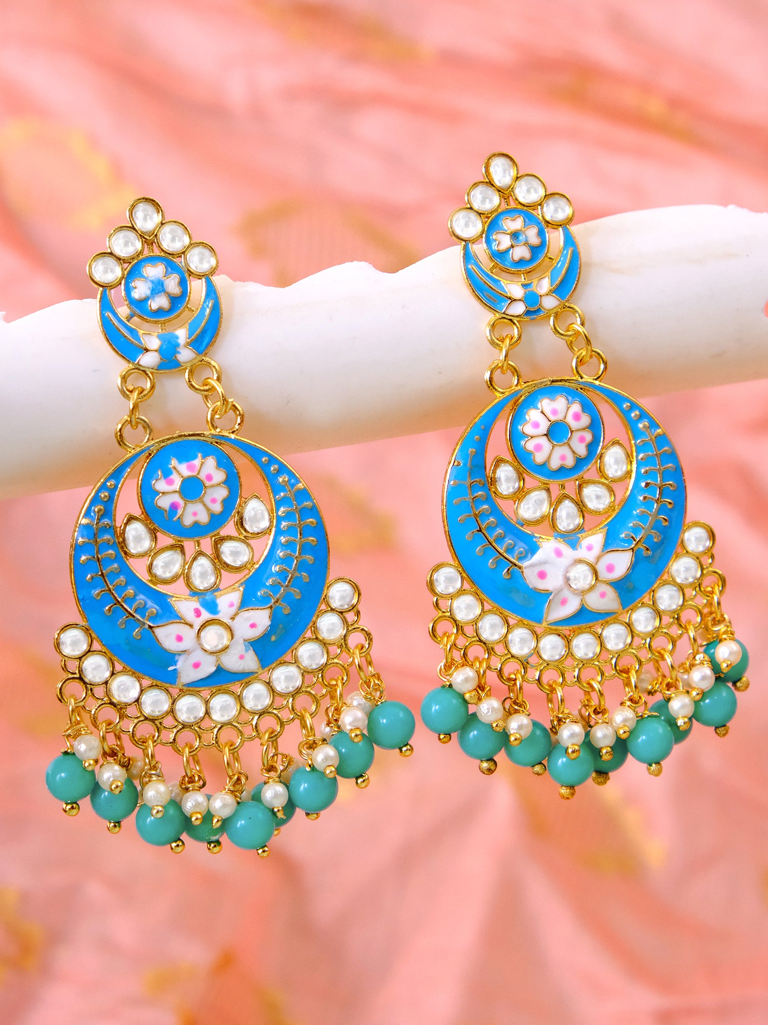 Elegant Gold Plated Traditional Indian Meenakari Earrings