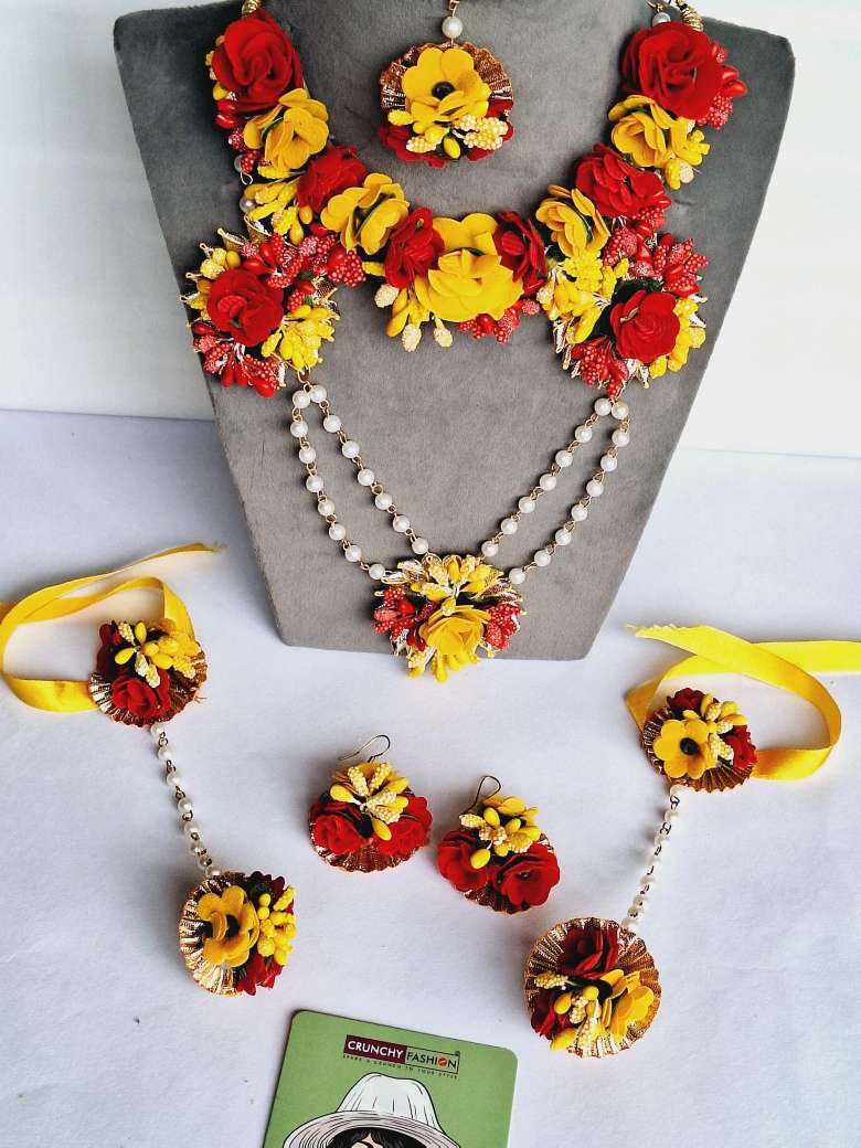 Elegant Red-Yellow Floral Bridal Jewelry Set for Haldi,Mehndi, Carnival