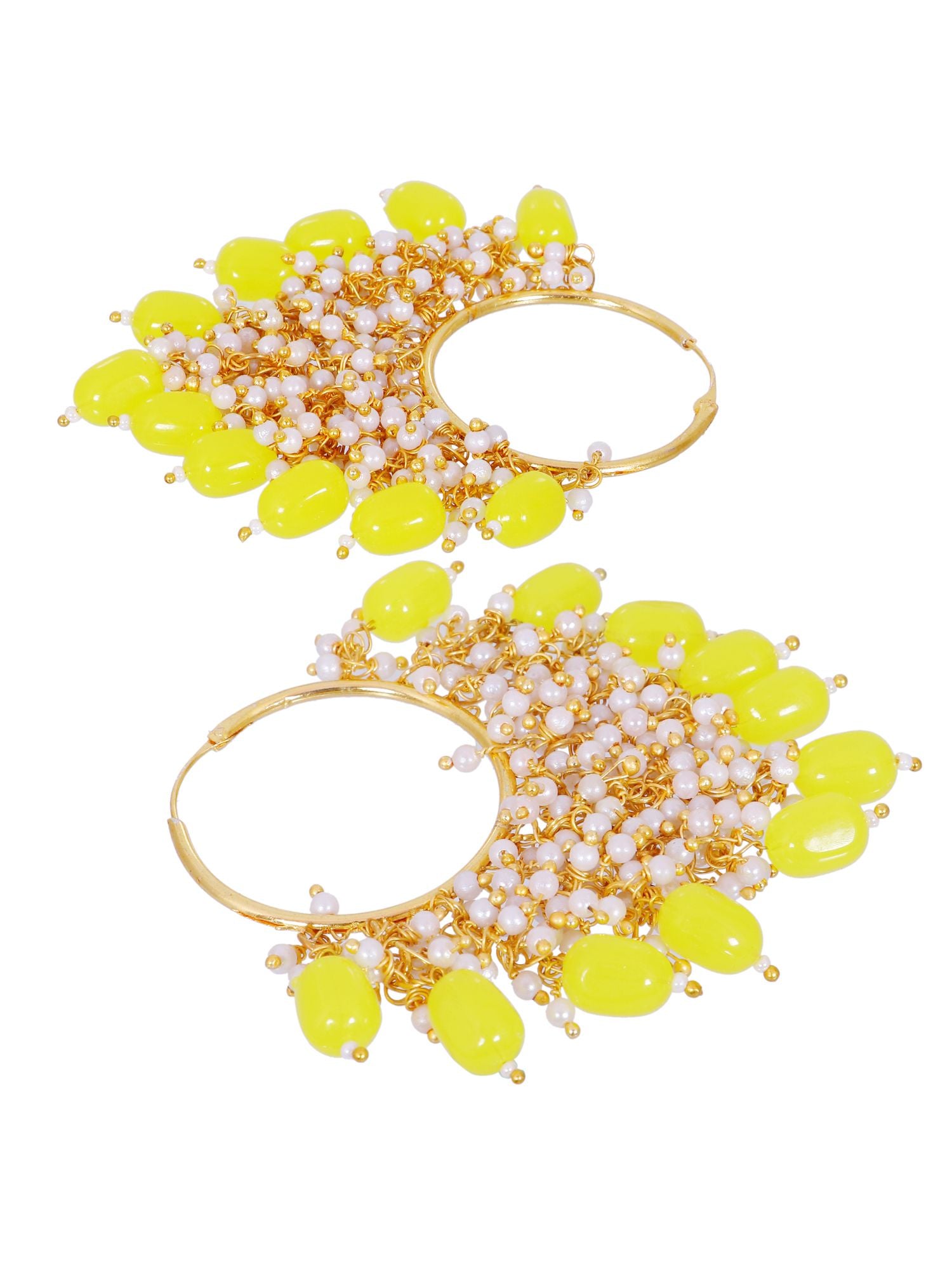 Ethnic Yellow Pearl Hoop Earrings for Women & Girls