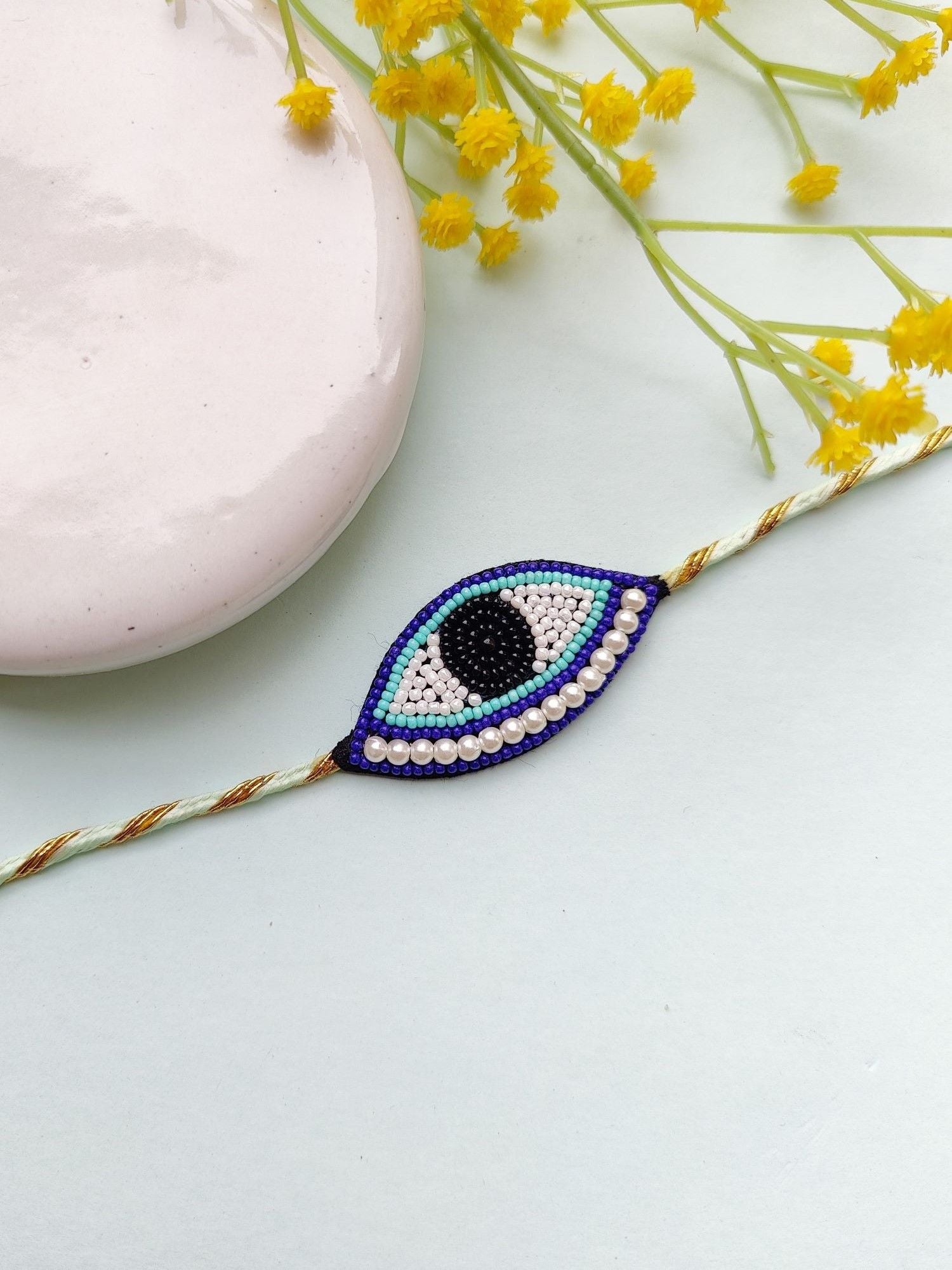 Festive 2025 Handmade Beaded Rakhi with Evil Eye Charm