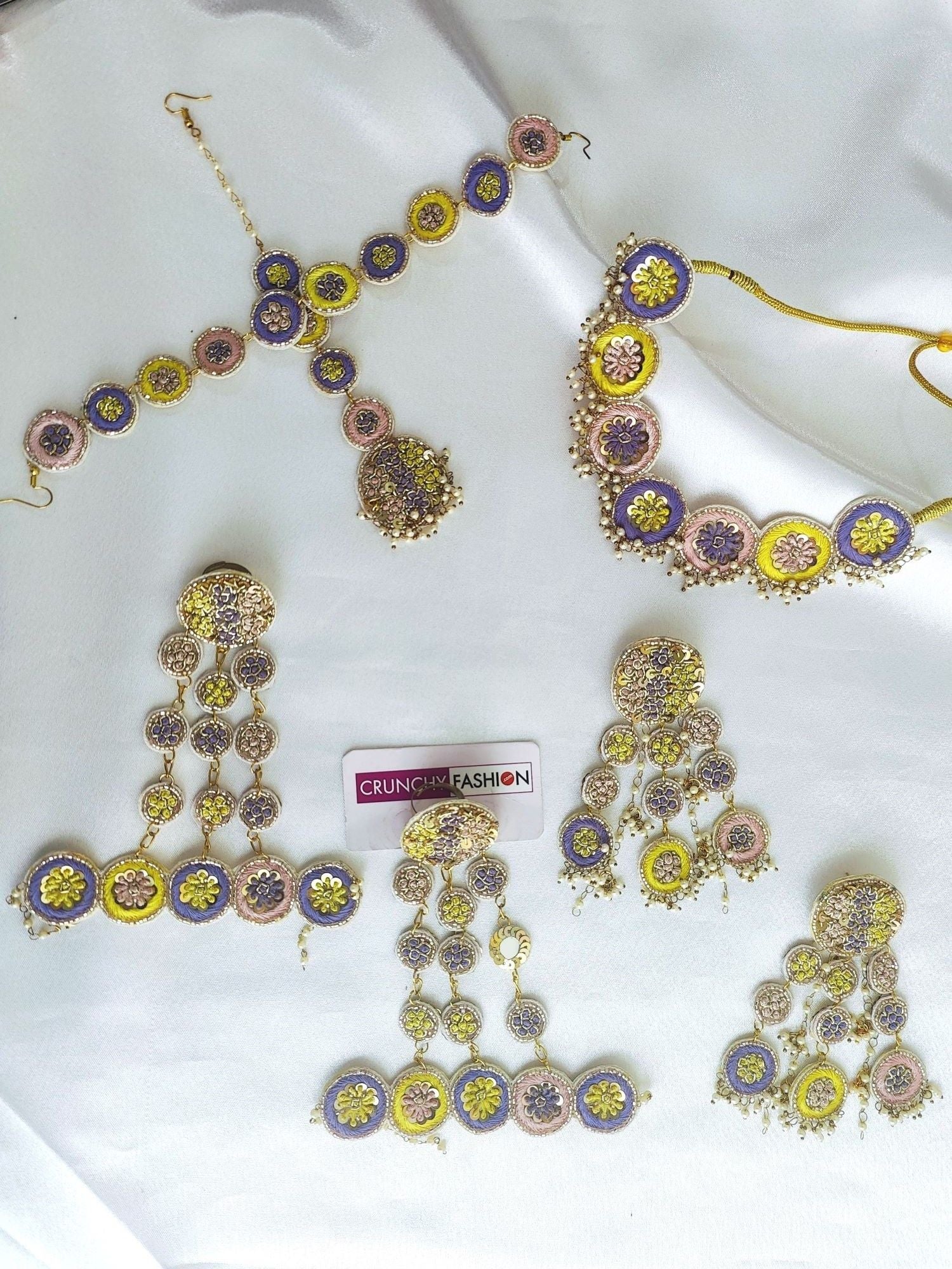 Floral Fantasy: Lavender-Yellow-Pink Handmade Jewellery Set for Haldi Mehndi