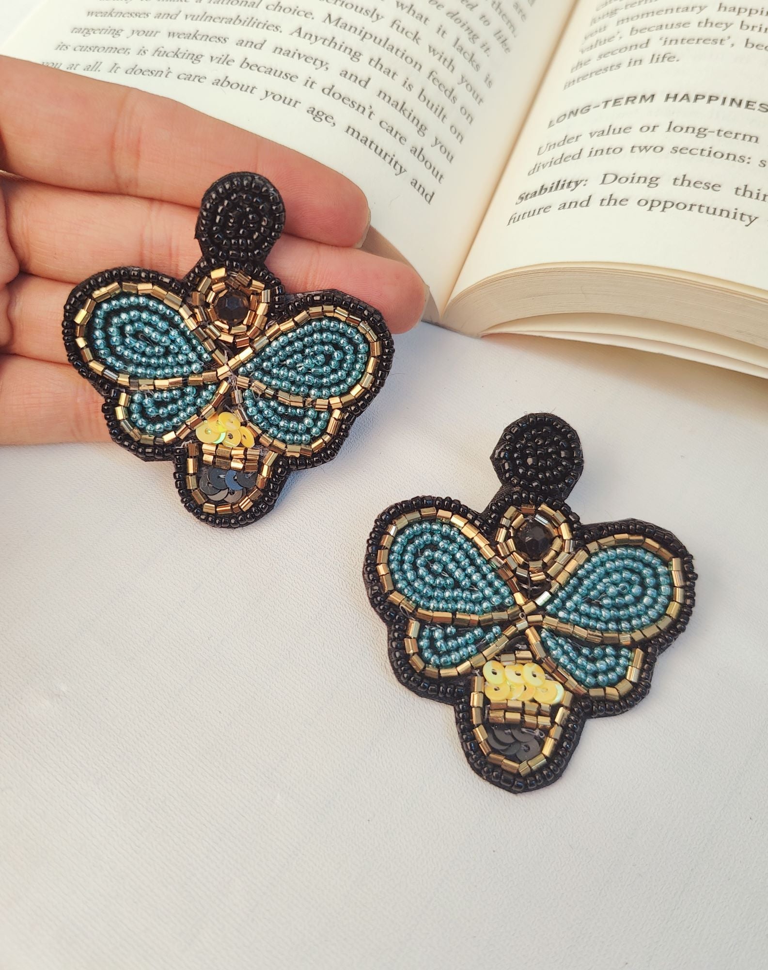 Flutterfly Charms: Handcrafted Multicolor Beaded Embroidered Earrings