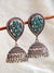 Oxidised German Sliver Green Jhumka Earrings for Women