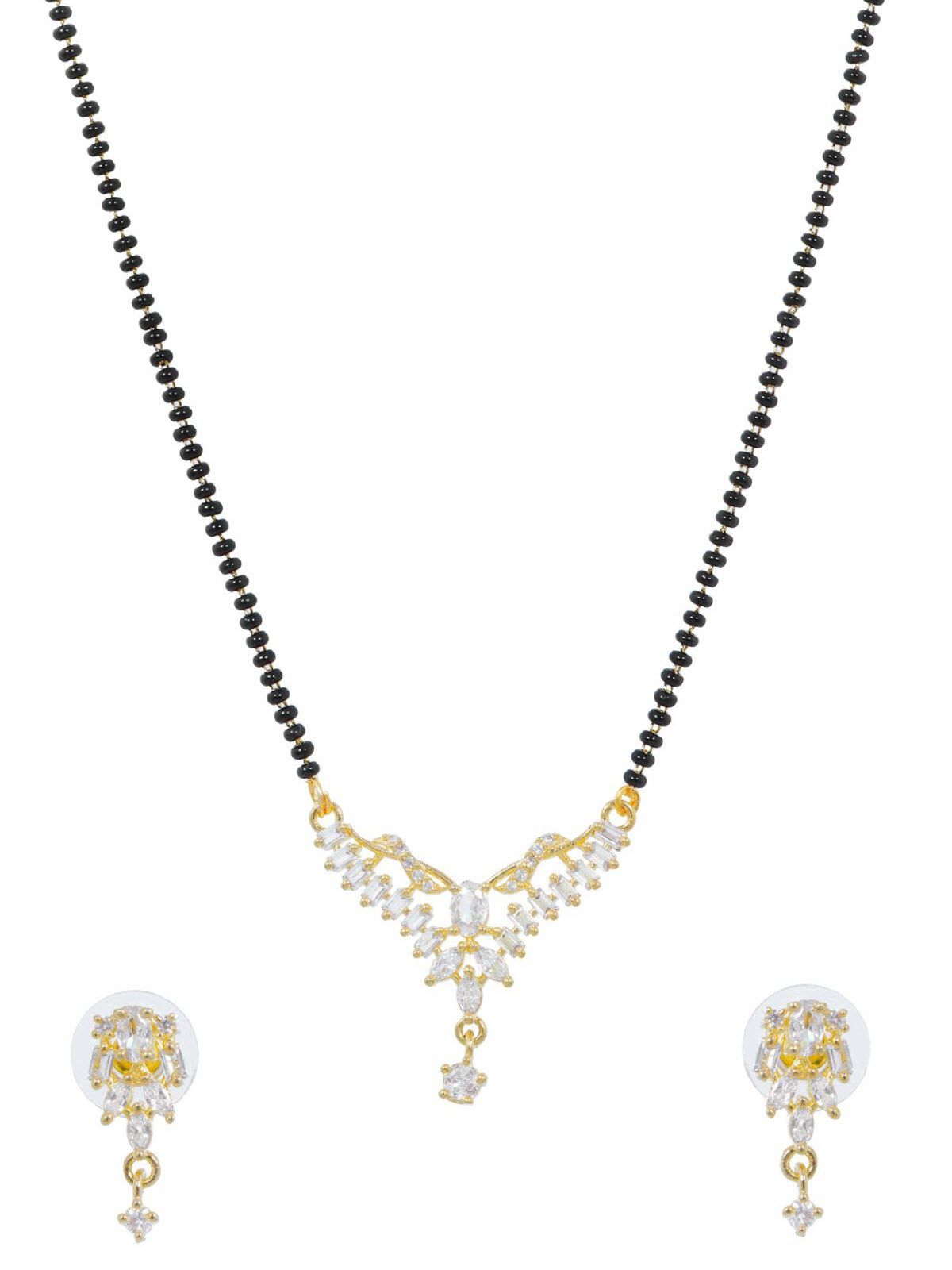 Gold-Plated AD studded Black Beaded Mangalsutra Set for Women