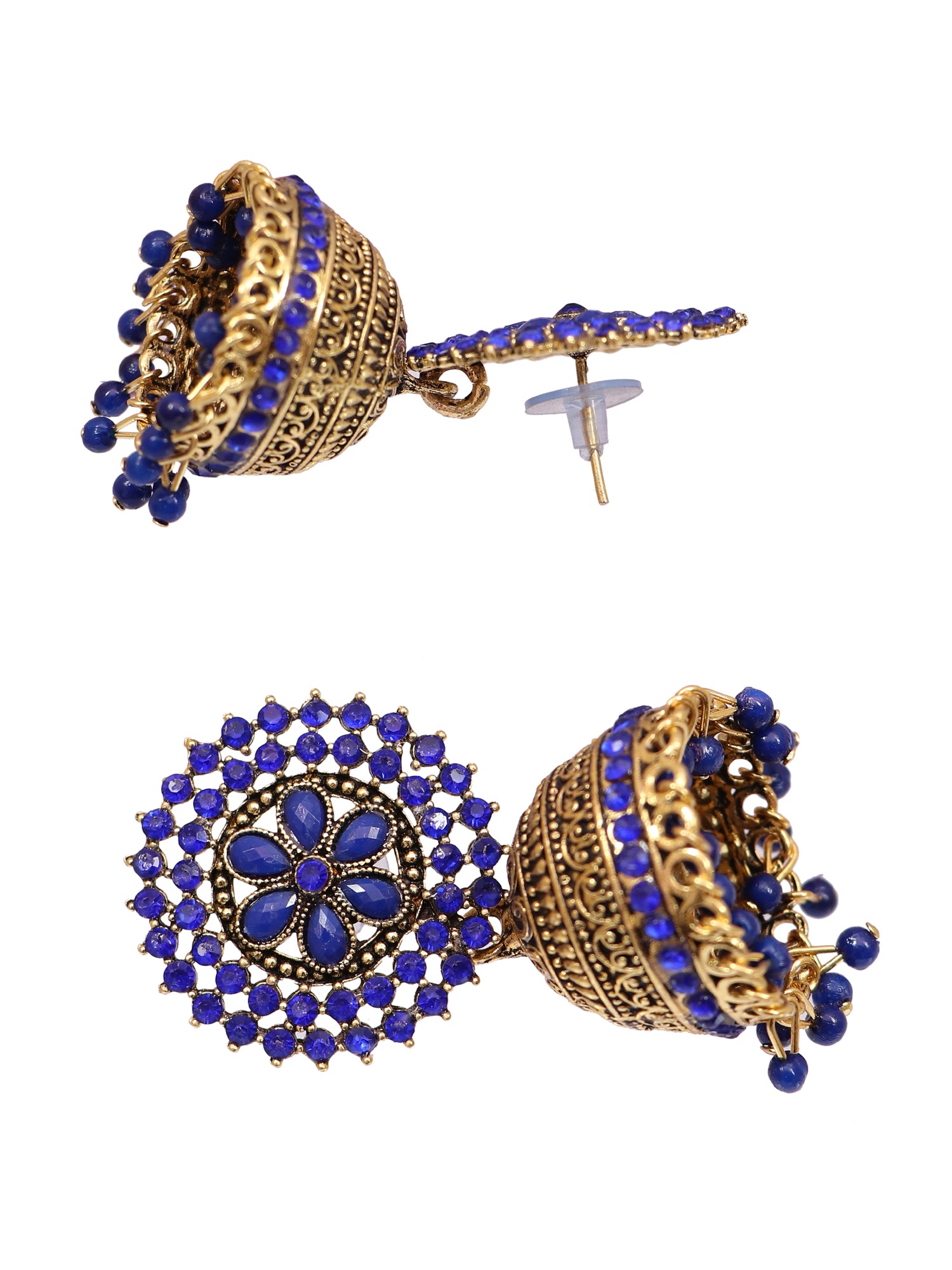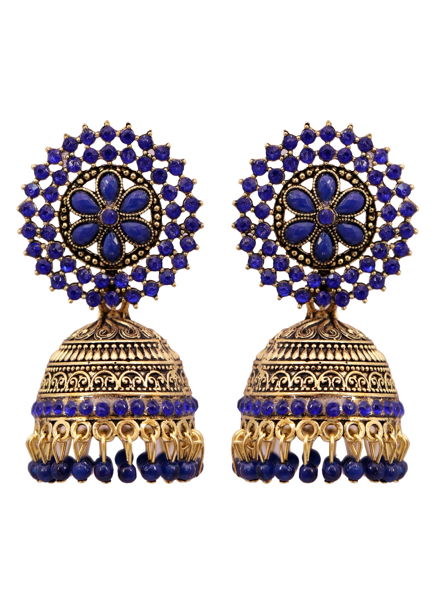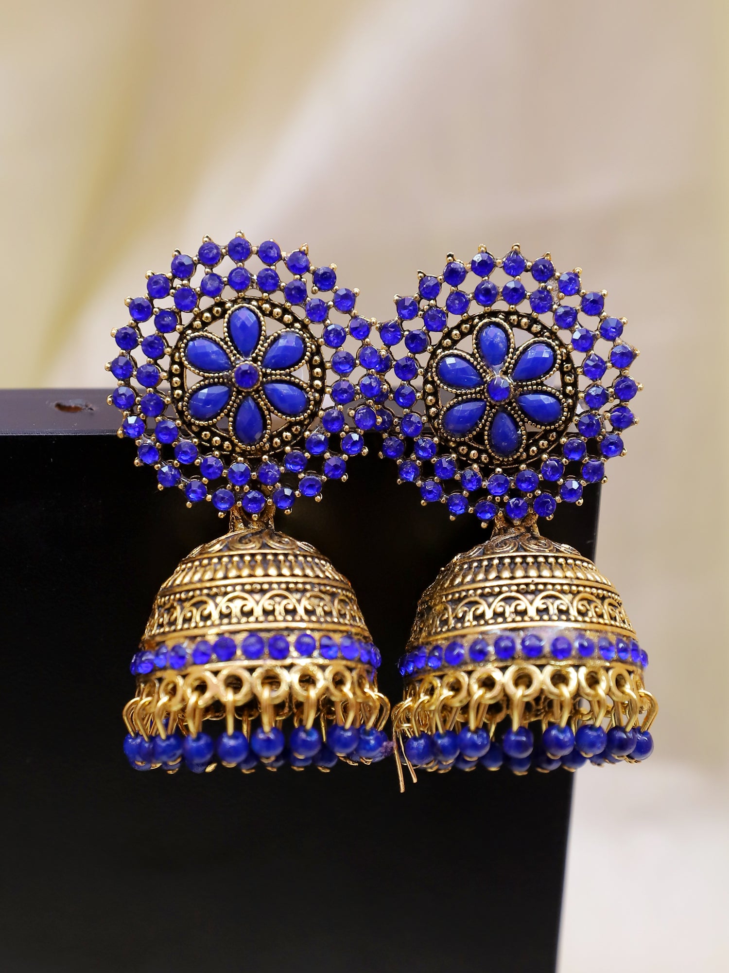 - Gold Plated Jhumka Earrings with Stone Accents for Women - Traditional Yet Modern Accessory