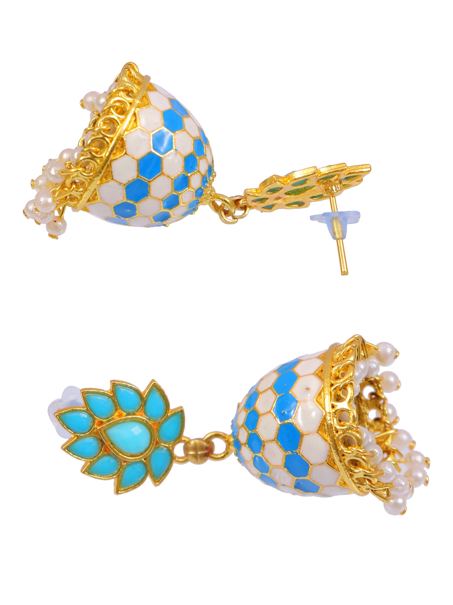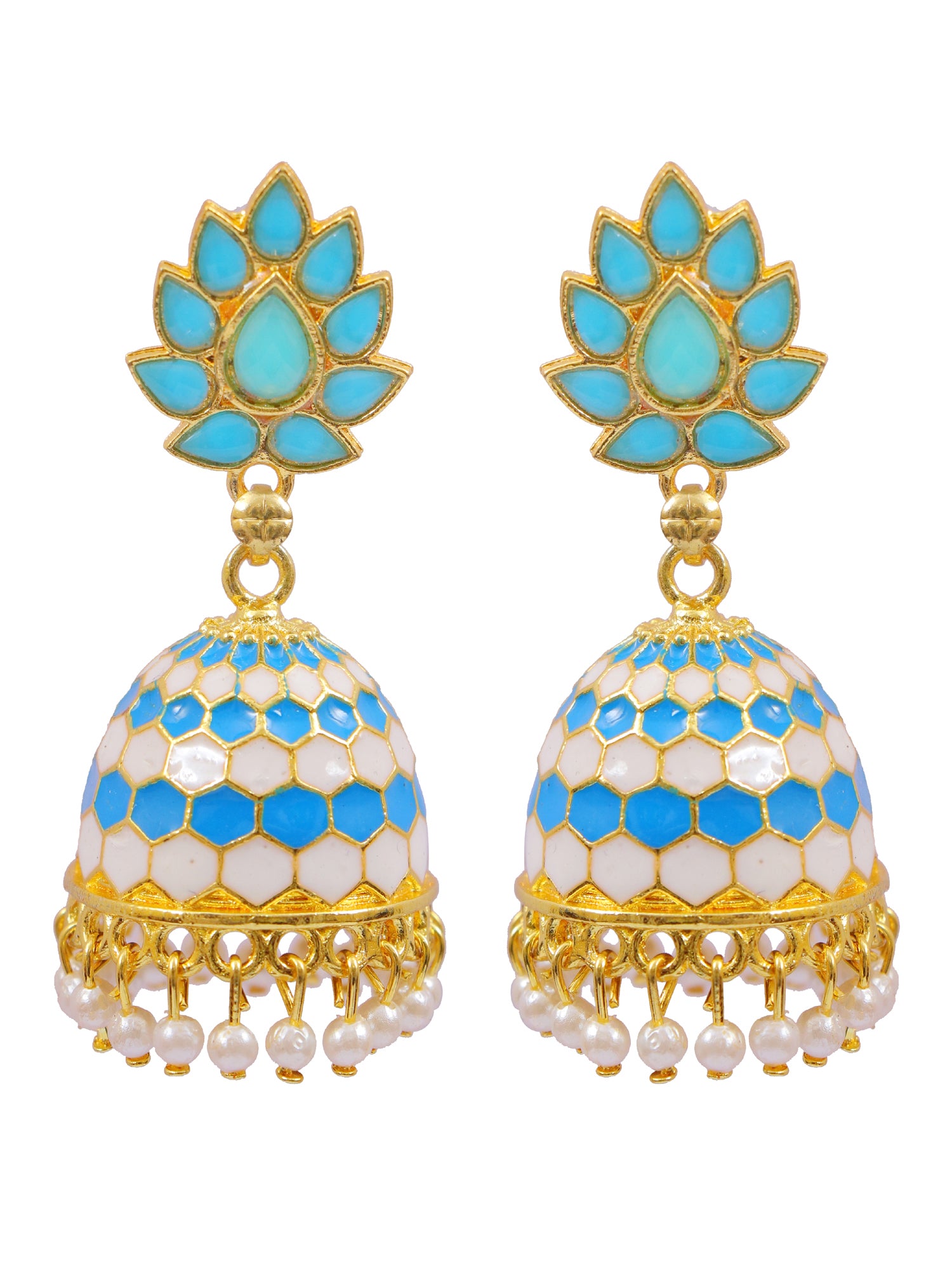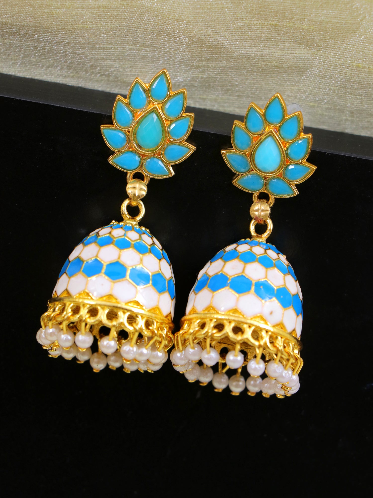 Gold-Plated Floral Jhumka: Women's Traditional Earrings with White Pearls