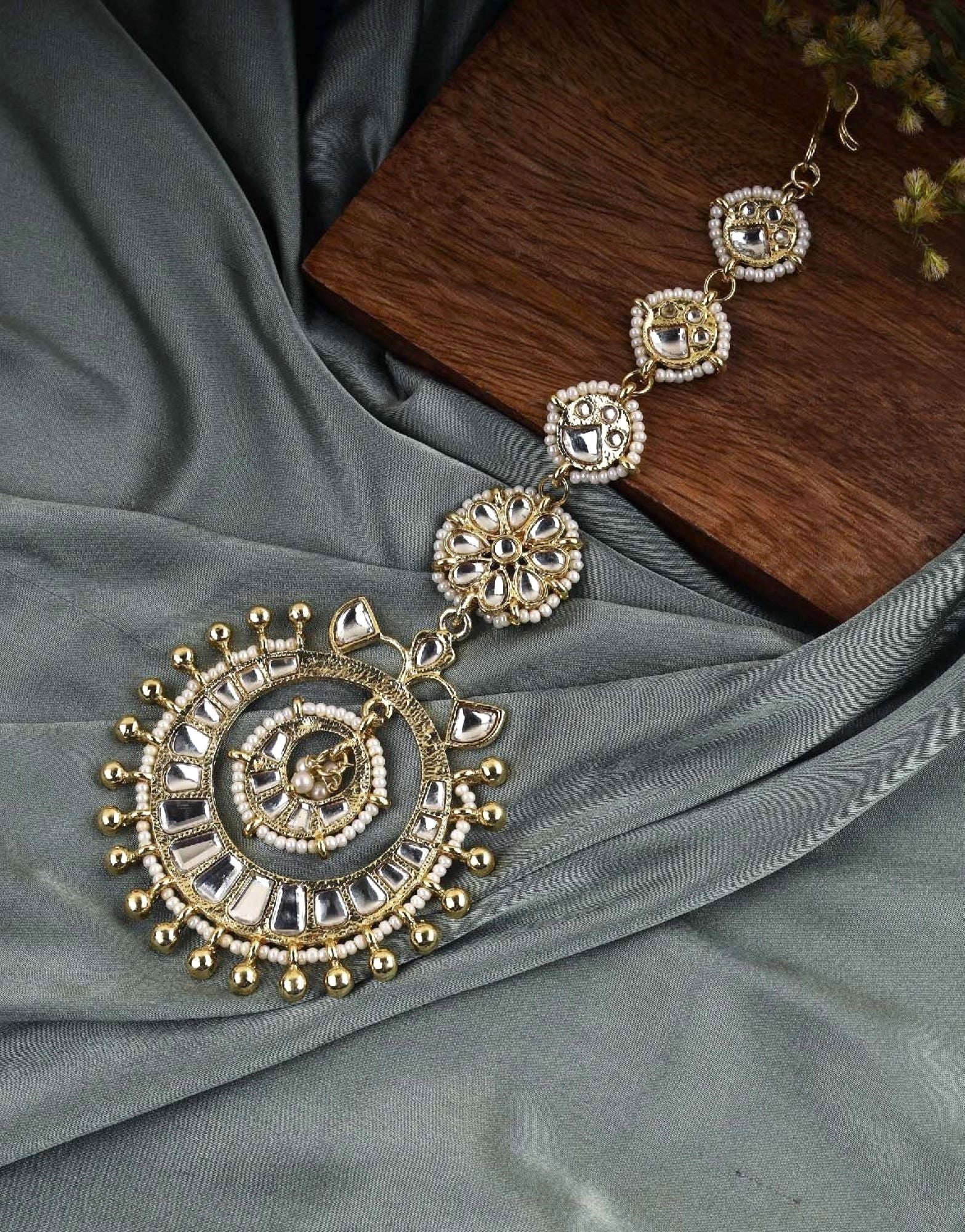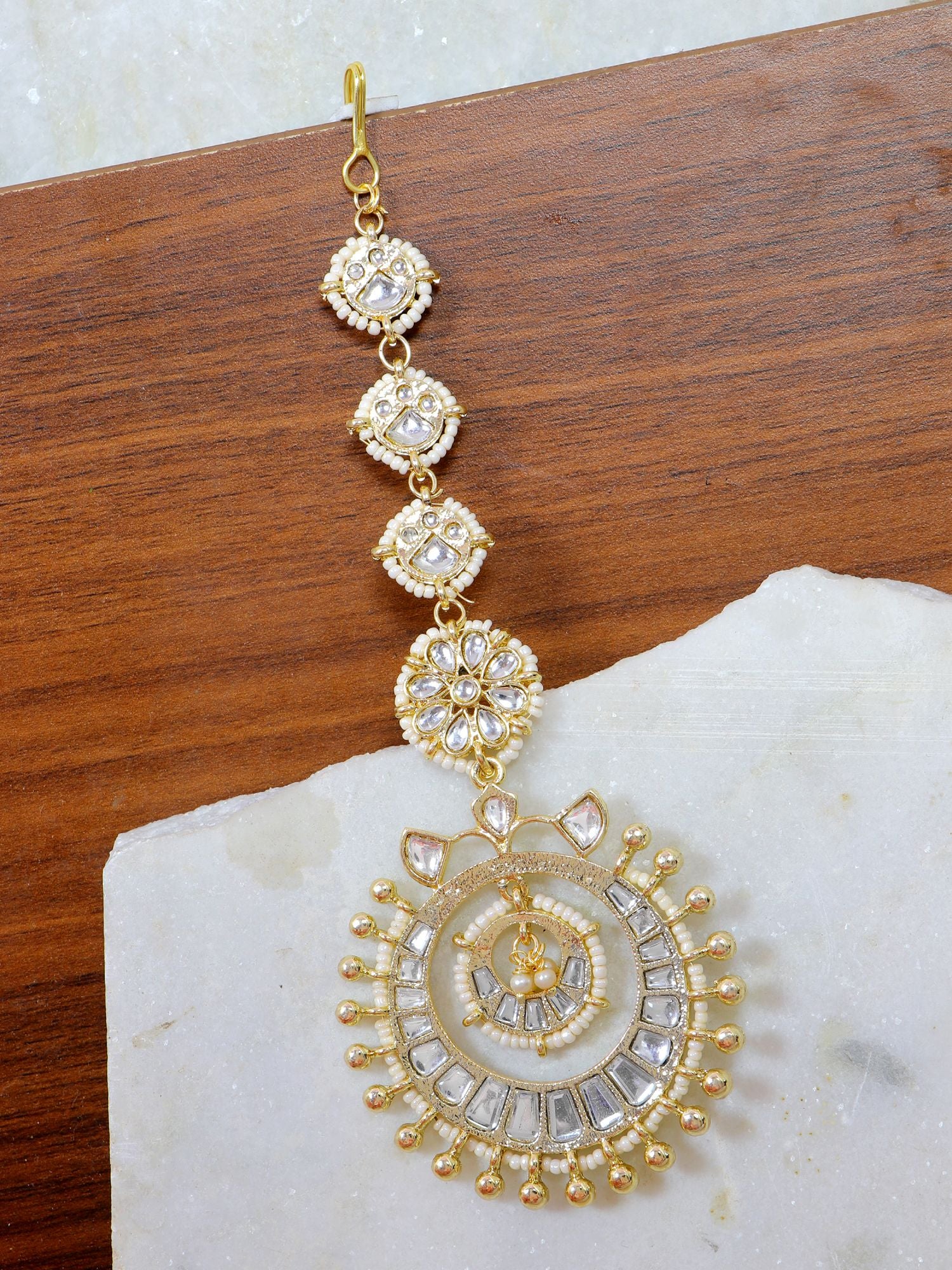 Golden kundan Studded Ethnic Maang Tikka for Women