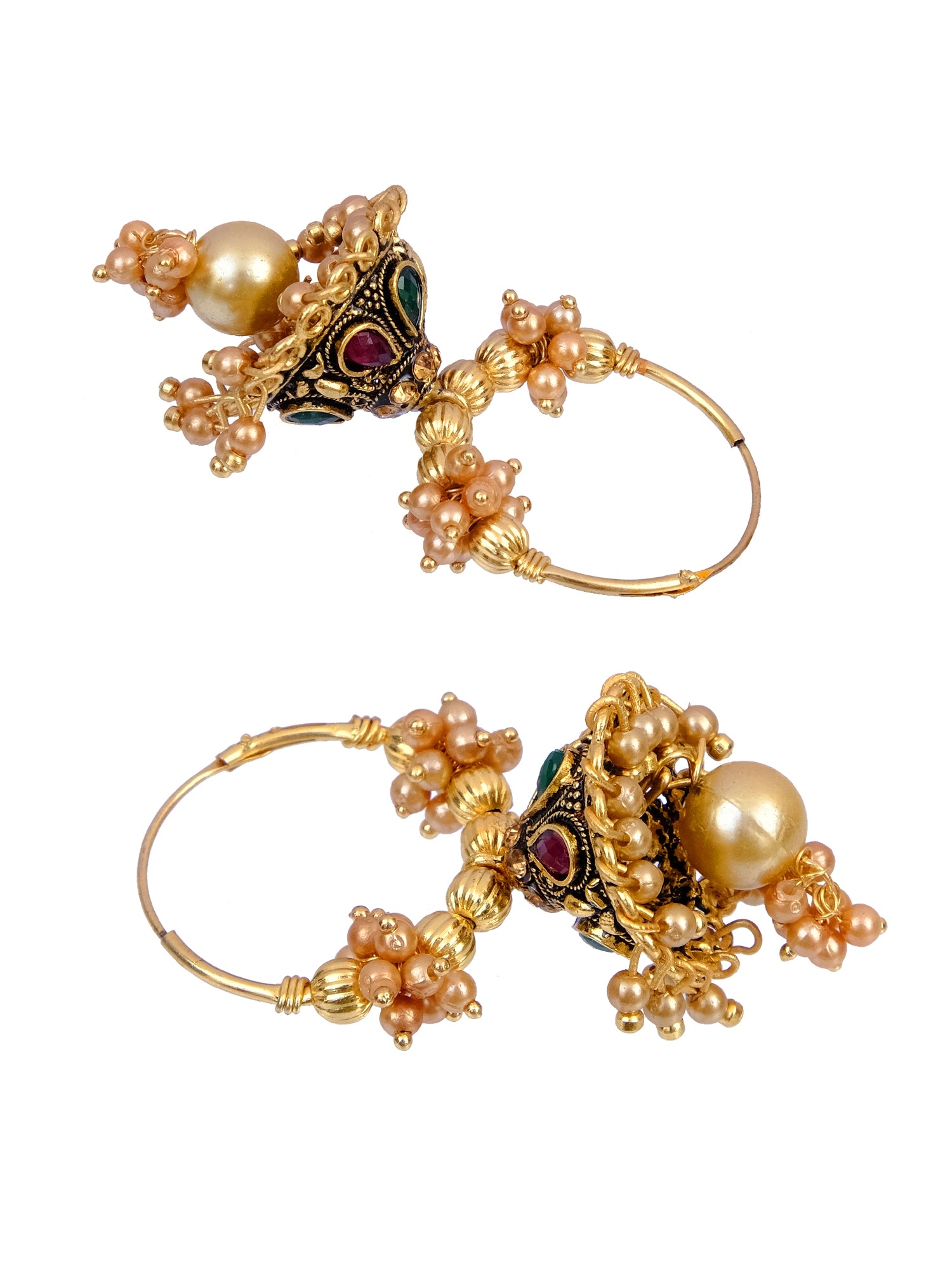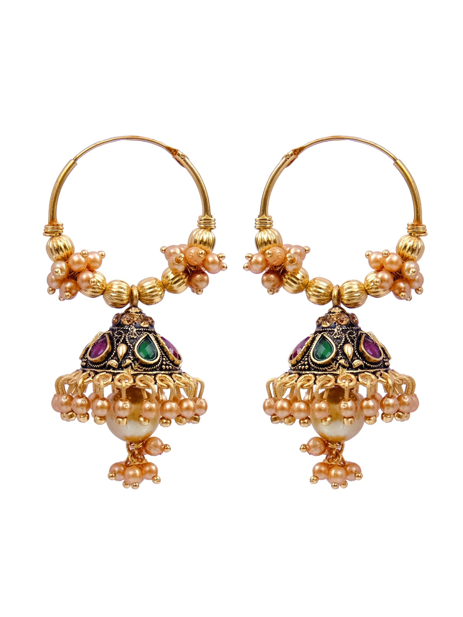 Luxurious Gold-Plated Hoop Earrings with Jhumka & Pearls for Women