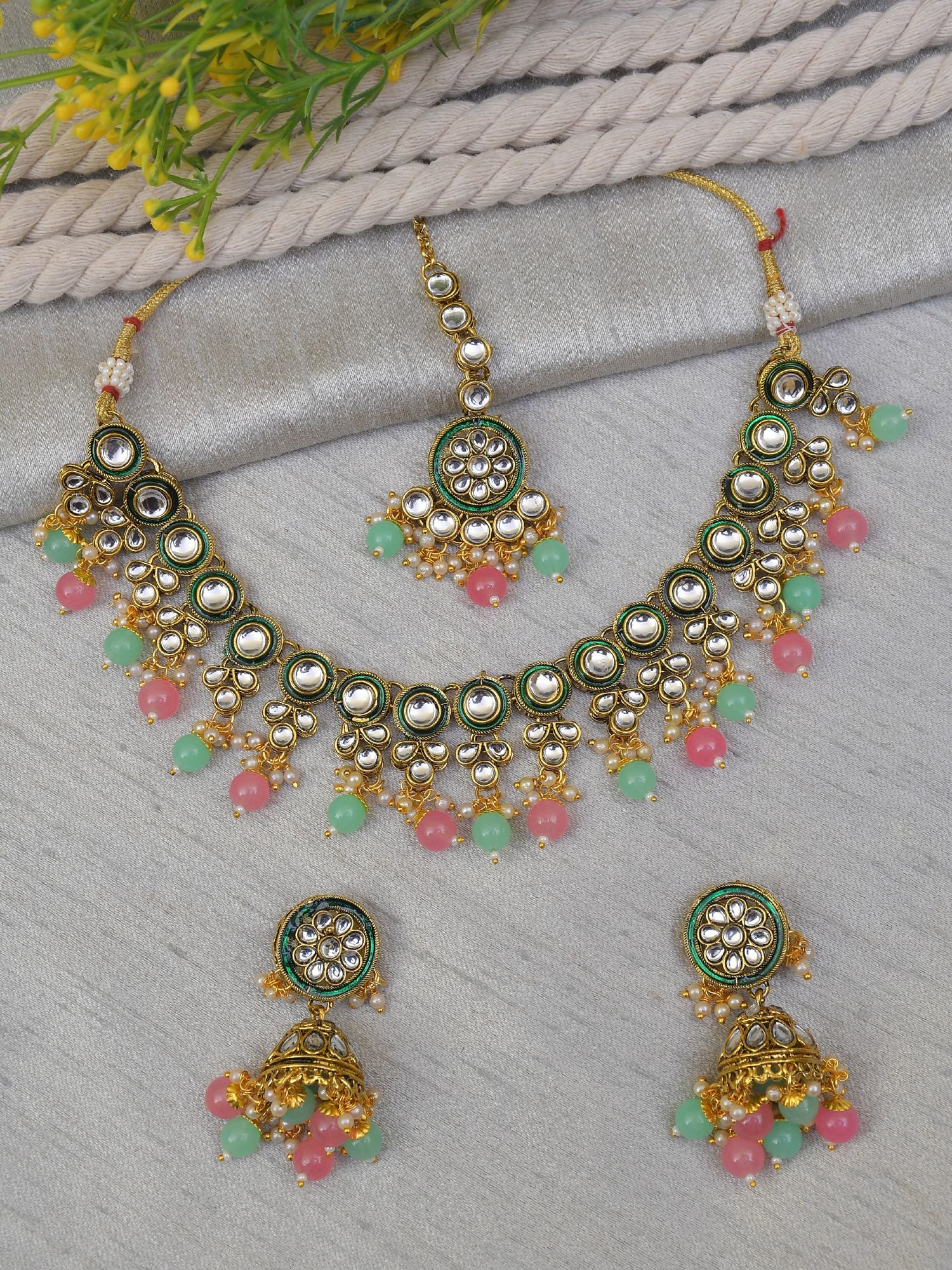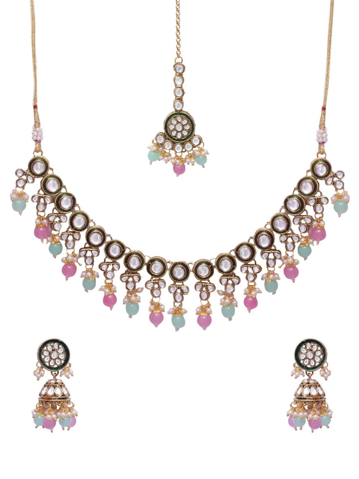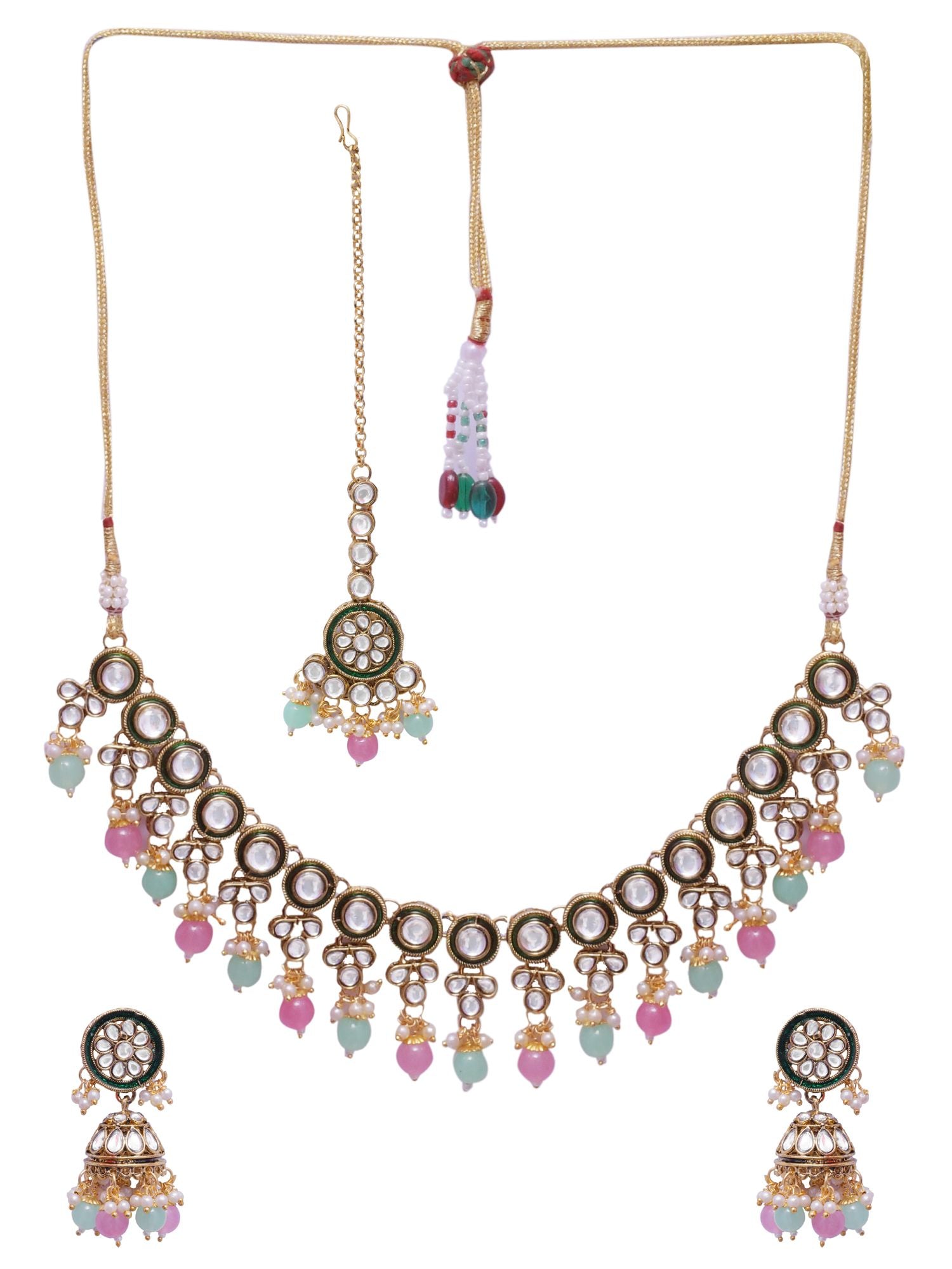 Gold-Plated Kundan Crystal Pearl Necklace Set for Wedding