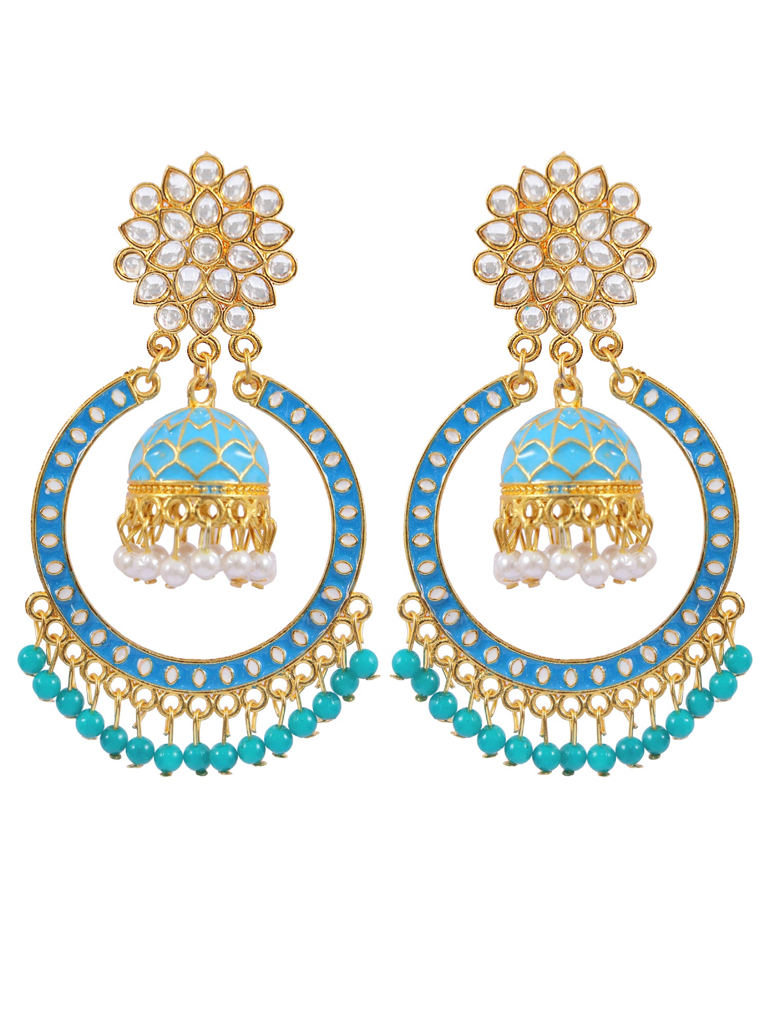 - Trendy Gold-Plated Kundan Dangler Multi-Color Jhumka Earrings for Unique Style
