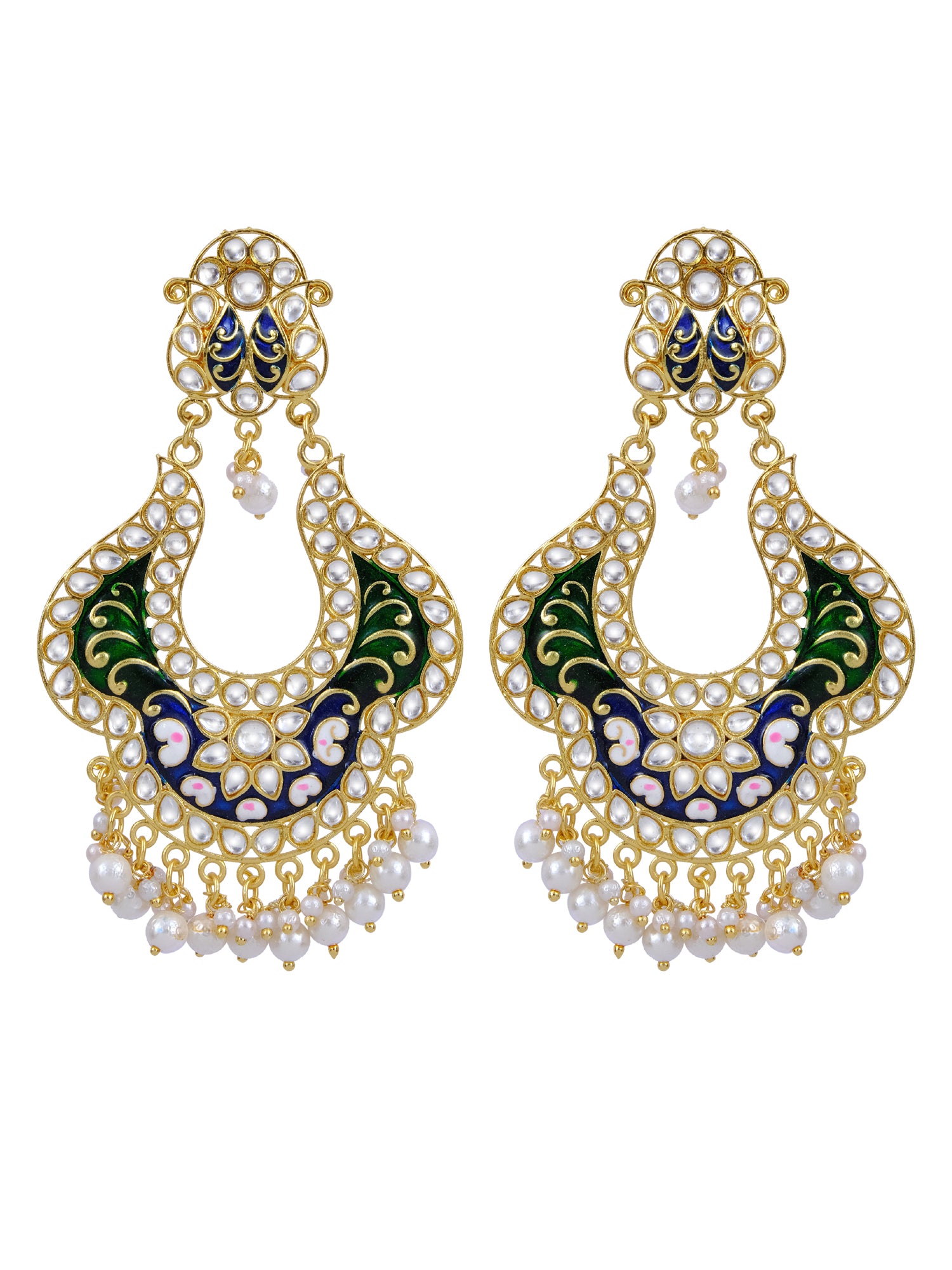 Women's Gold Plated Long Danglers Stone Earrings - New Traditional Design