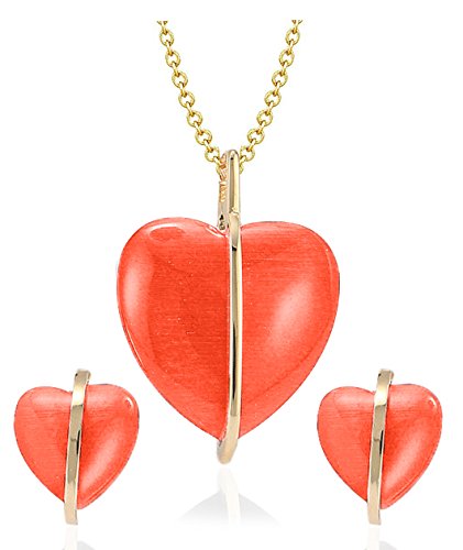 - Elegant Gold Plated Heart Shaped Pendant and Earring Set for Stylish Women