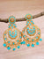 Gold-Plated, SeaGreen Kundan & Pearl, SkyBlue Long Danglers Earrings for Women