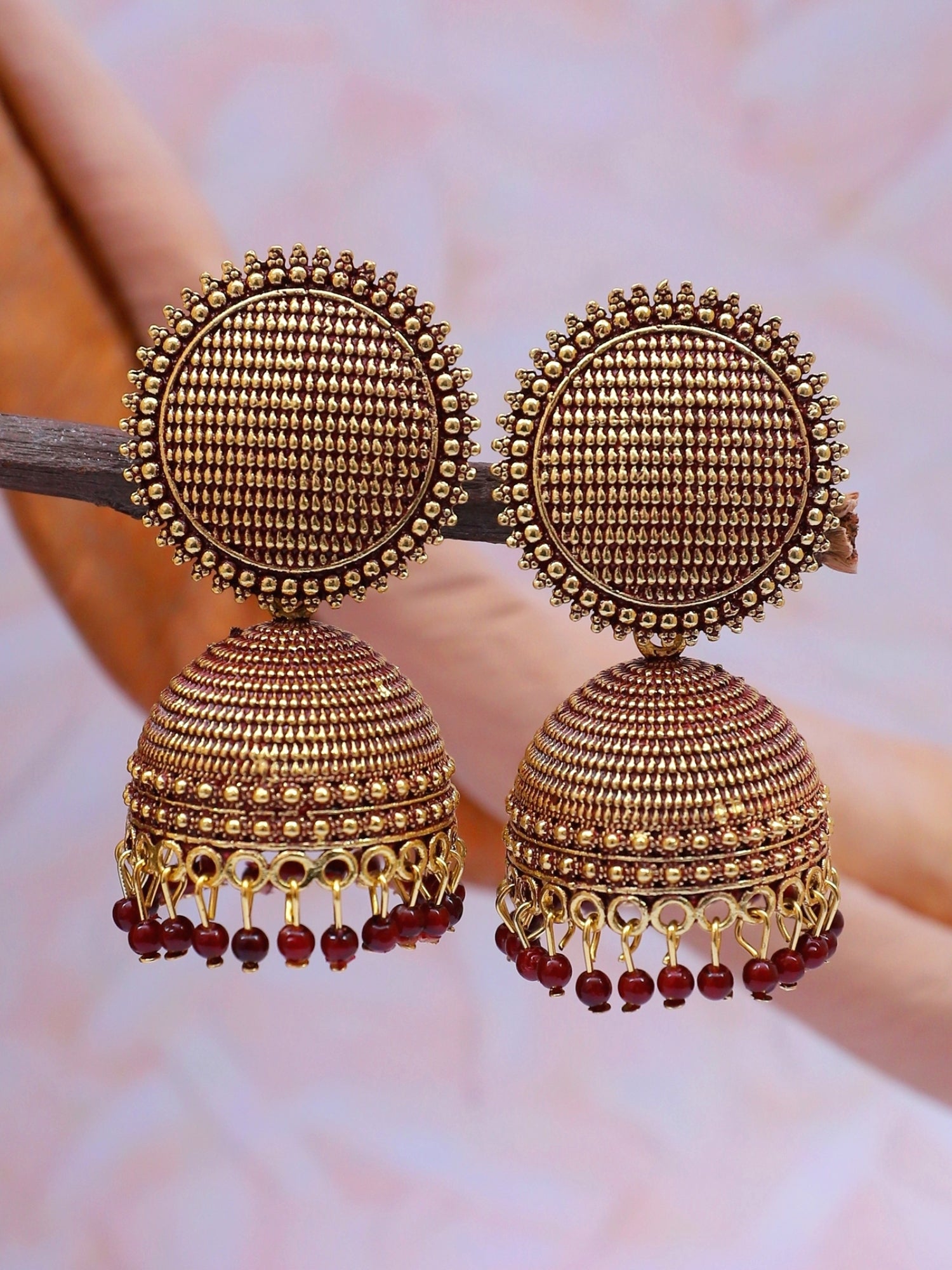 - Antique Gold Plated Stylish Wedding Wear Jhumki Earrings for WOmen