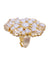 Pink, gold-plated, white pearl and cowrie shell jewellery set with flower design for women's festive occasions