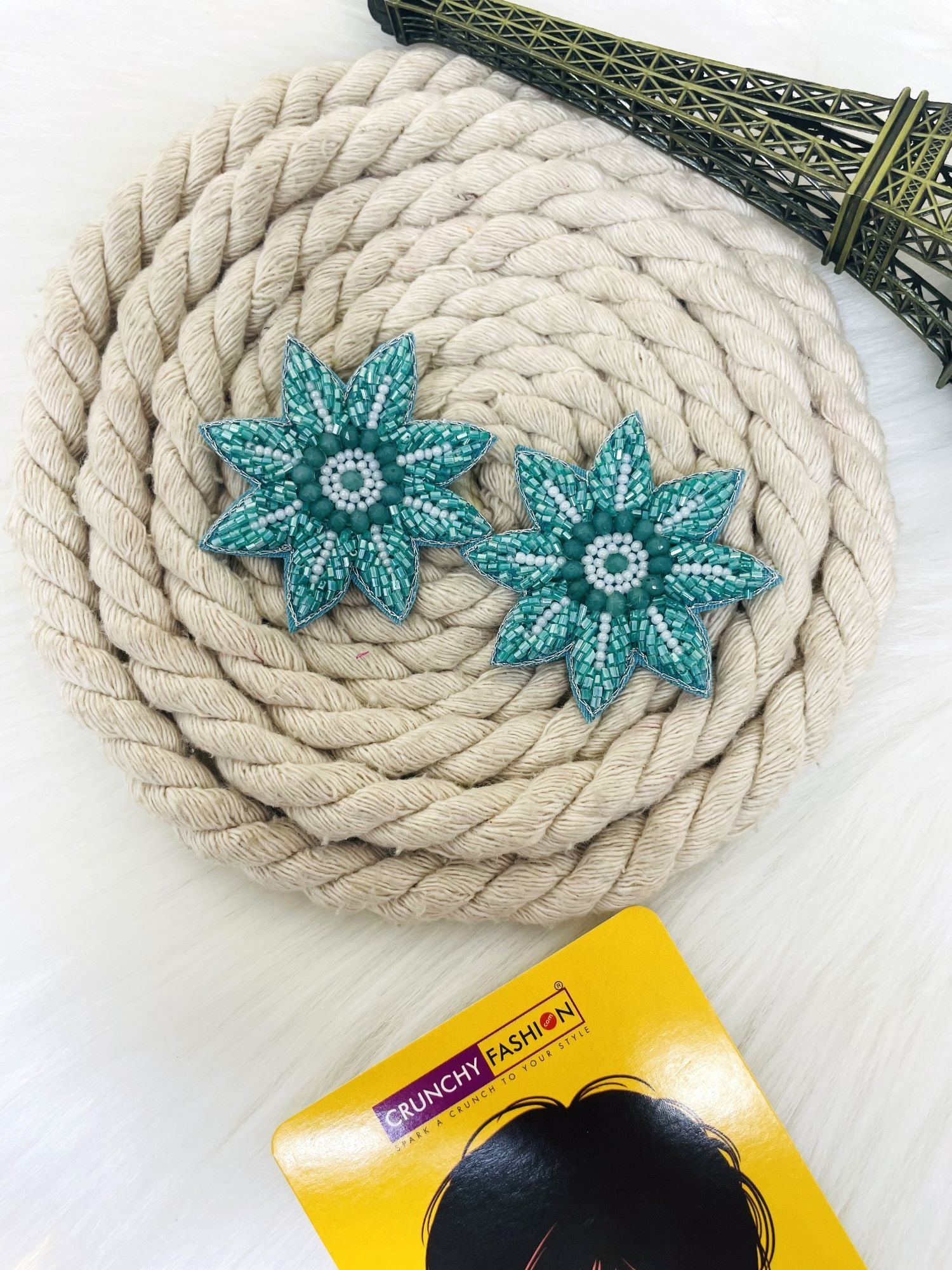 Vibrant Handcrafted Green Floral Stud Earrings for Summer Extravaganza