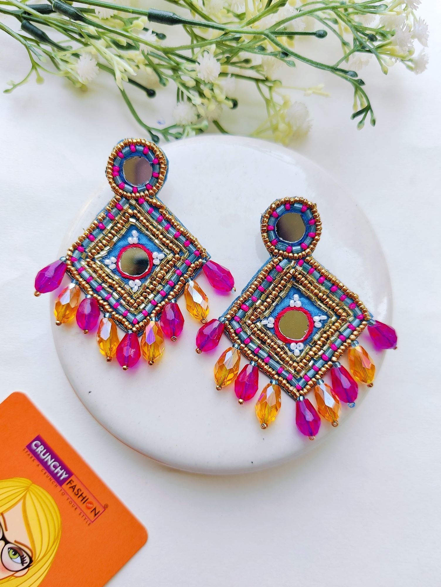 - Festive Charm Handmade Pink-Peach Beaded Drop Earrings for Women and Girls