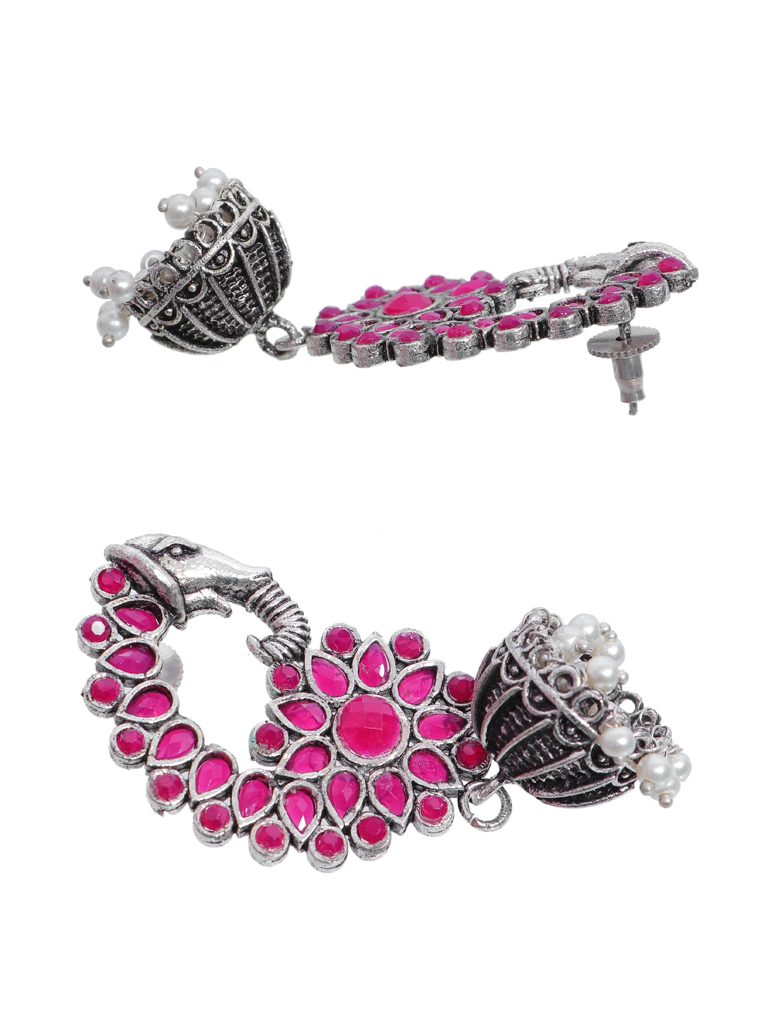 - Handcrafted Indian Oxidized Silver Elephant Beaded Jhumka Earrings