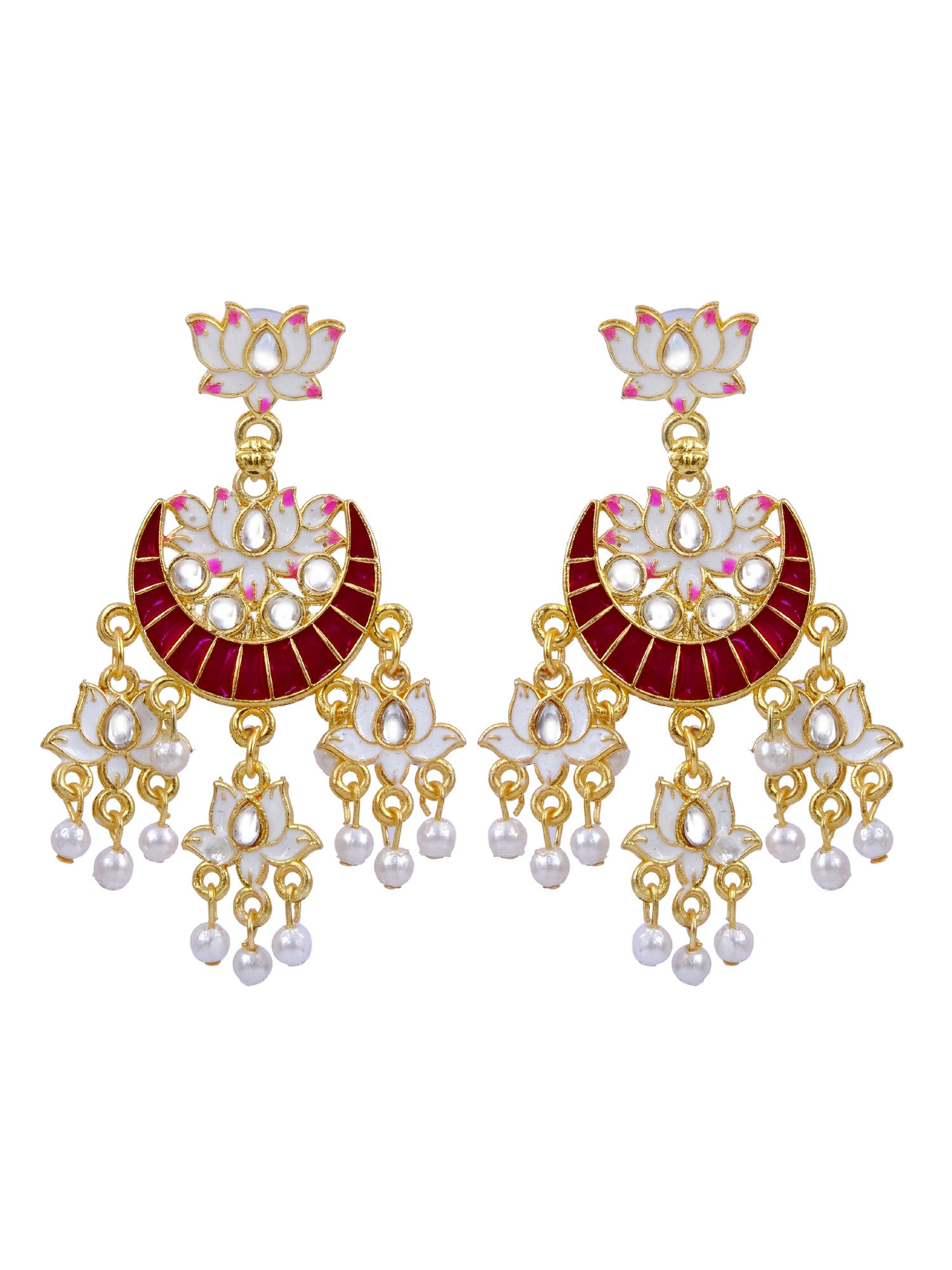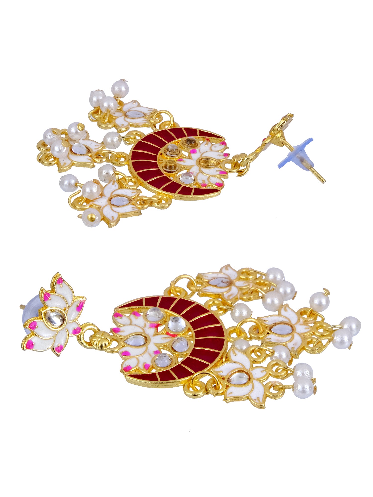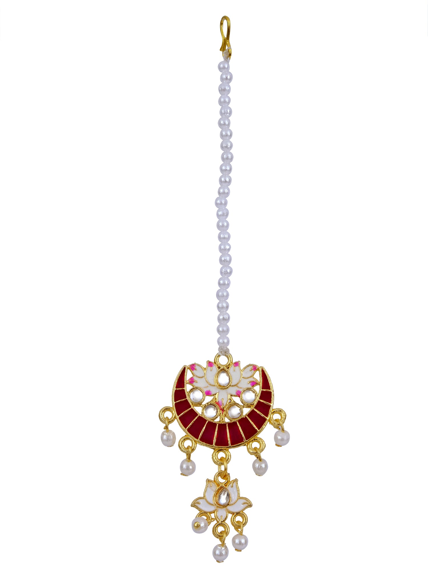 Beautiful & Unique Lotus-Design Multicolor Meenakari Earrings & Maang Tika Set
