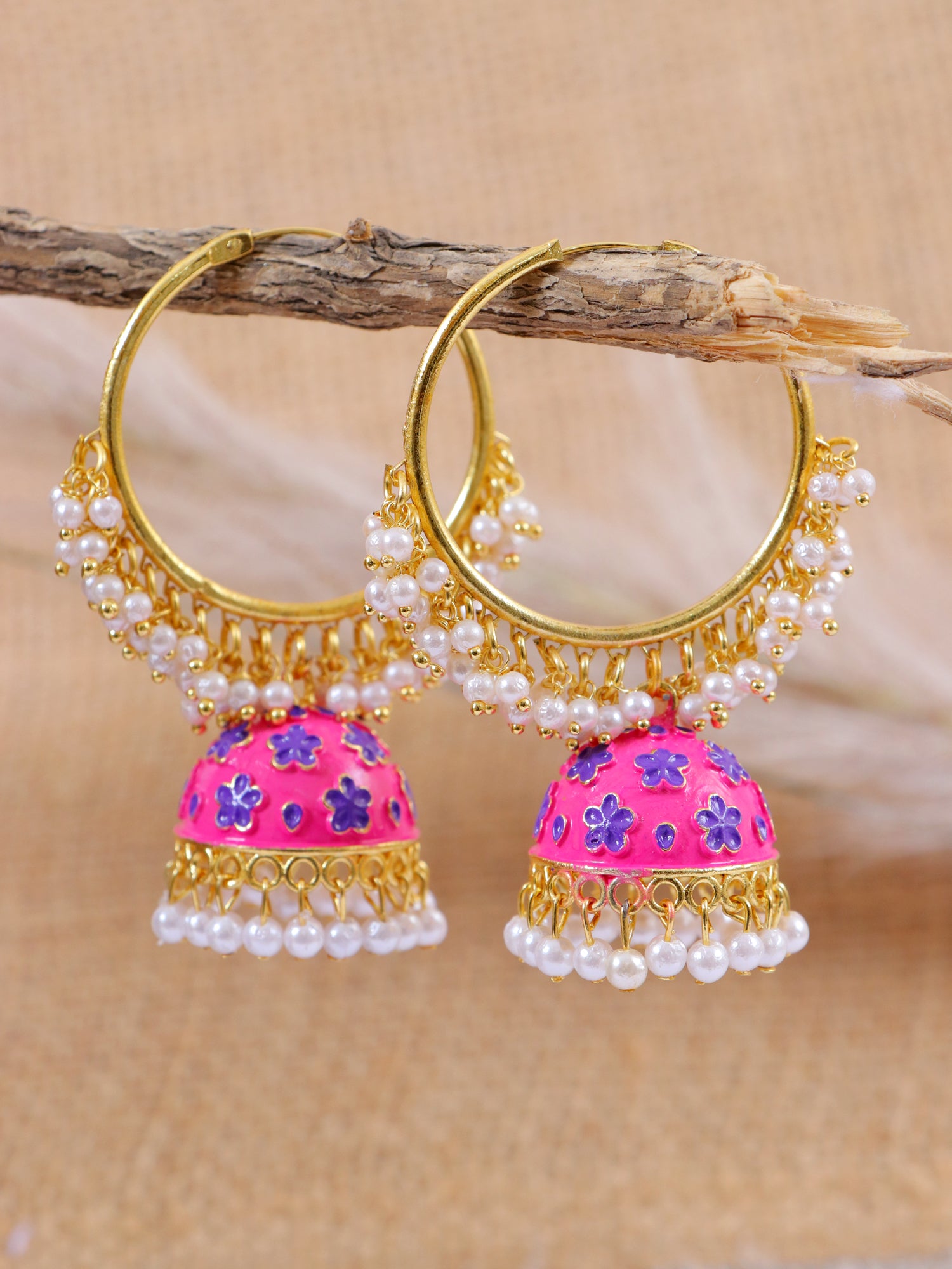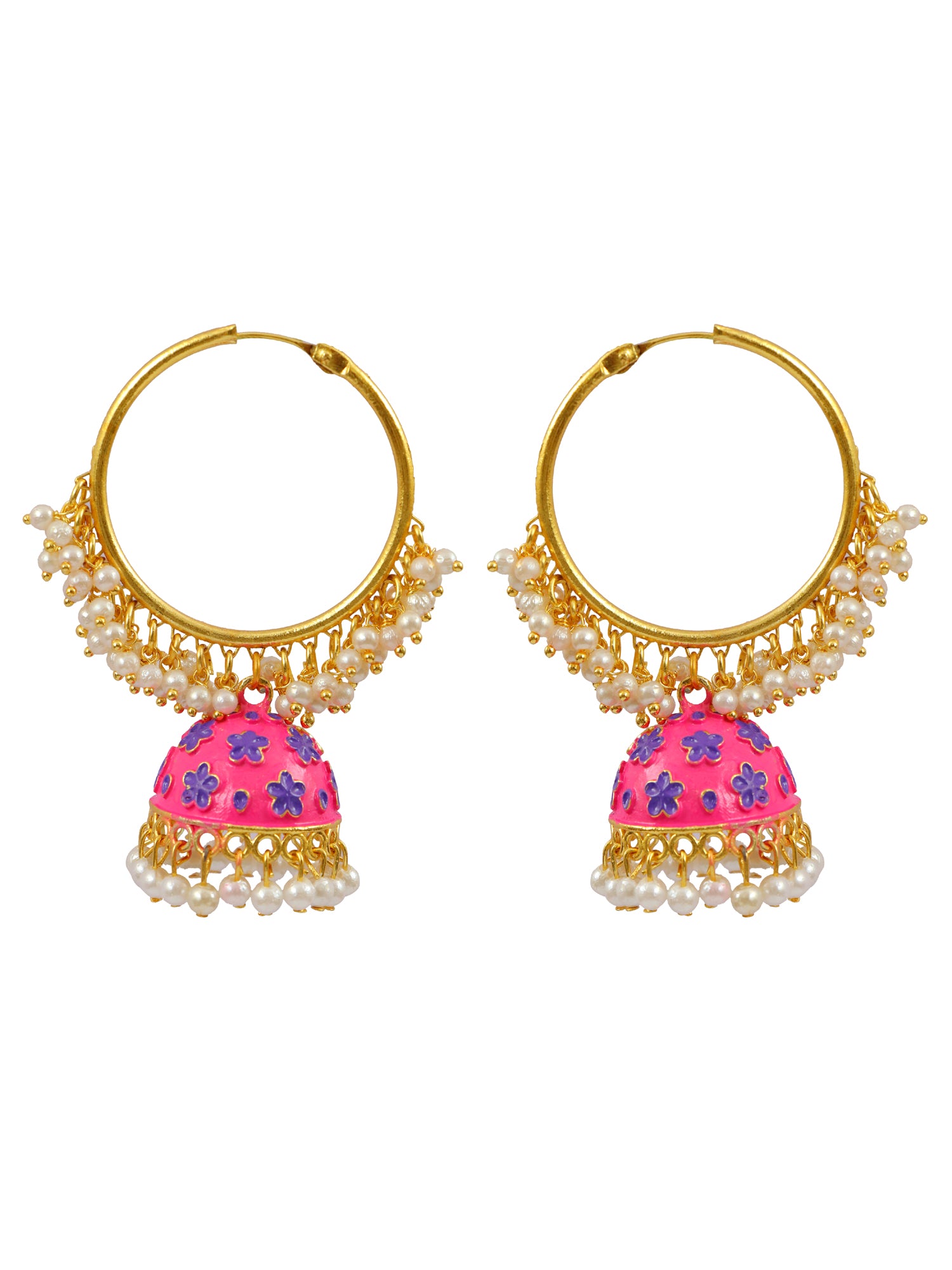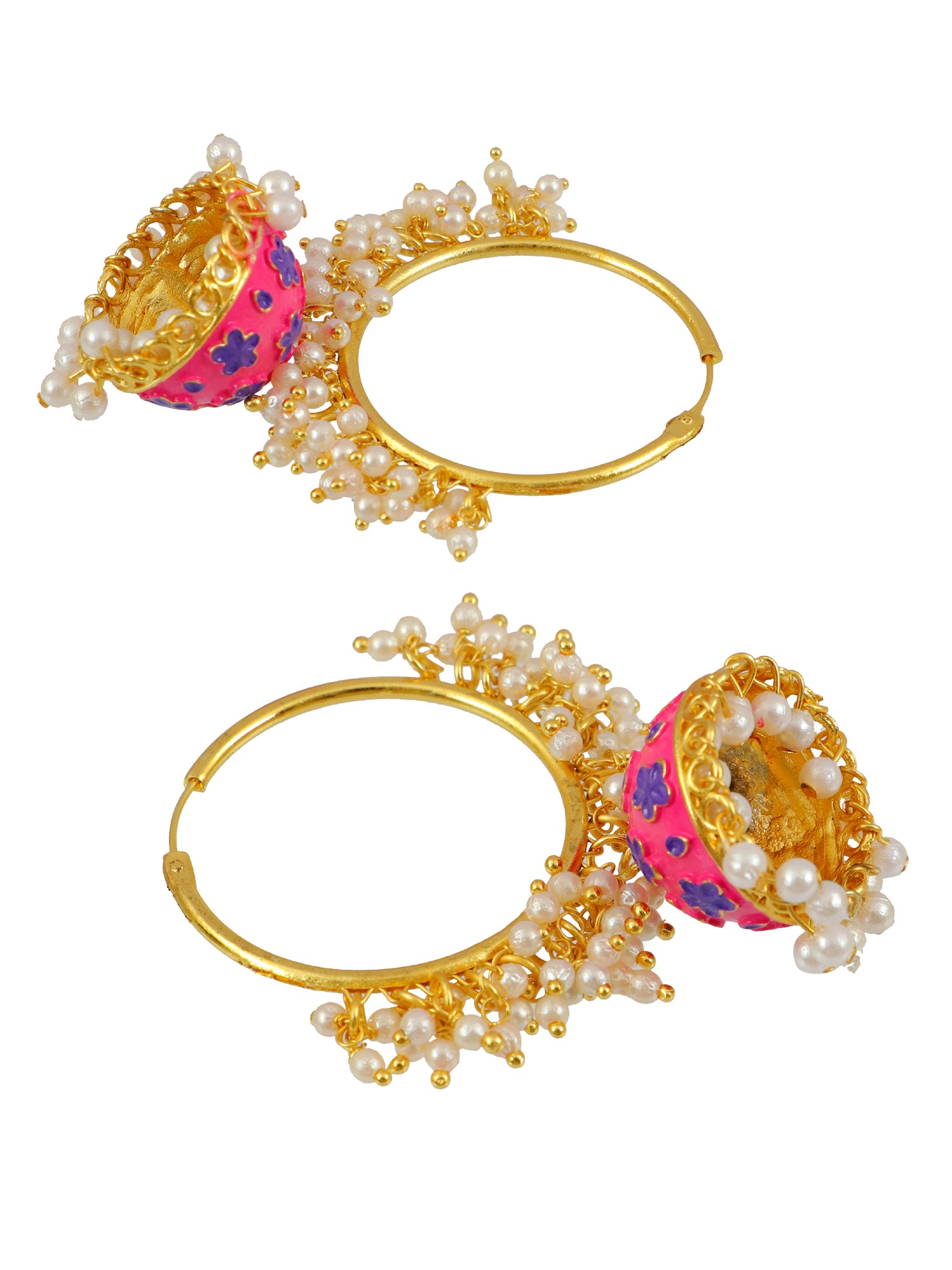 Stunning Gold Jhumka Earrings for Women with Traditional Pink Kundan Studding