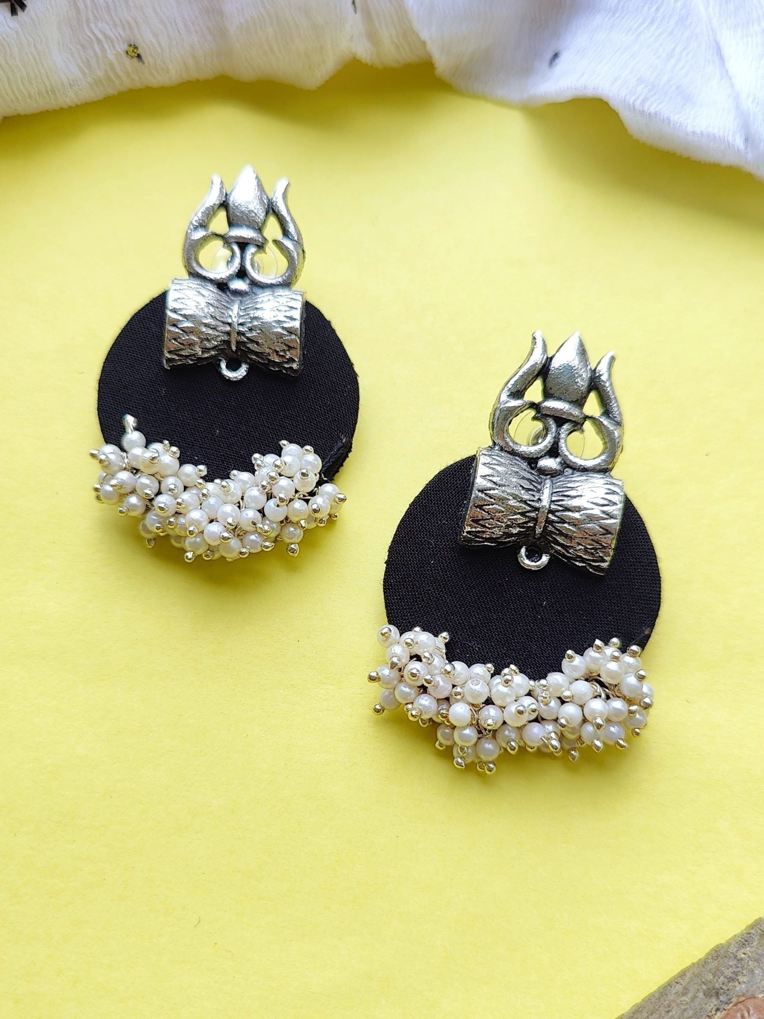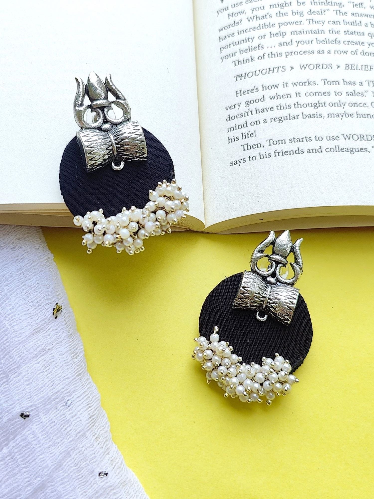 Oxidised Silver Shiva Trishul Design Black Fabric Stud Earring for Women