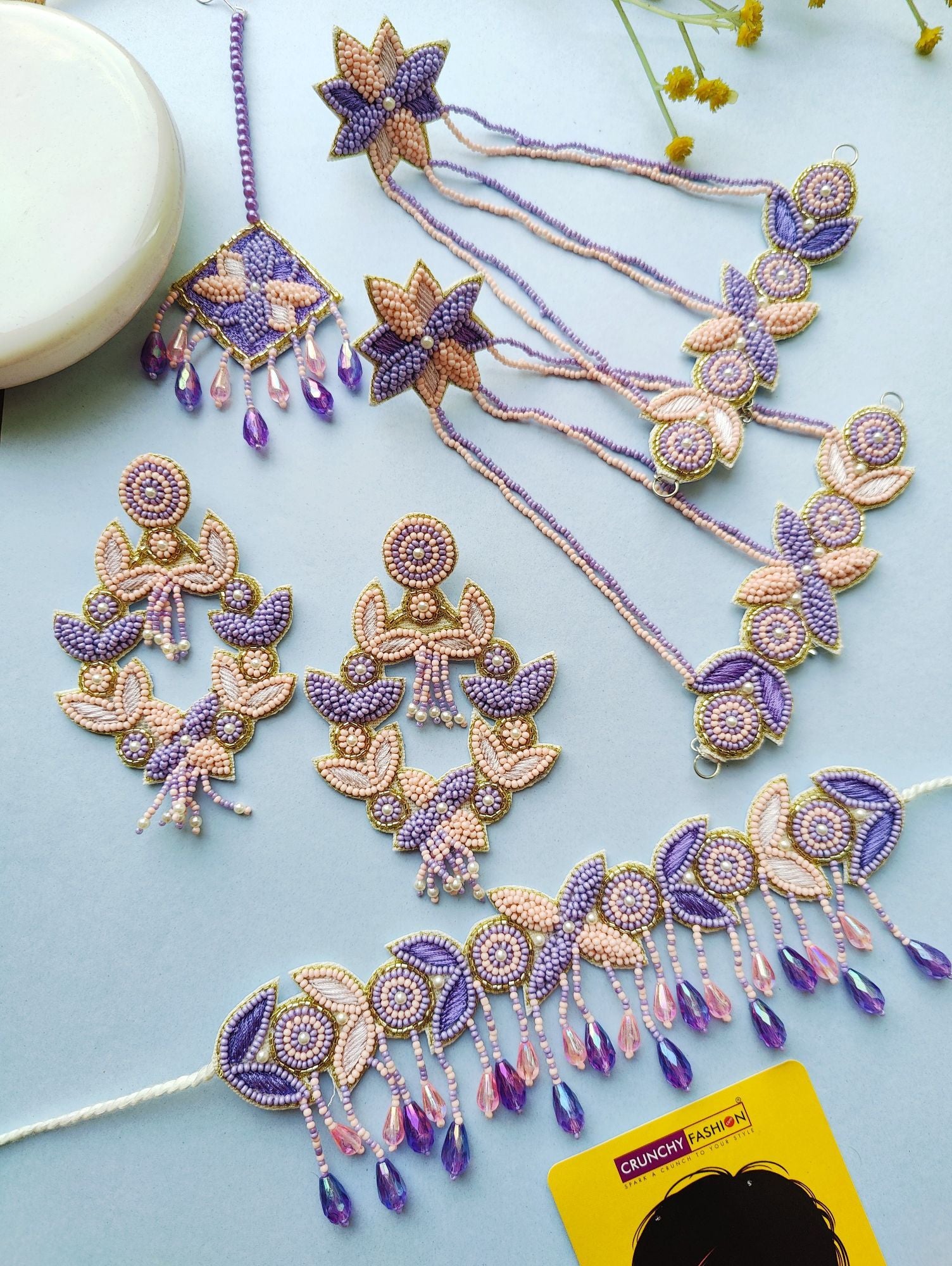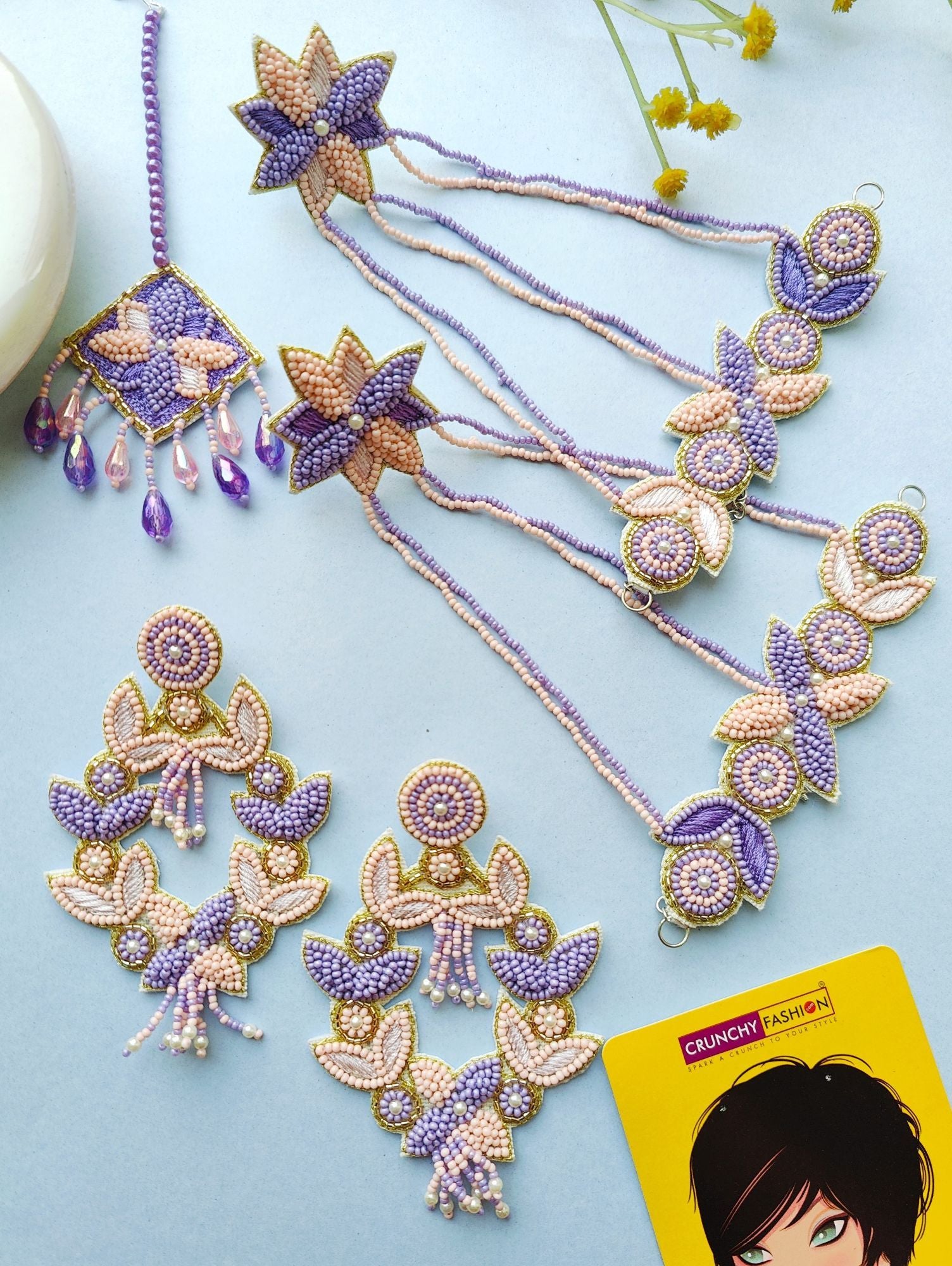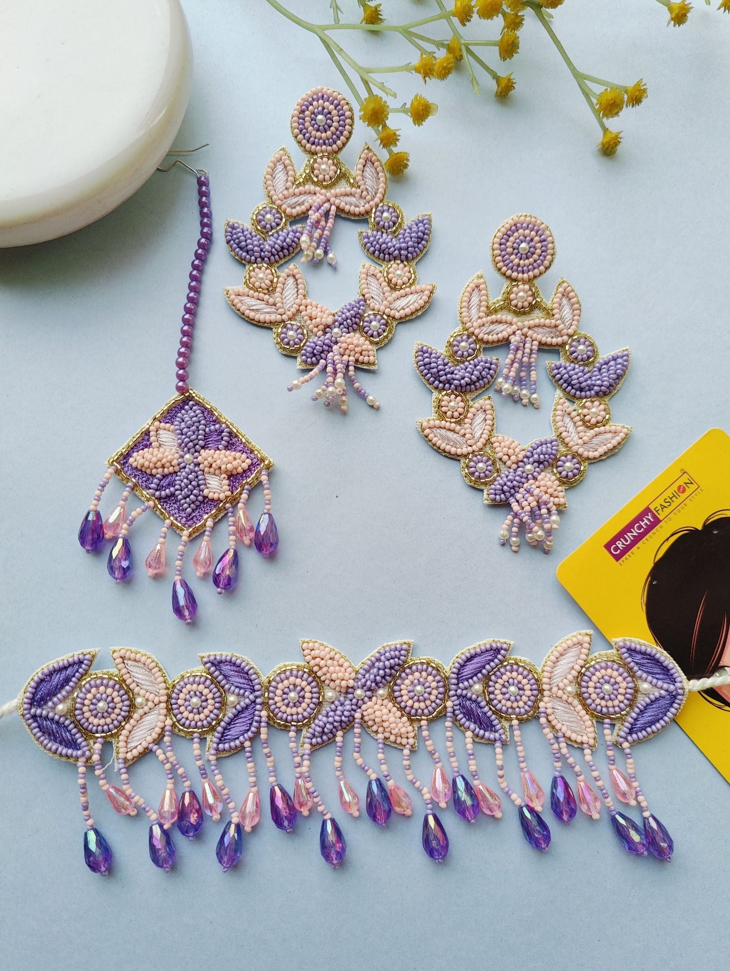 Lavender-Peach Beaded Jewellery Set for Haldi-Mehndi