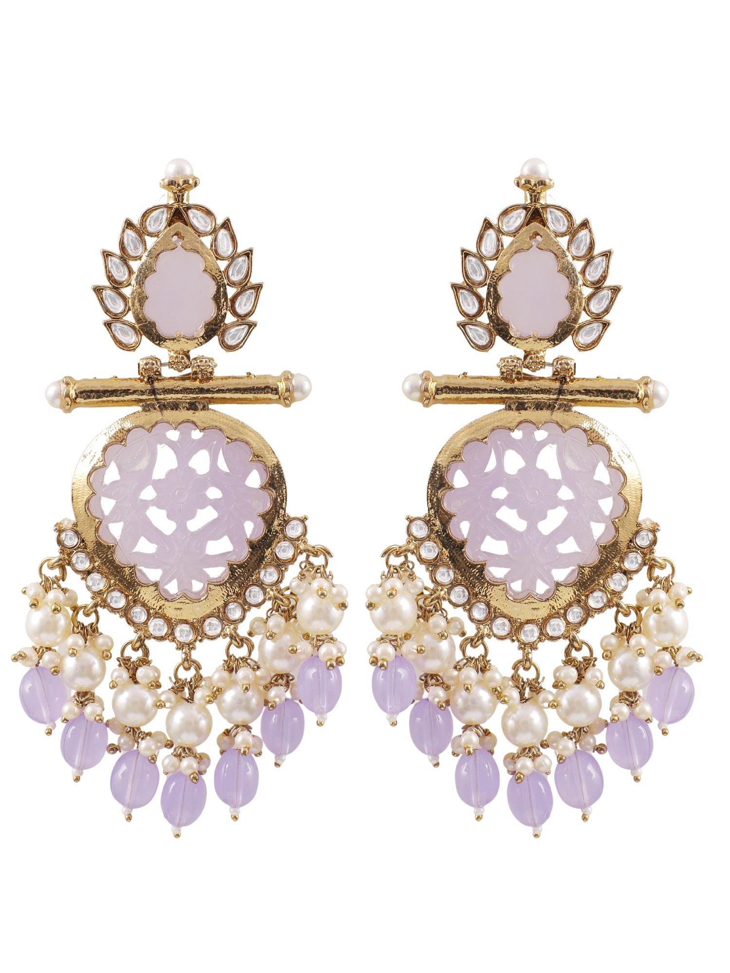 Lavish Lavender Pearl Chandbali: Kundan Earrings for Glam