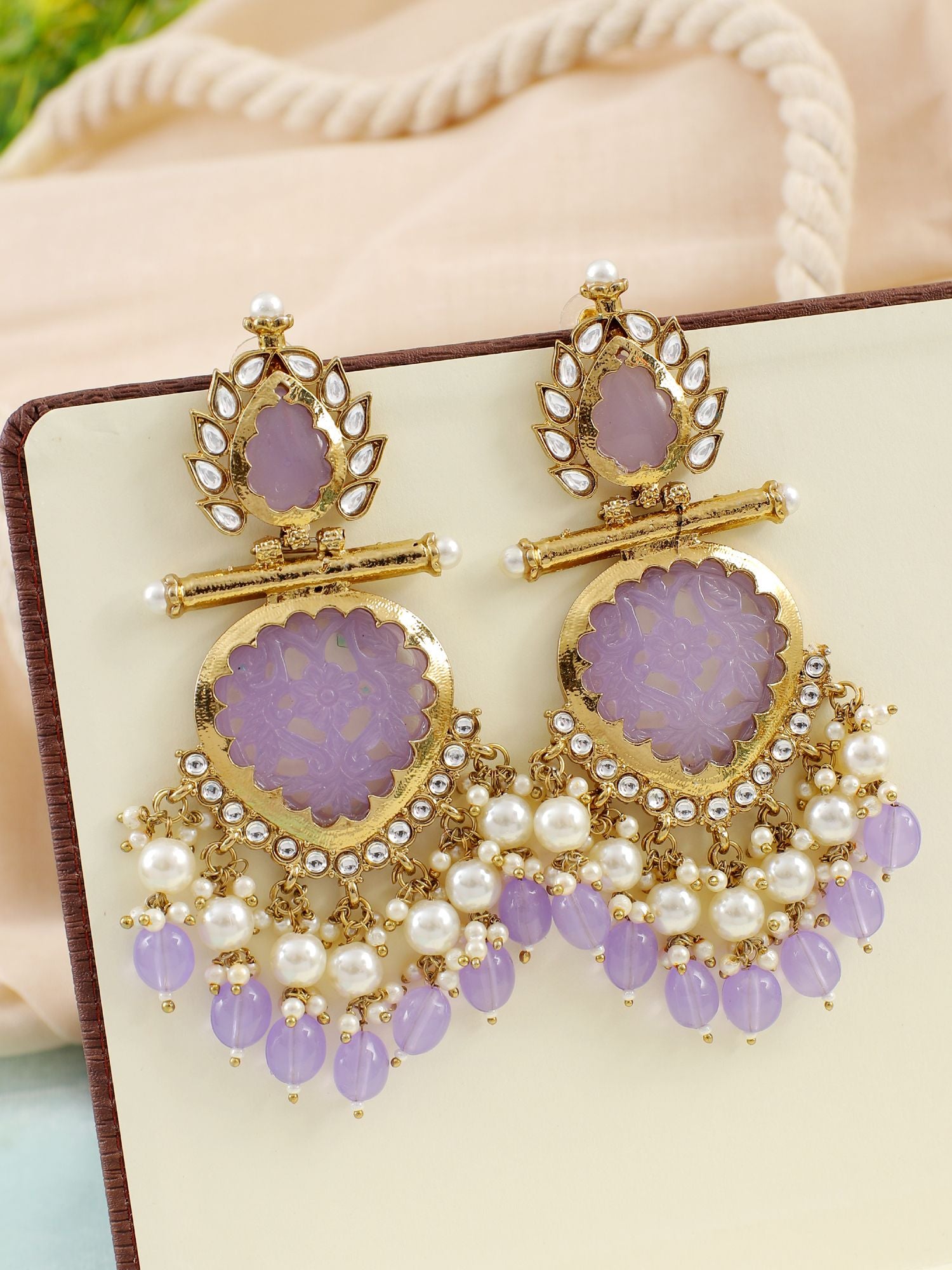 - Lavish Lavender Pearl Chandbali: Kundan Earrings for Glam